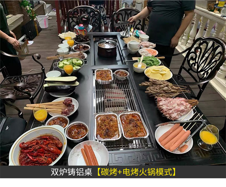 • 더블 그릴: 200*100CM 더블 그릴 테이블(차 트레이 포함) [전기 또는 숯불 전골 중 하나 선택]