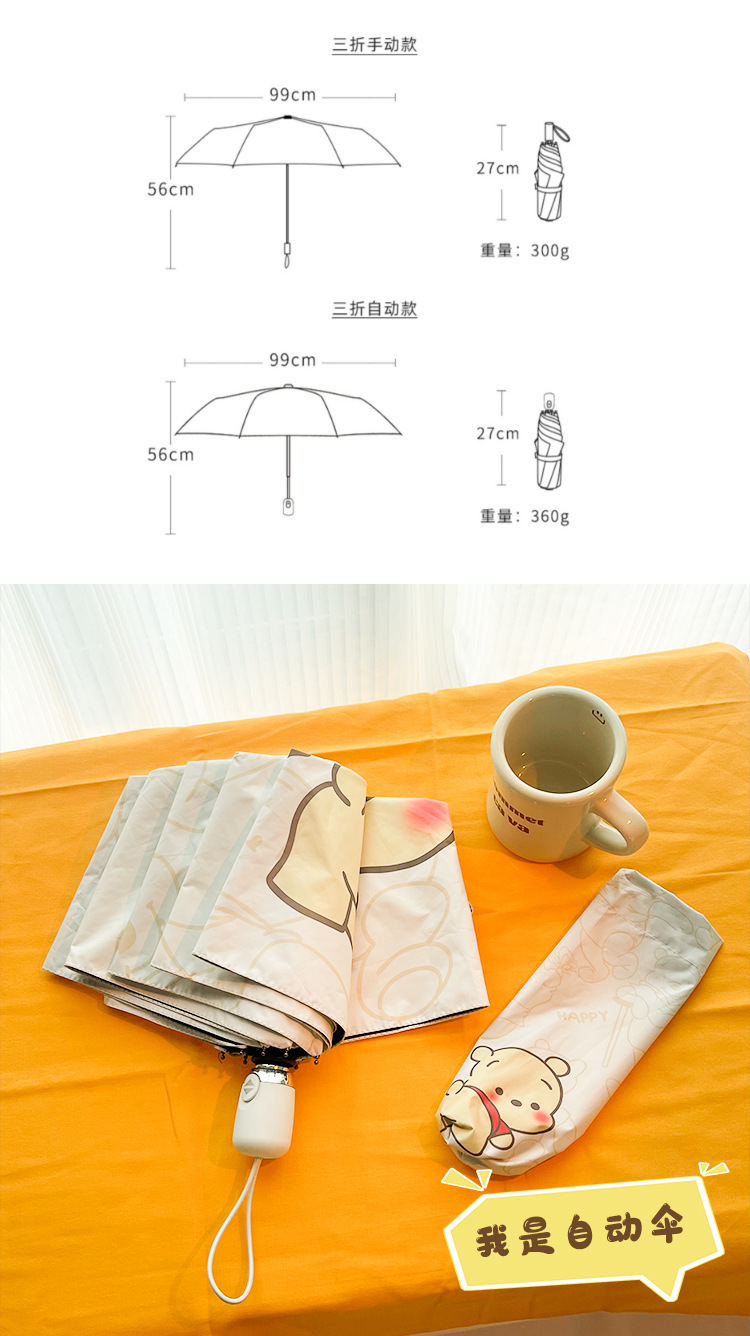 귀여운 만화 곰돌이 푸 맑은 우산 초등학교 어린이를위한 자외선 차단제 자외선 차단 성인용 태양 우산