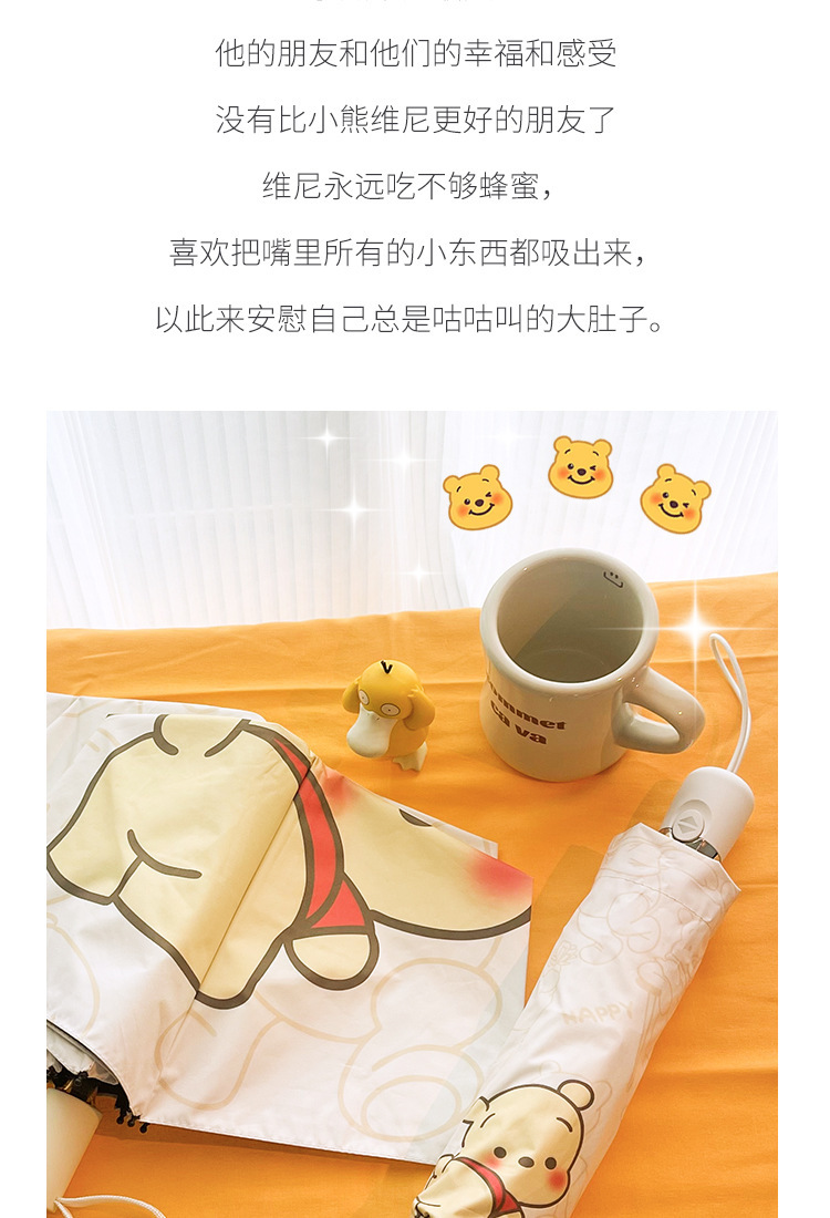 귀여운 만화 곰돌이 푸 맑은 우산 초등학교 어린이를위한 자외선 차단제 자외선 차단 성인용 태양 우산스토어 가기