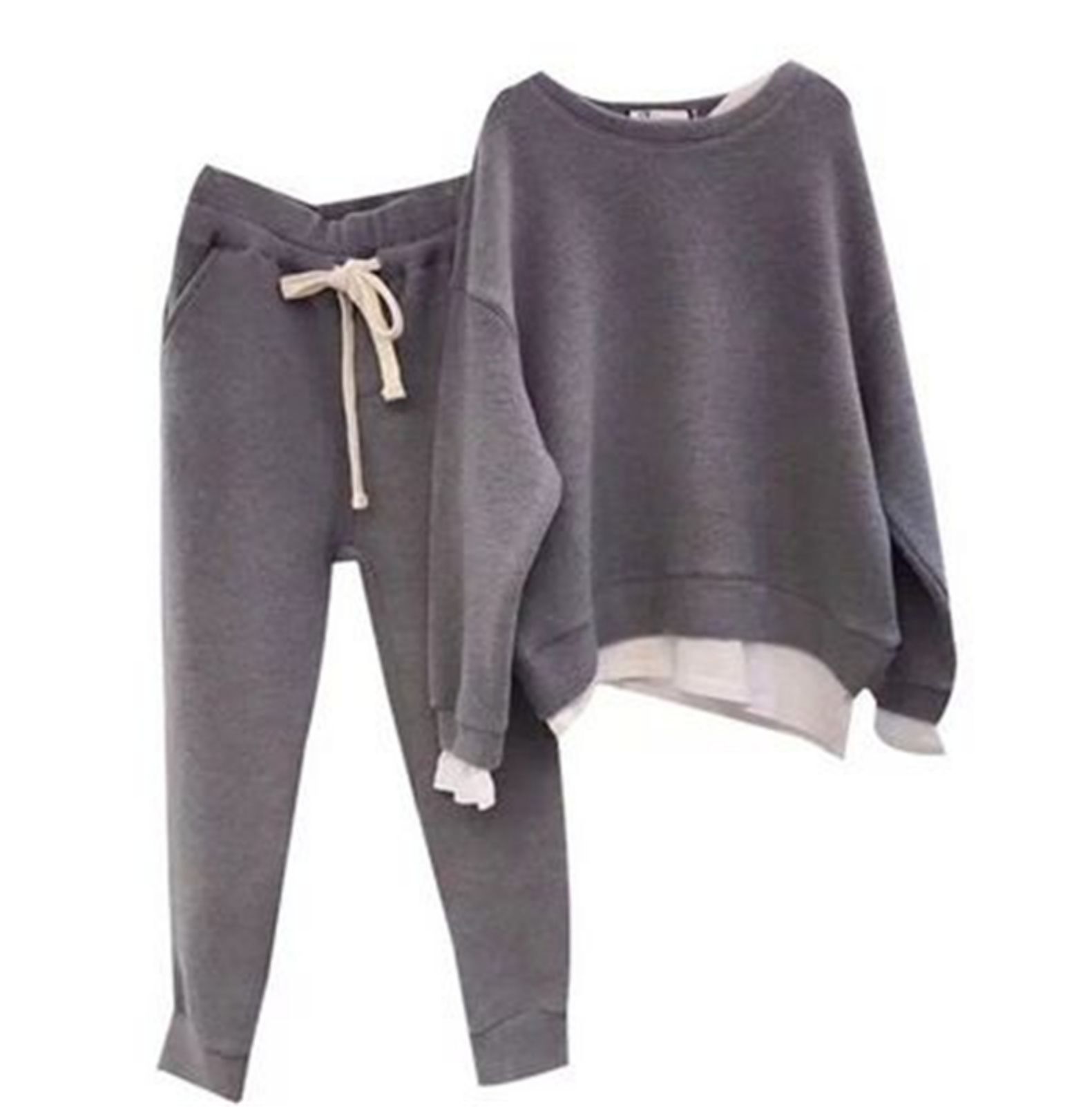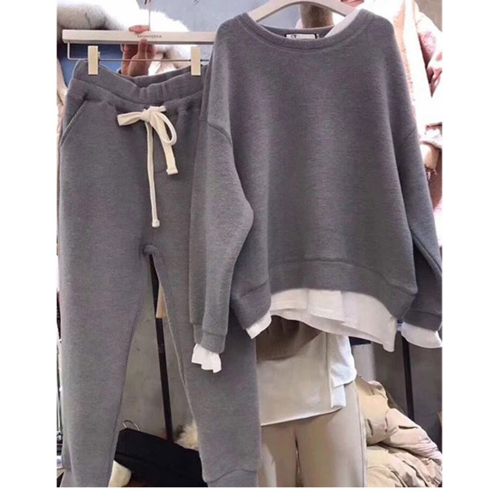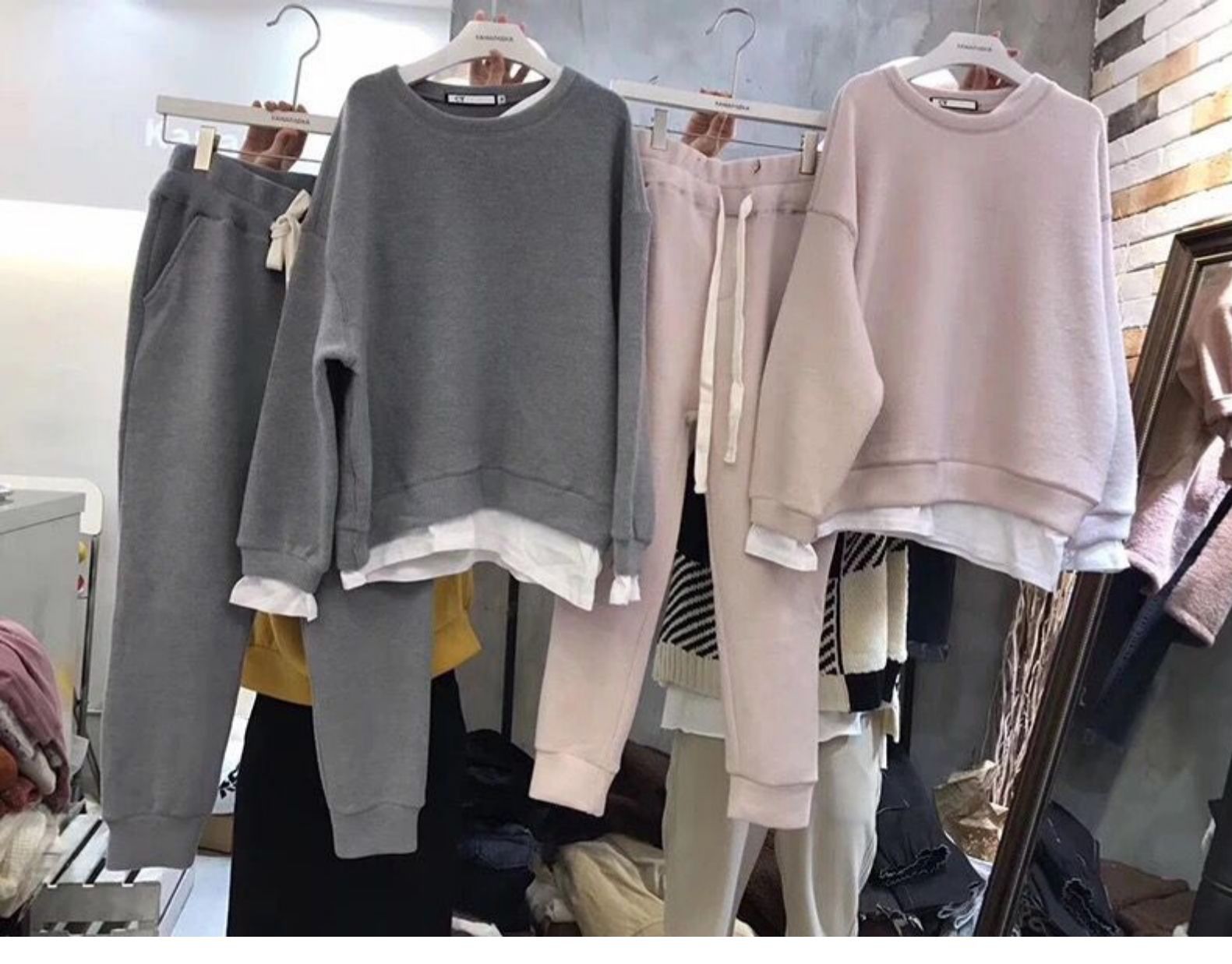 한국 동대문 2025 봄 가을 신상 얇은 투피스 스타일 루즈핏 스웨트셔츠 여성용 홍콩 스타일 투피스 세트 여성용스토어 가기
