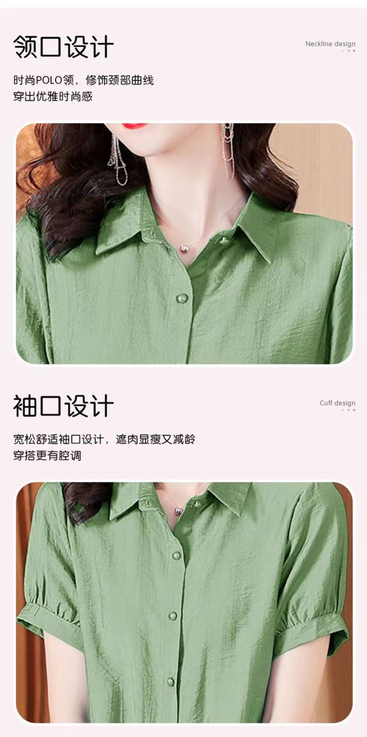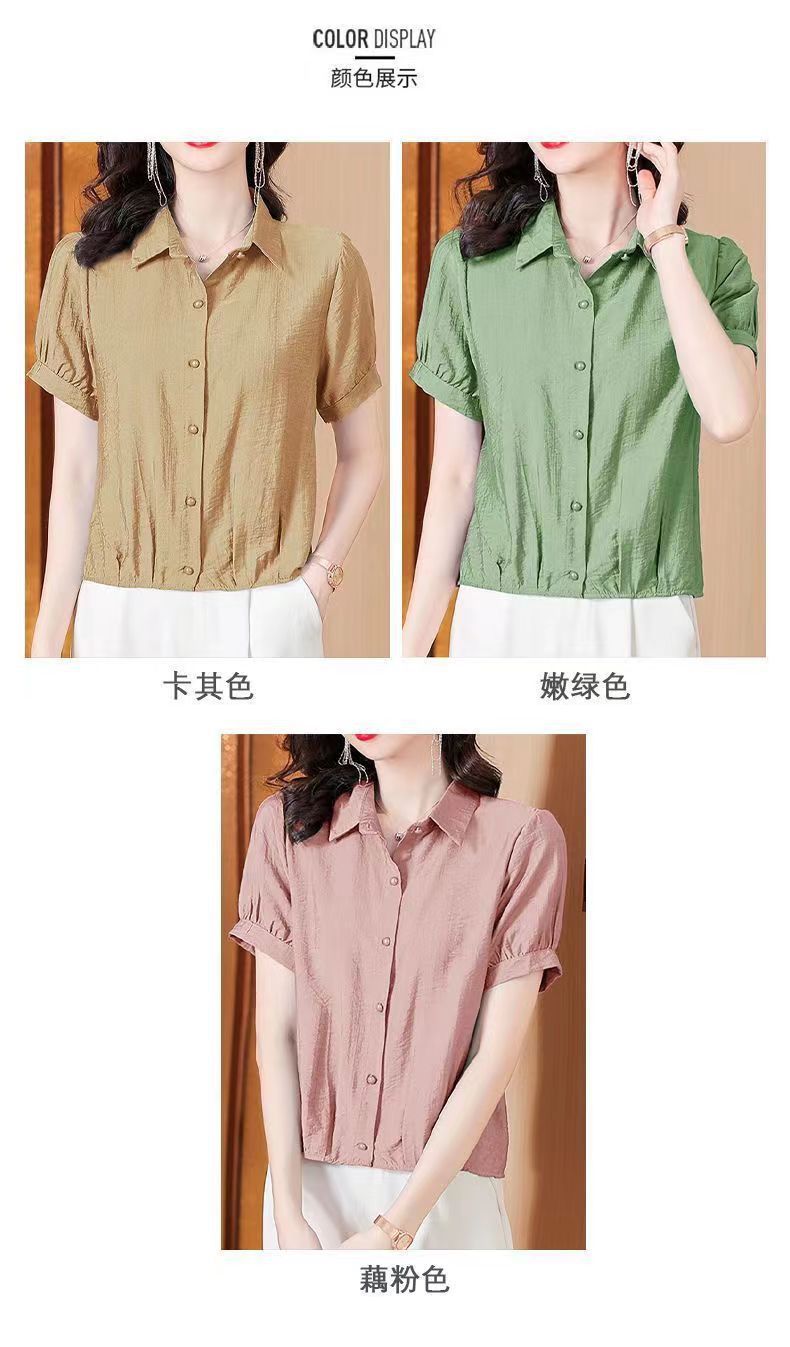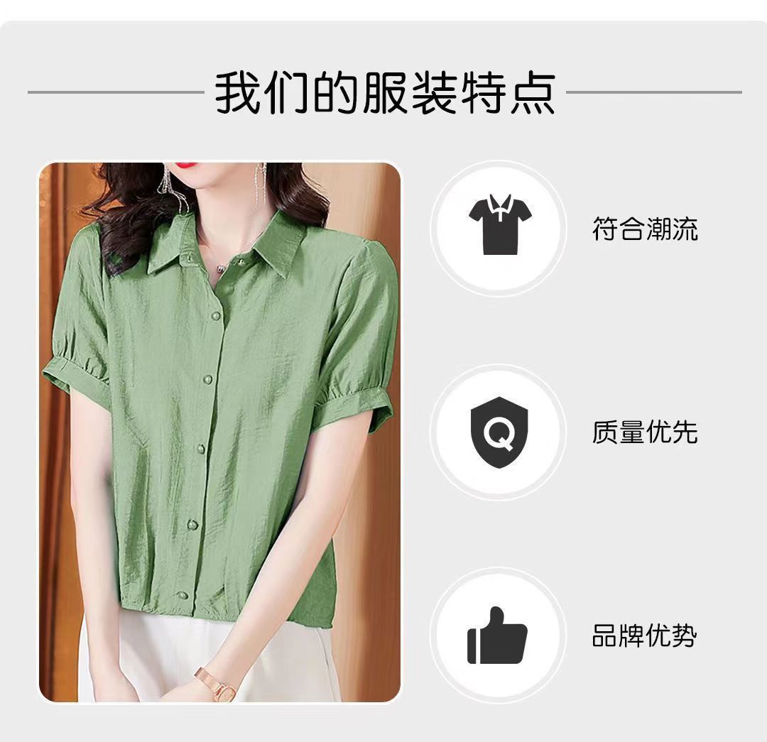 여름 여성용 단색 면마 셔츠 2025 신상 여성복 반팔 엄마 캐주얼 만능 빅사이즈 셔츠 트렌디스토어 가기
