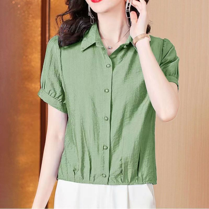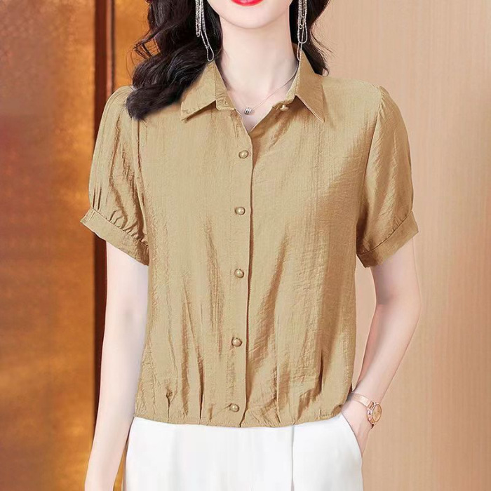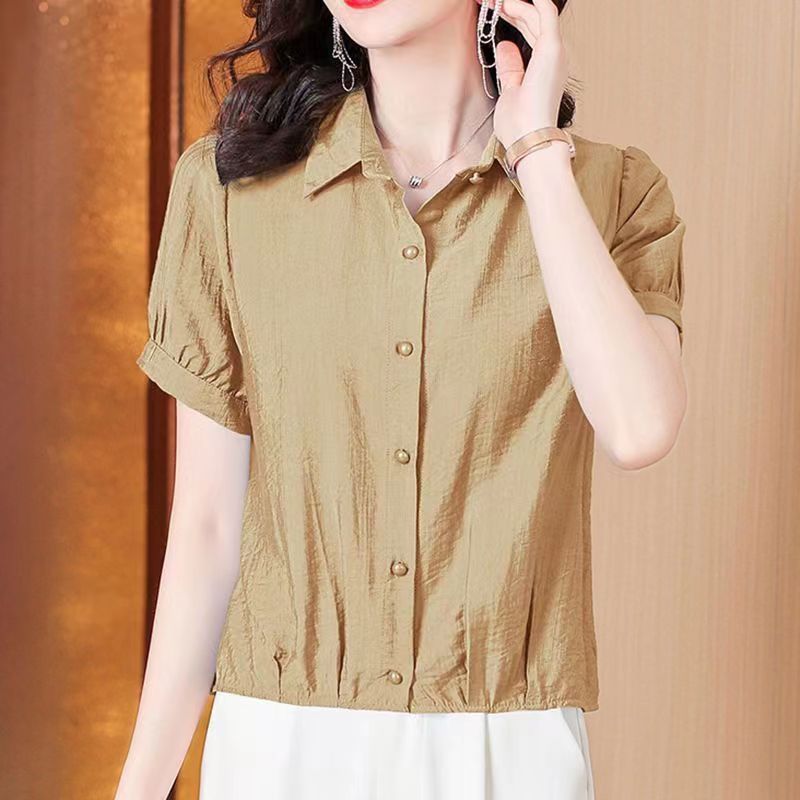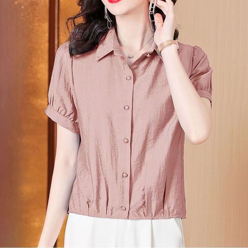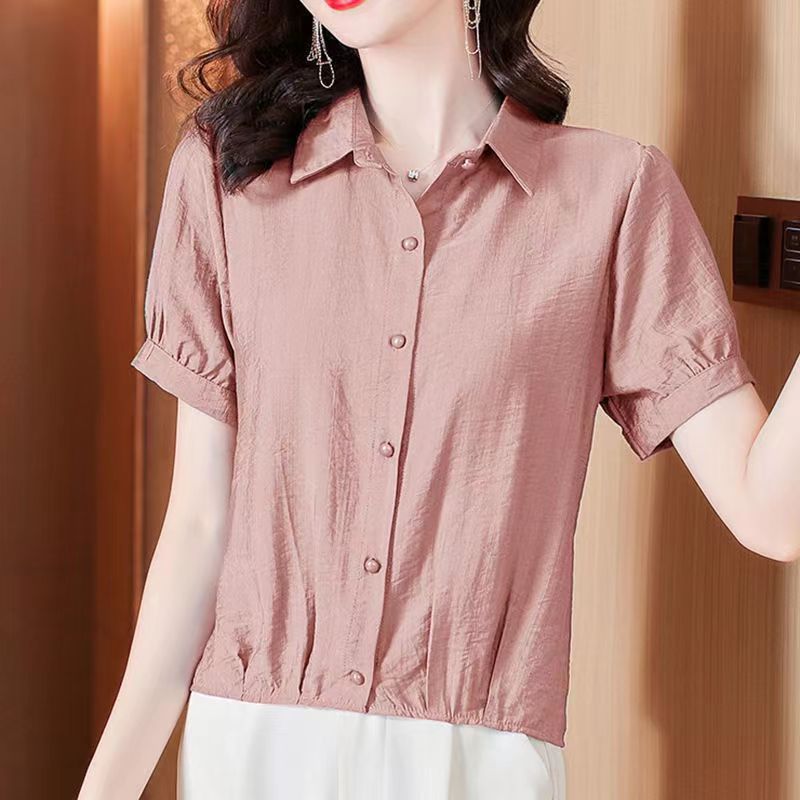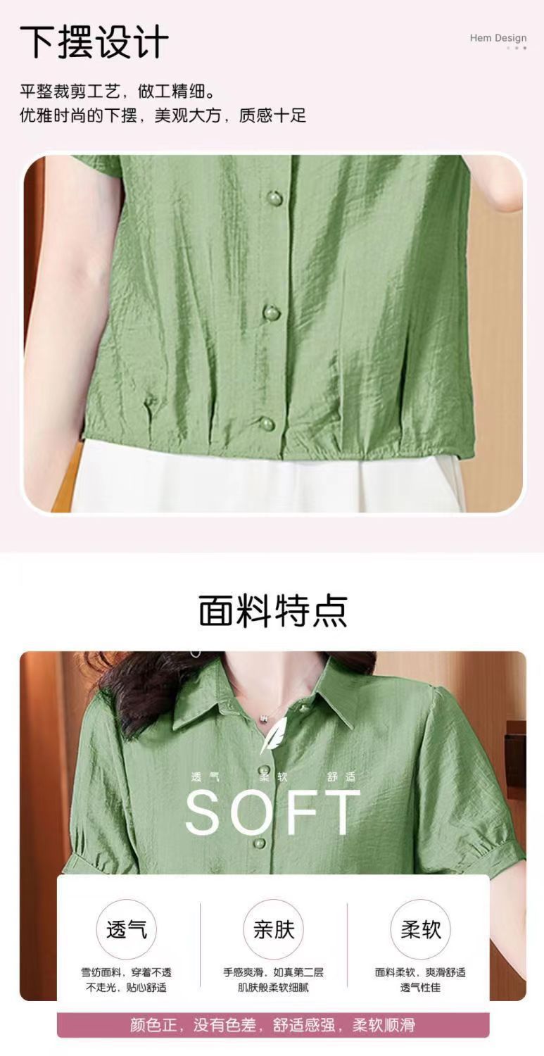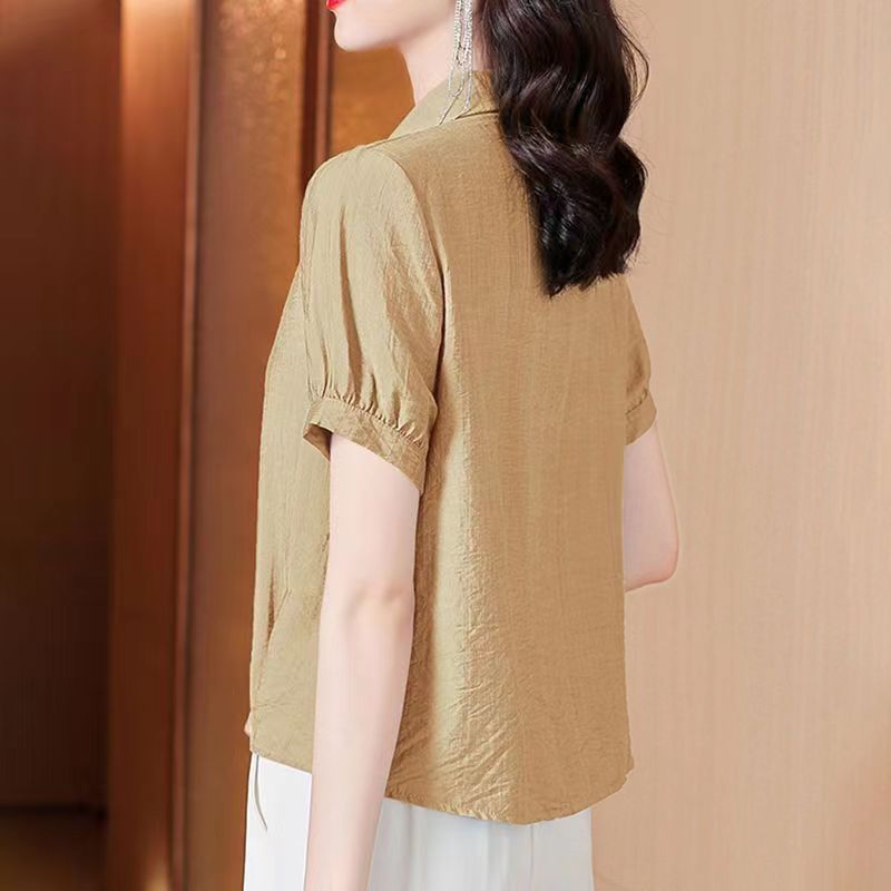 여름 여성용 단색 면마 셔츠 2025 신상 여성복 반팔 엄마 캐주얼 만능 빅사이즈 셔츠 트렌디