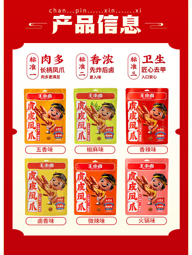 Wang Xiaolu 호피 닭발 210g 스낵 식품 닭발 조림 닭발 68g스토어 가기
