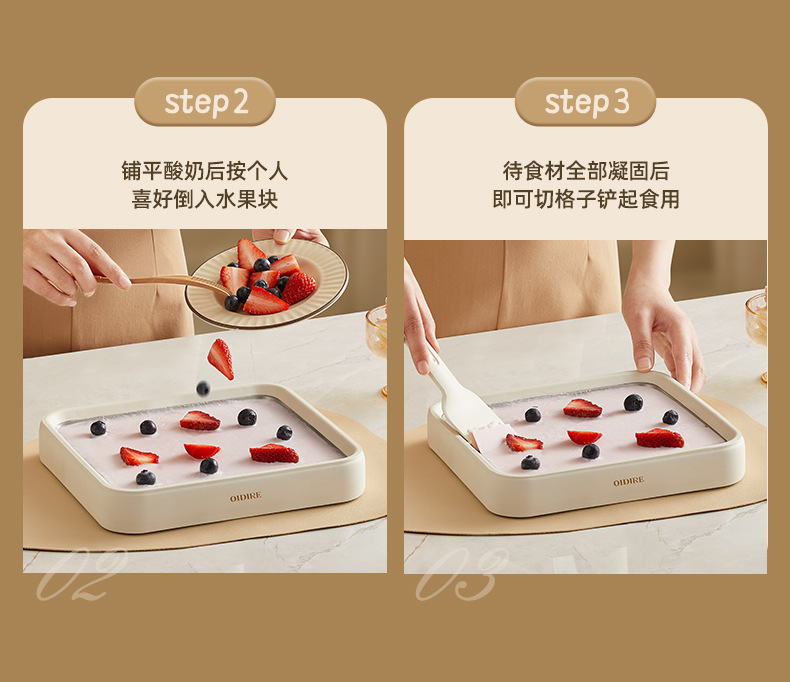 OIDIRE 얼음 튀김 기계 작은 아이스크림 기계 가정용 스테인레스 스틸 미니 플러그가없는 어린이 요구르트 기계스토어 가기