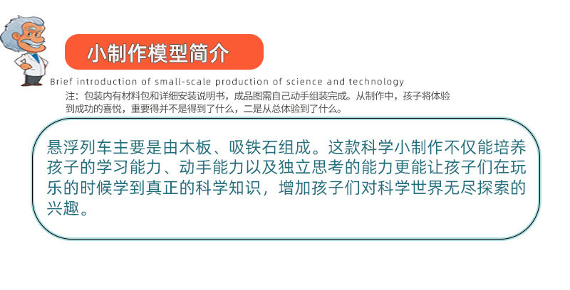 과학 기술 소규모 생산 자기 부상 기차 증기 어린이 과학 실험 장비 세트 DIY 수제 재료 도매스토어 가기