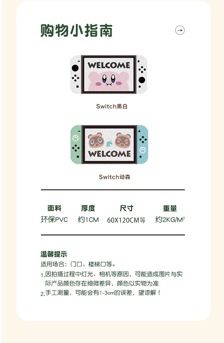 만화 스위치 동센 가정용 귀여운 입구 바닥 매트 입구 문 카펫 입구 문 매트 미끄럼 방지 실크 링스토어 가기