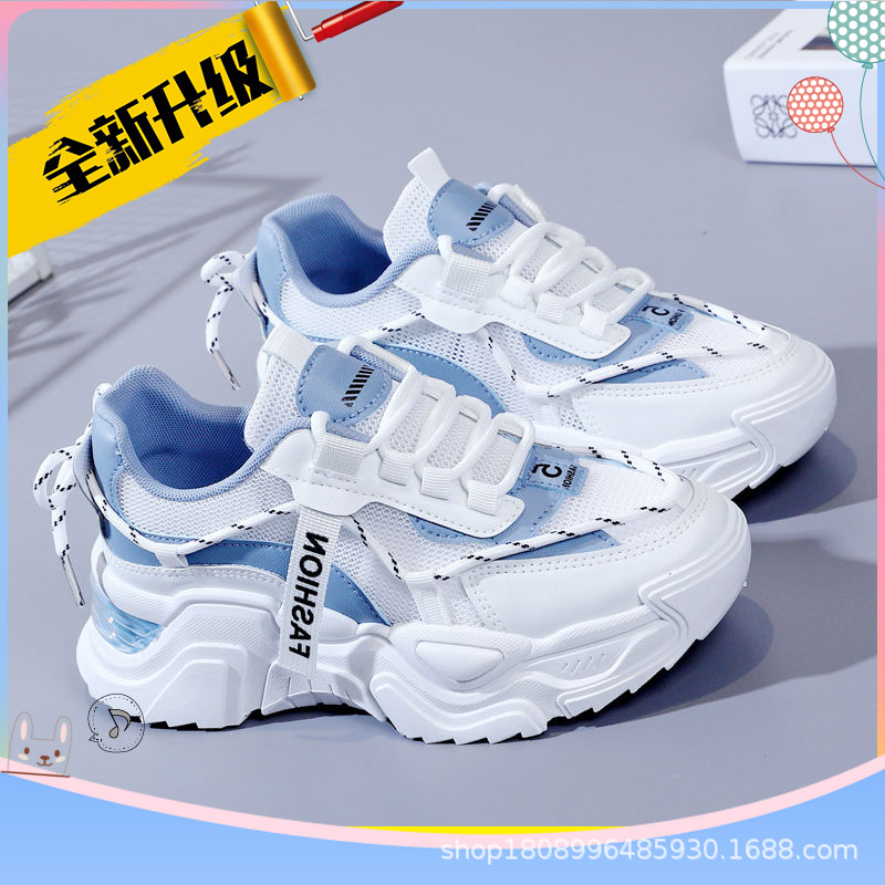 여성 신발 봄과 여름 통기성 스포츠 캐주얼 신발 트렌디 한 두꺼운 밑창 증가 메쉬 2023 New