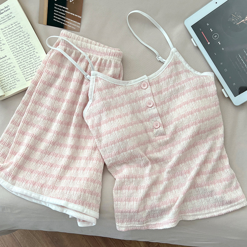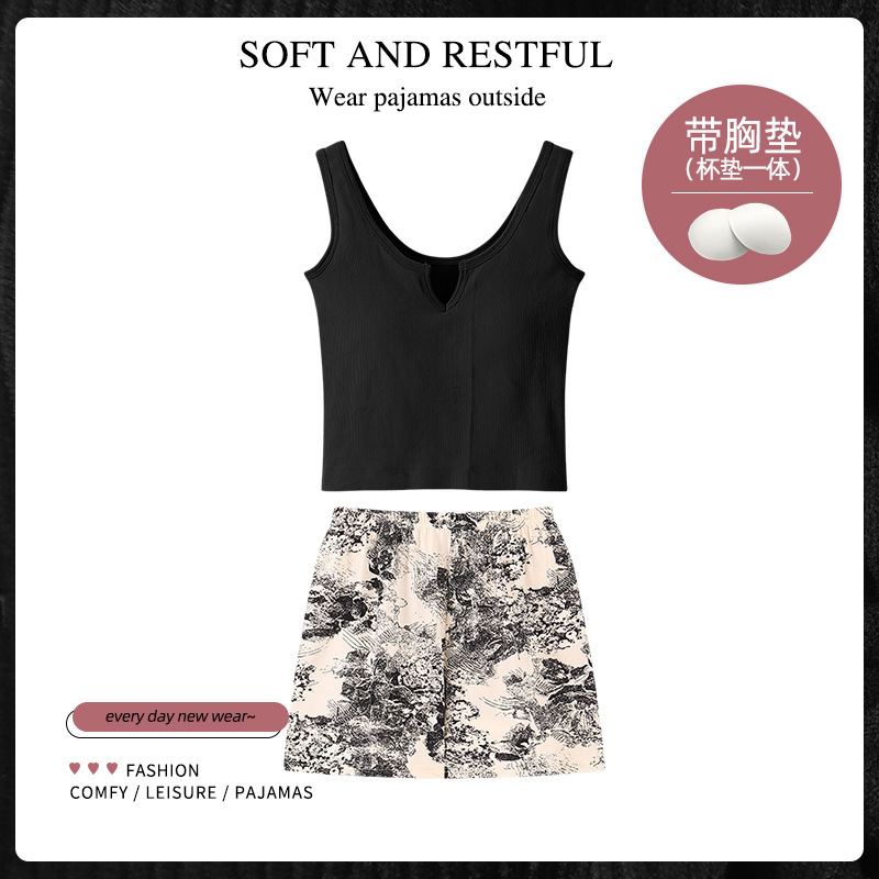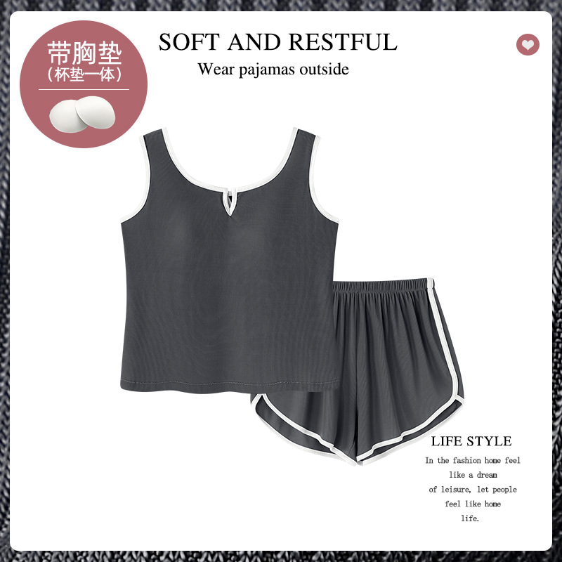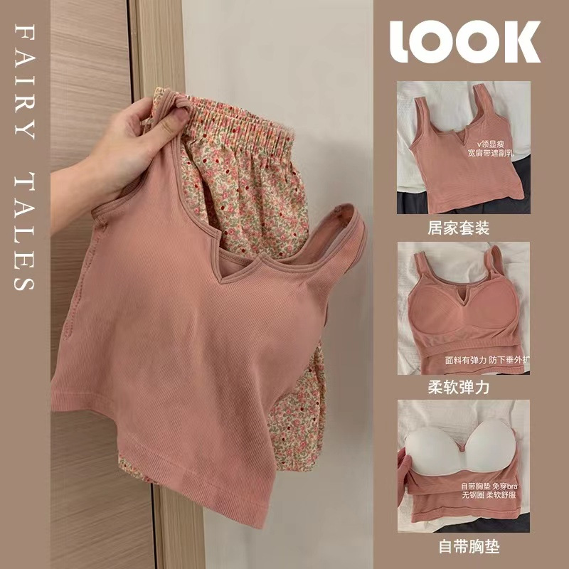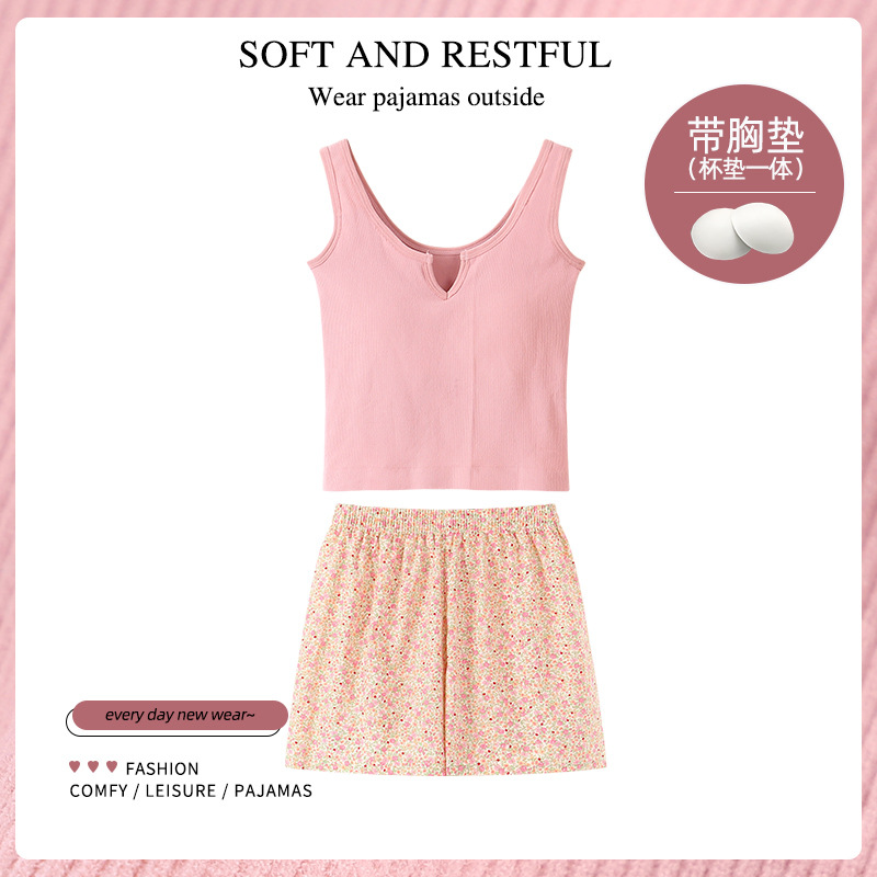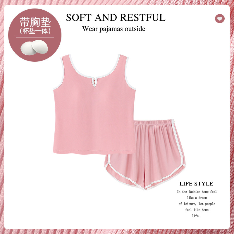 순수한 뜨거운 소녀 캐미솔 파자마 여성 가슴 패드 여름 온라인 레드 스타일 뜨거운 야외 가정복 세트스토어 가기