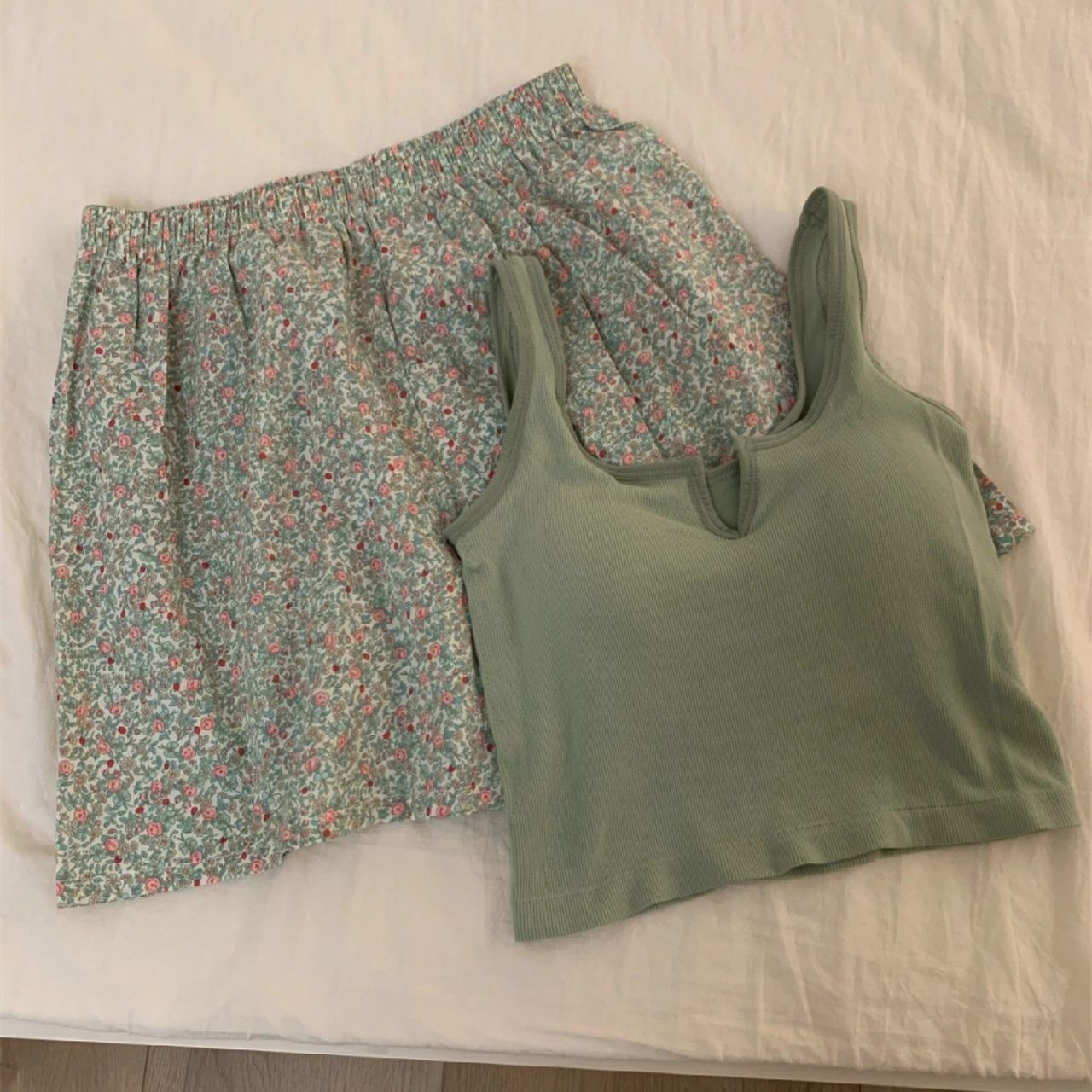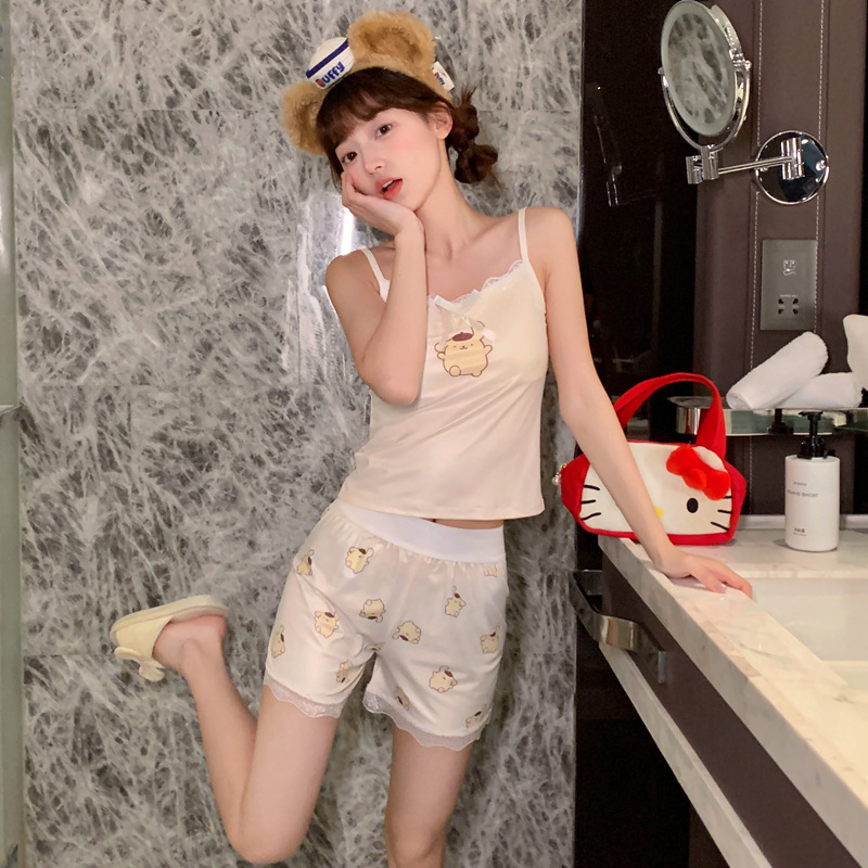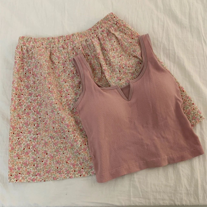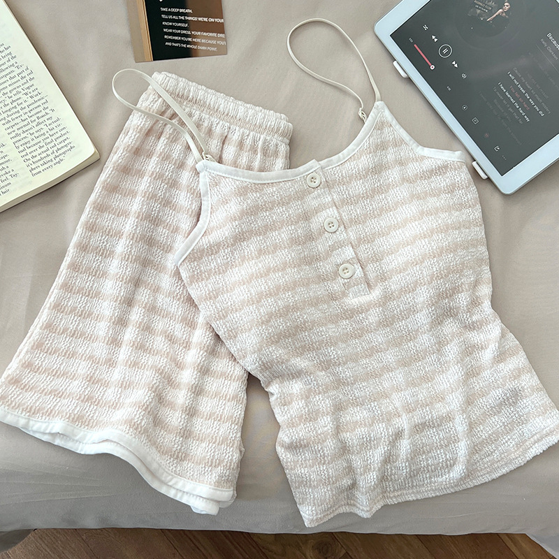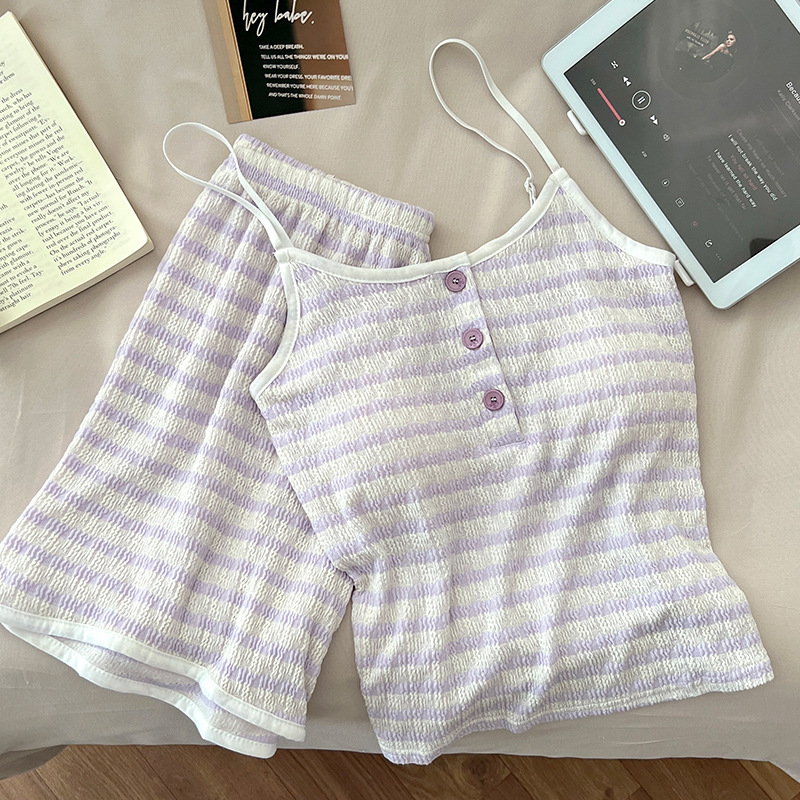 순수한 뜨거운 소녀 캐미솔 파자마 여성 가슴 패드 여름 온라인 레드 스타일 뜨거운 야외 가정복 세트스토어 가기