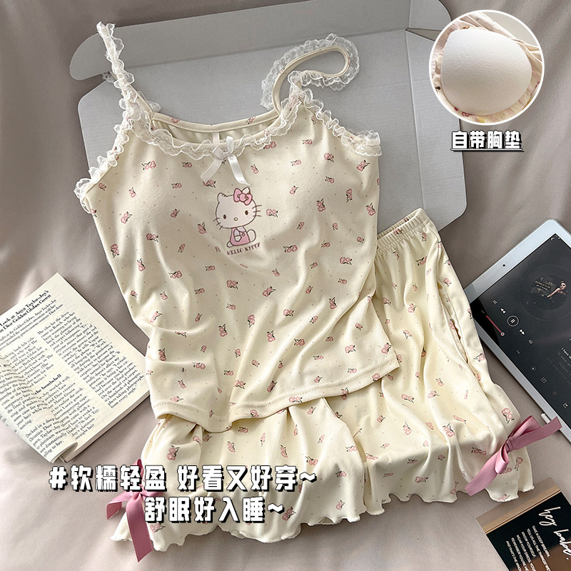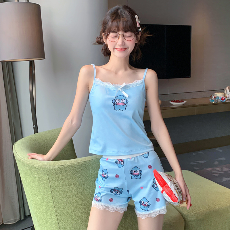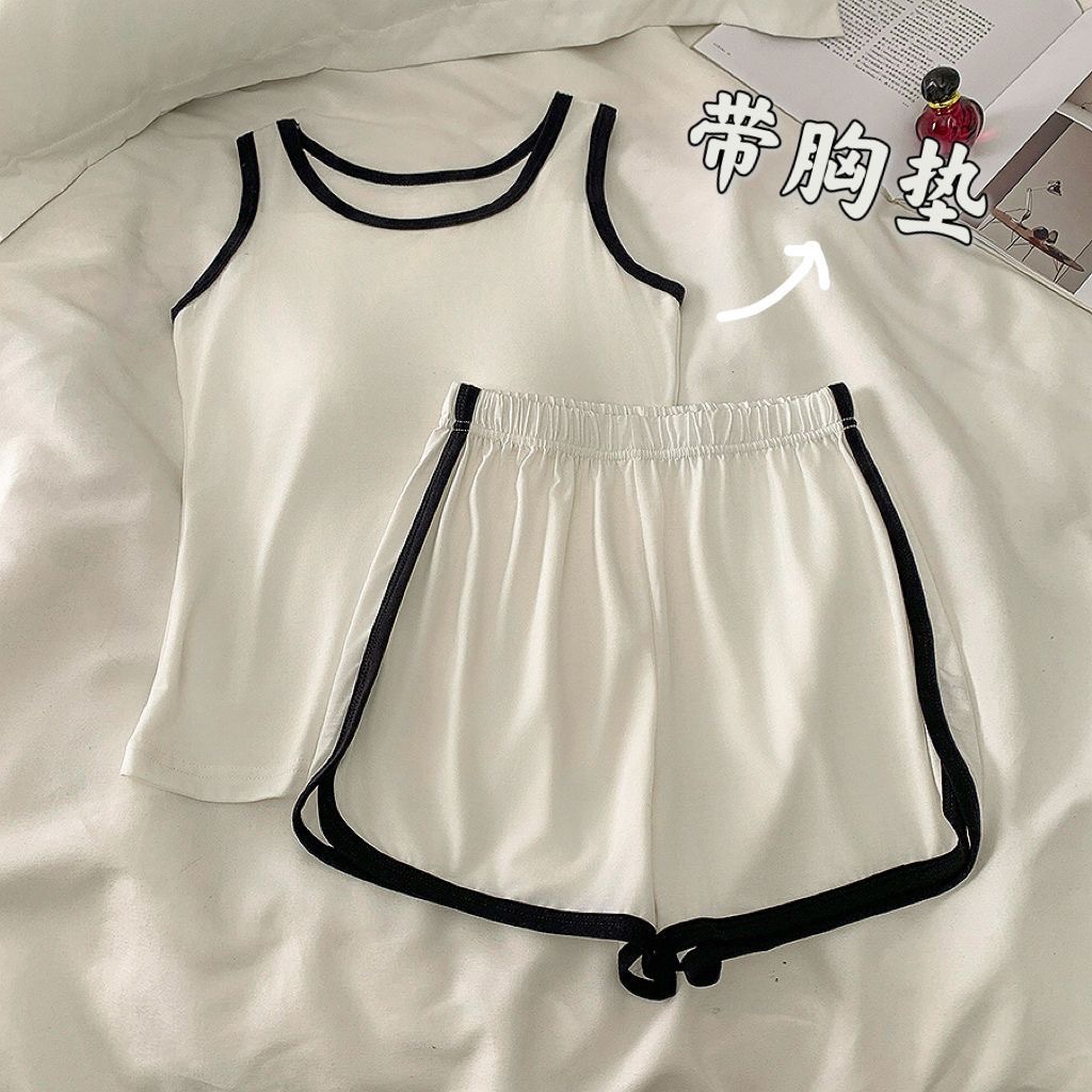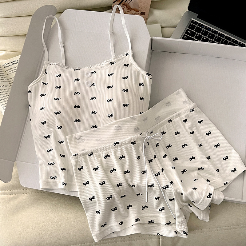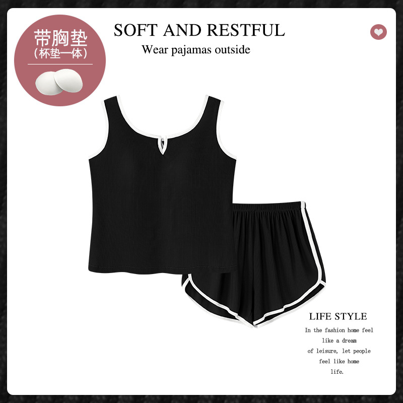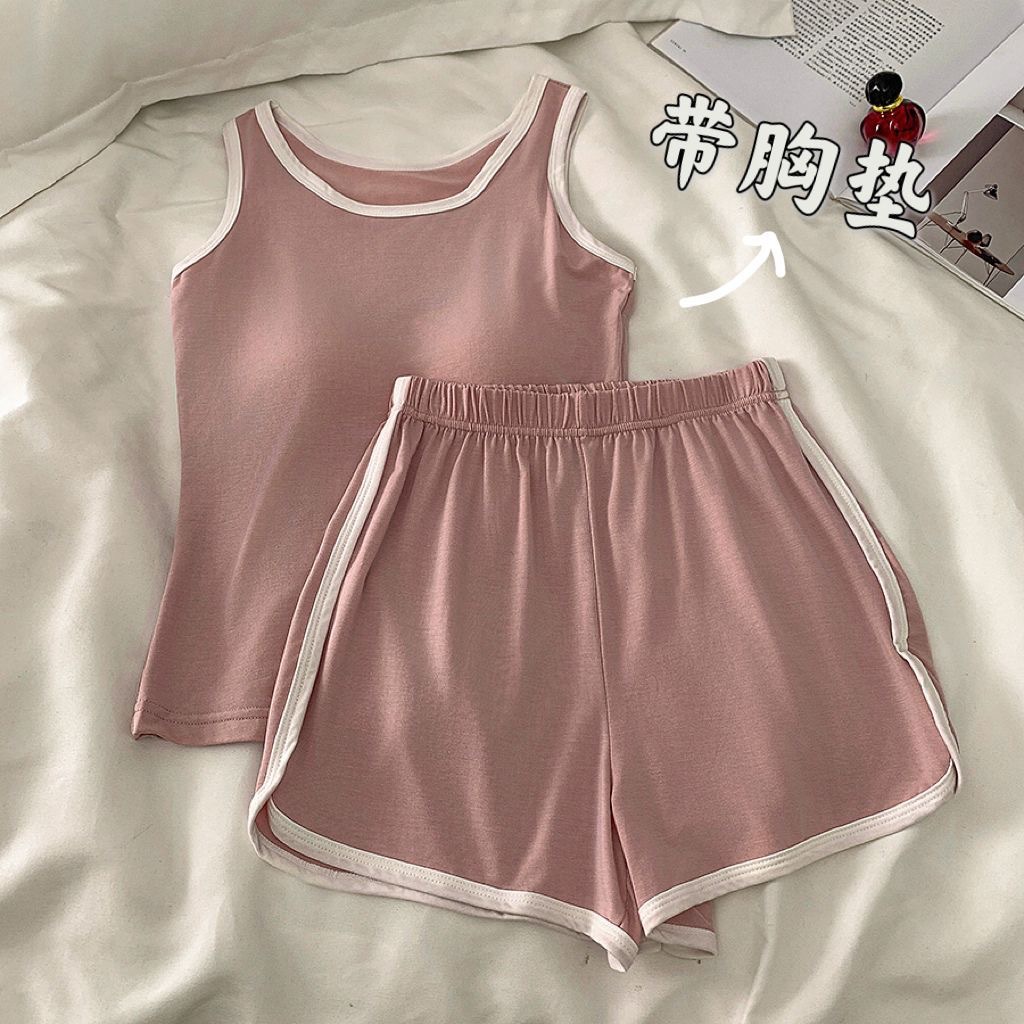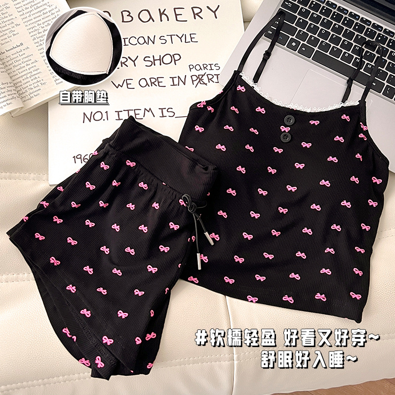 순수한 뜨거운 소녀 캐미솔 파자마 여성 가슴 패드 여름 온라인 레드 스타일 뜨거운 야외 가정복 세트
