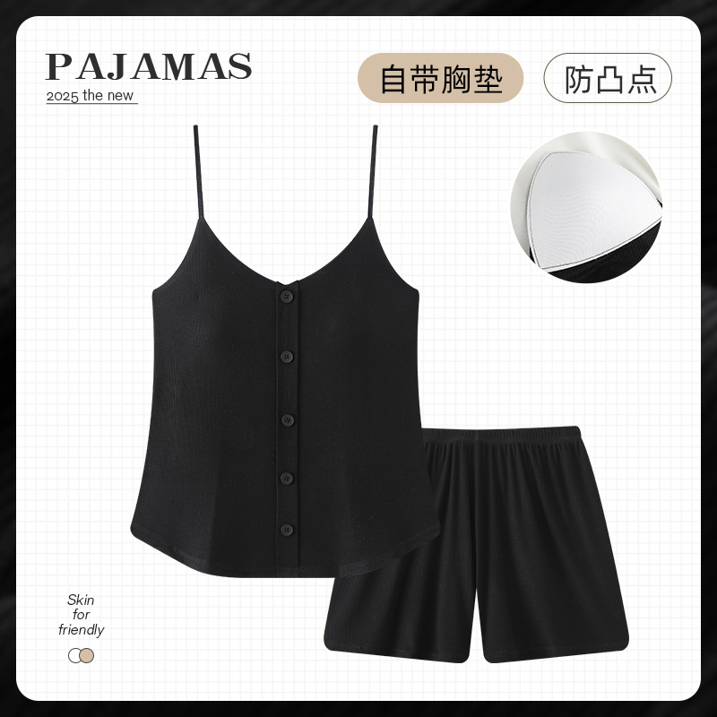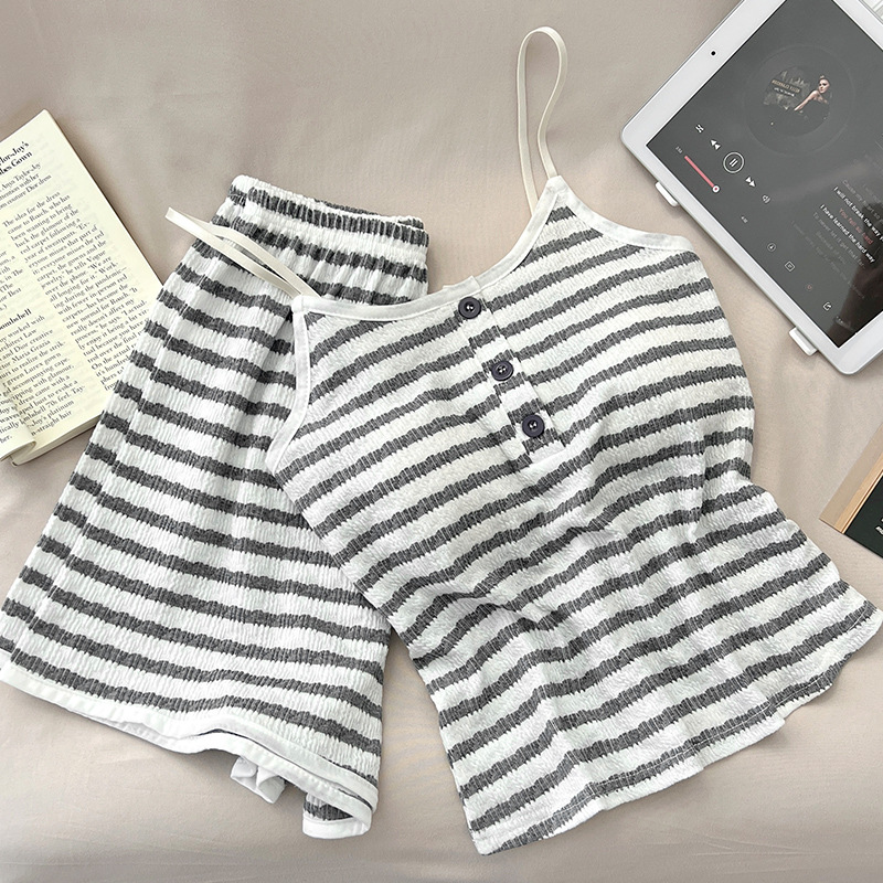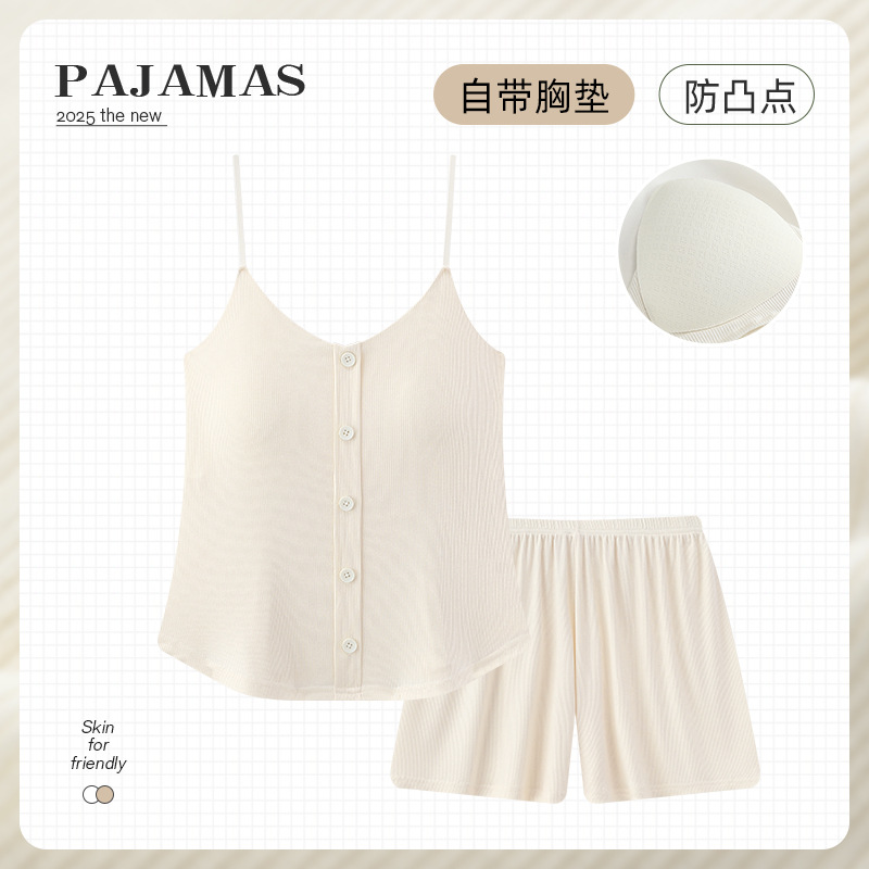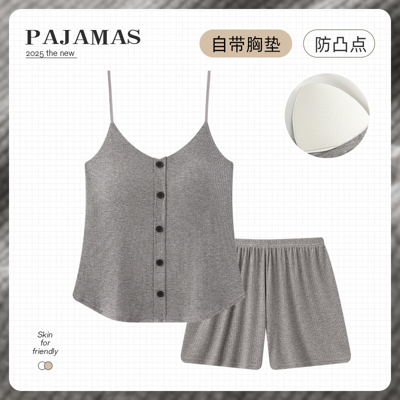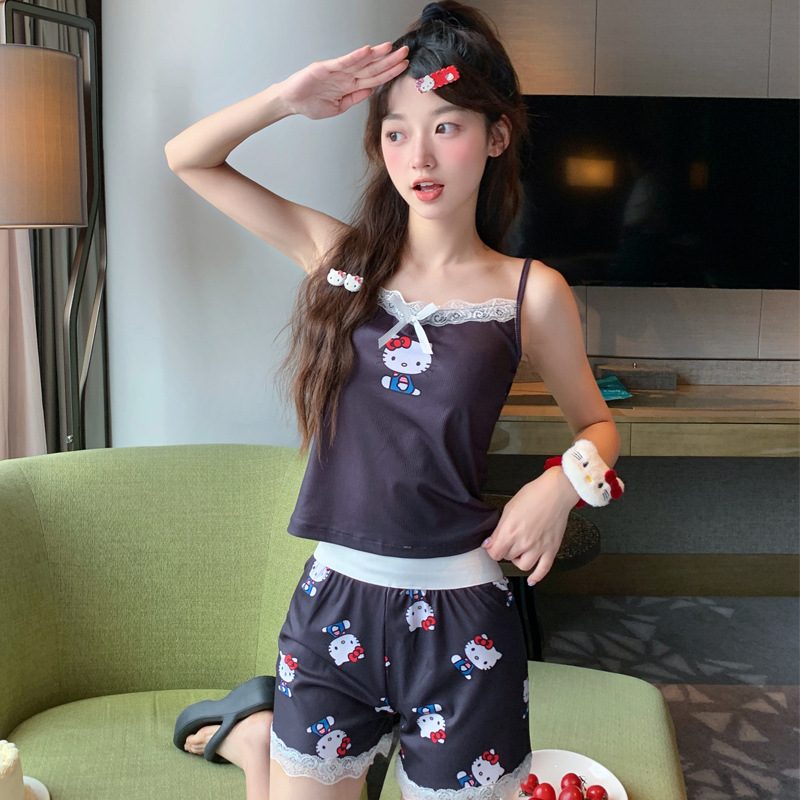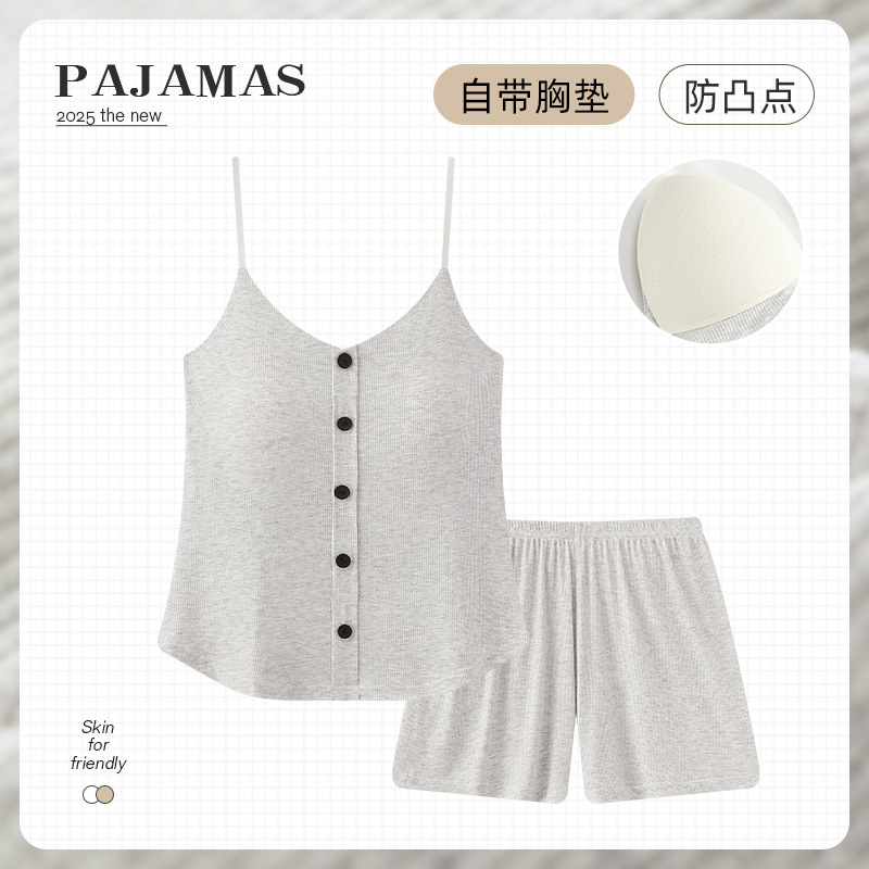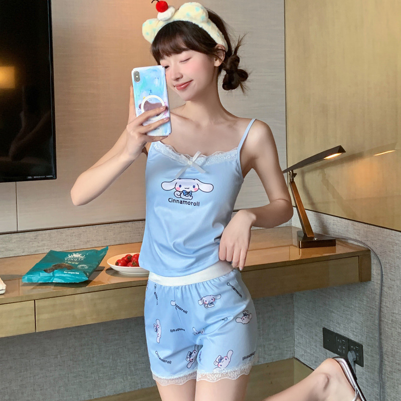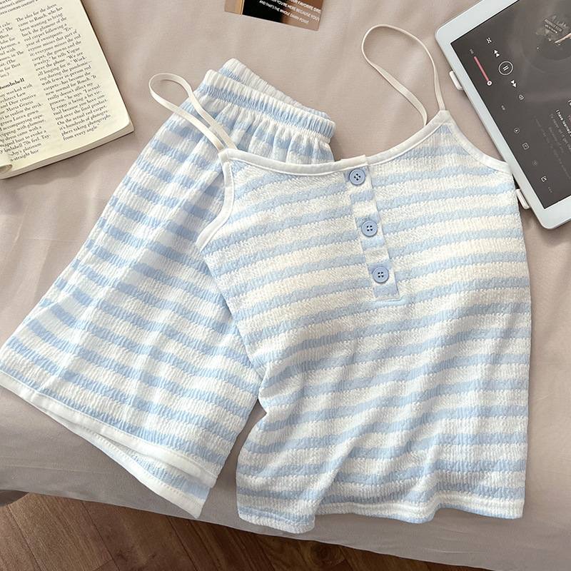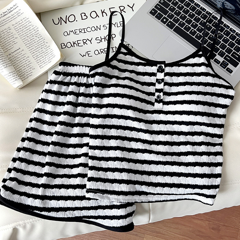 순수한 뜨거운 소녀 캐미솔 파자마 여성 가슴 패드 여름 온라인 레드 스타일 뜨거운 야외 가정복 세트