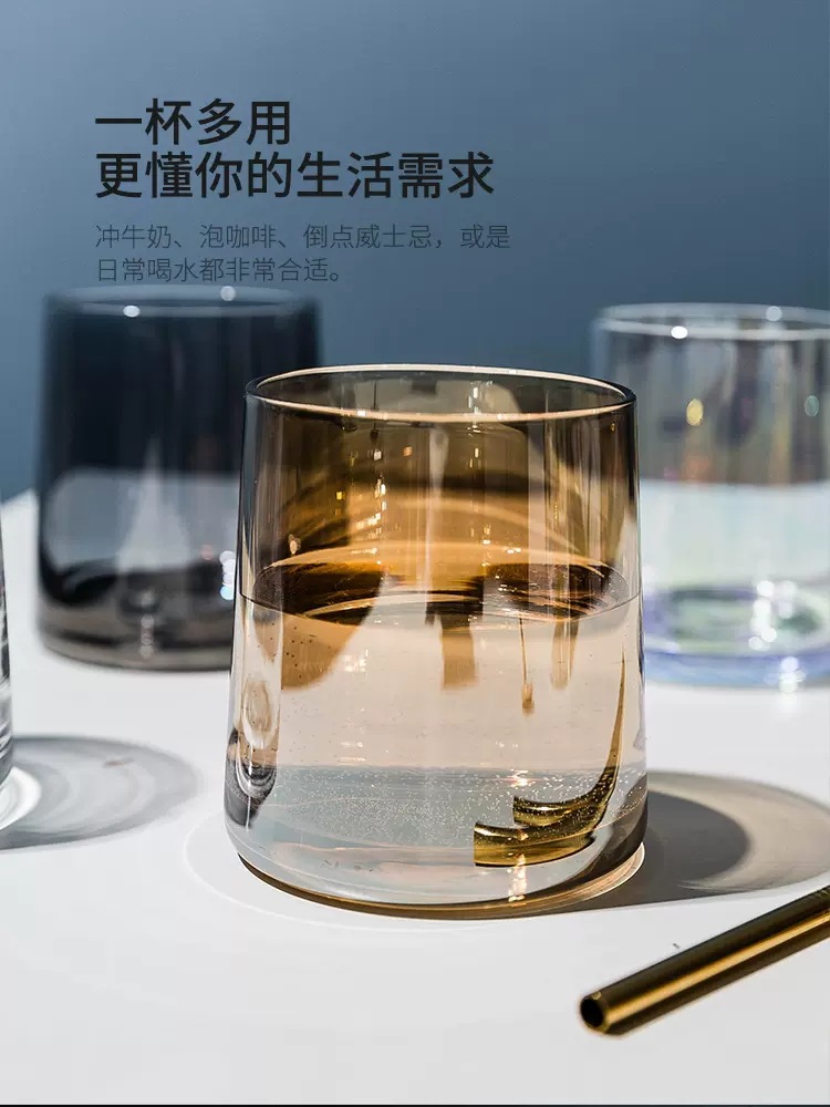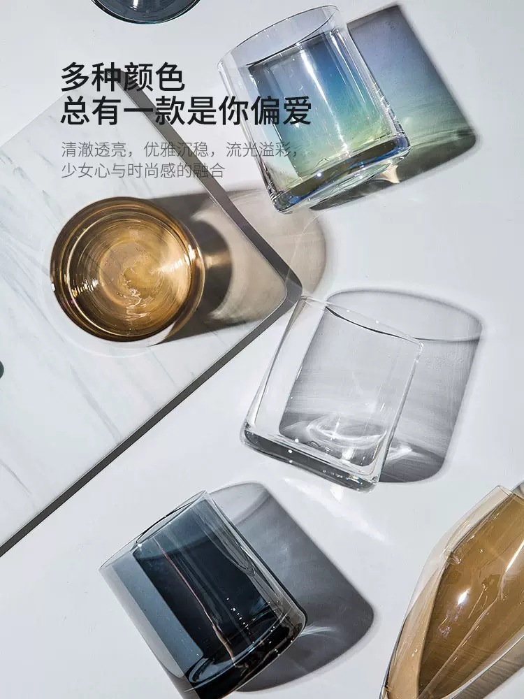 심플하고 인기 있는 고급스러운 투명 유리컵, 컬러풀한 크리스탈 우유컵, 주스컵, 물컵, 가글컵, 냉음료컵스토어 가기