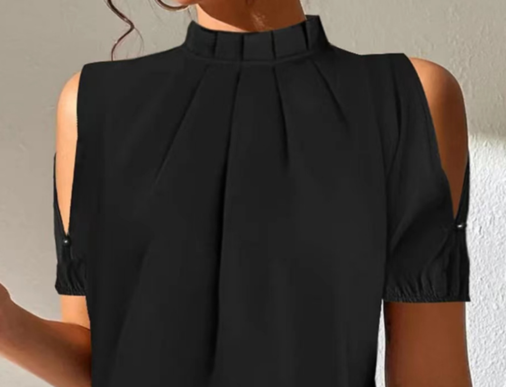 2023 여름 새로운 아마존 독립 역 유럽과 미국 단색 스탠드 칼라 반팔 셔츠스토어 가기