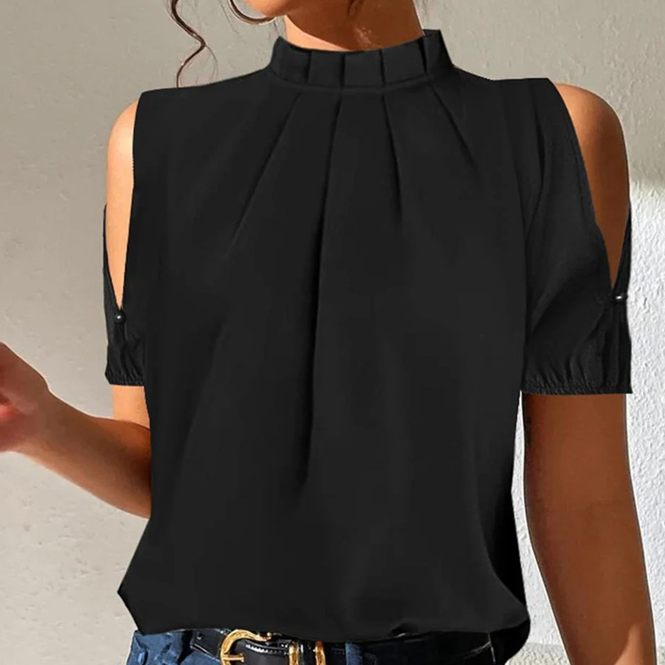2023 여름 새로운 아마존 독립 역 유럽과 미국 단색 스탠드 칼라 반팔 셔츠