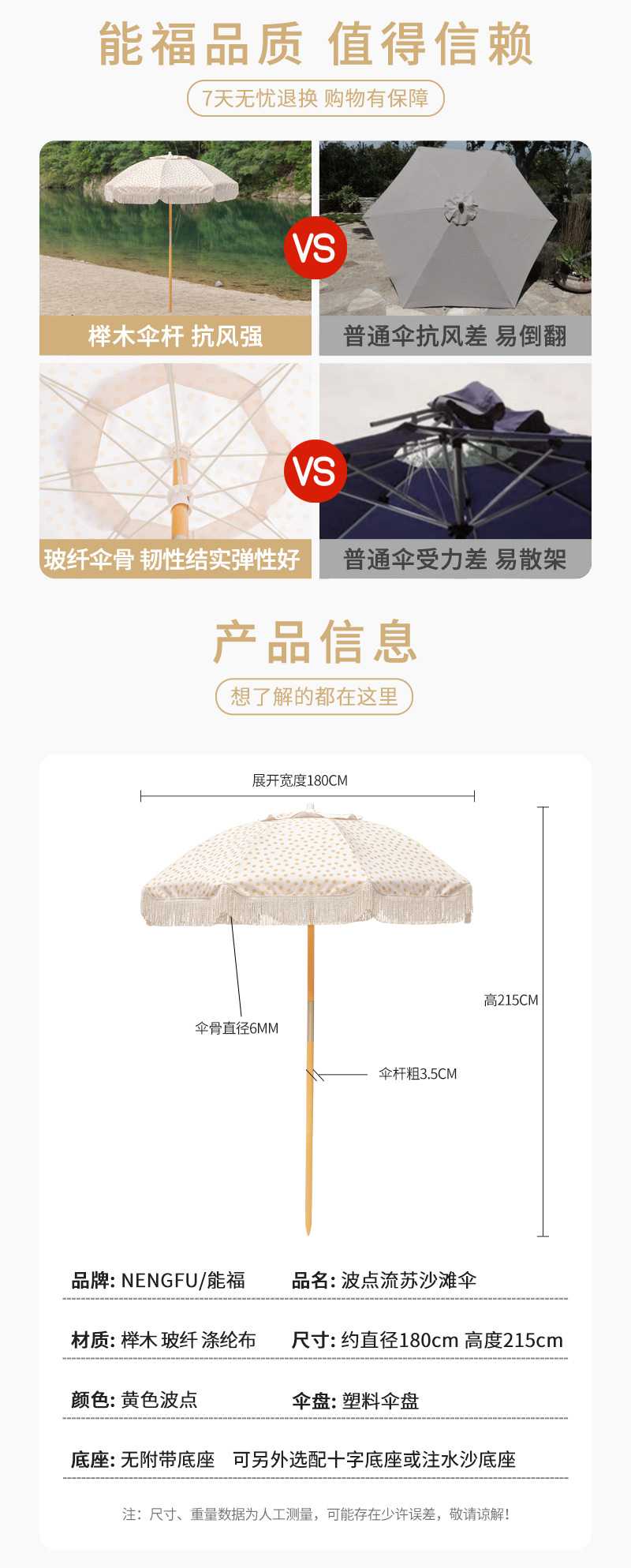 너도밤 나무 장대 비치 우산 레저 선 스크린 휴대용 태양 우산 정원 휴일 우산 공장스토어 가기