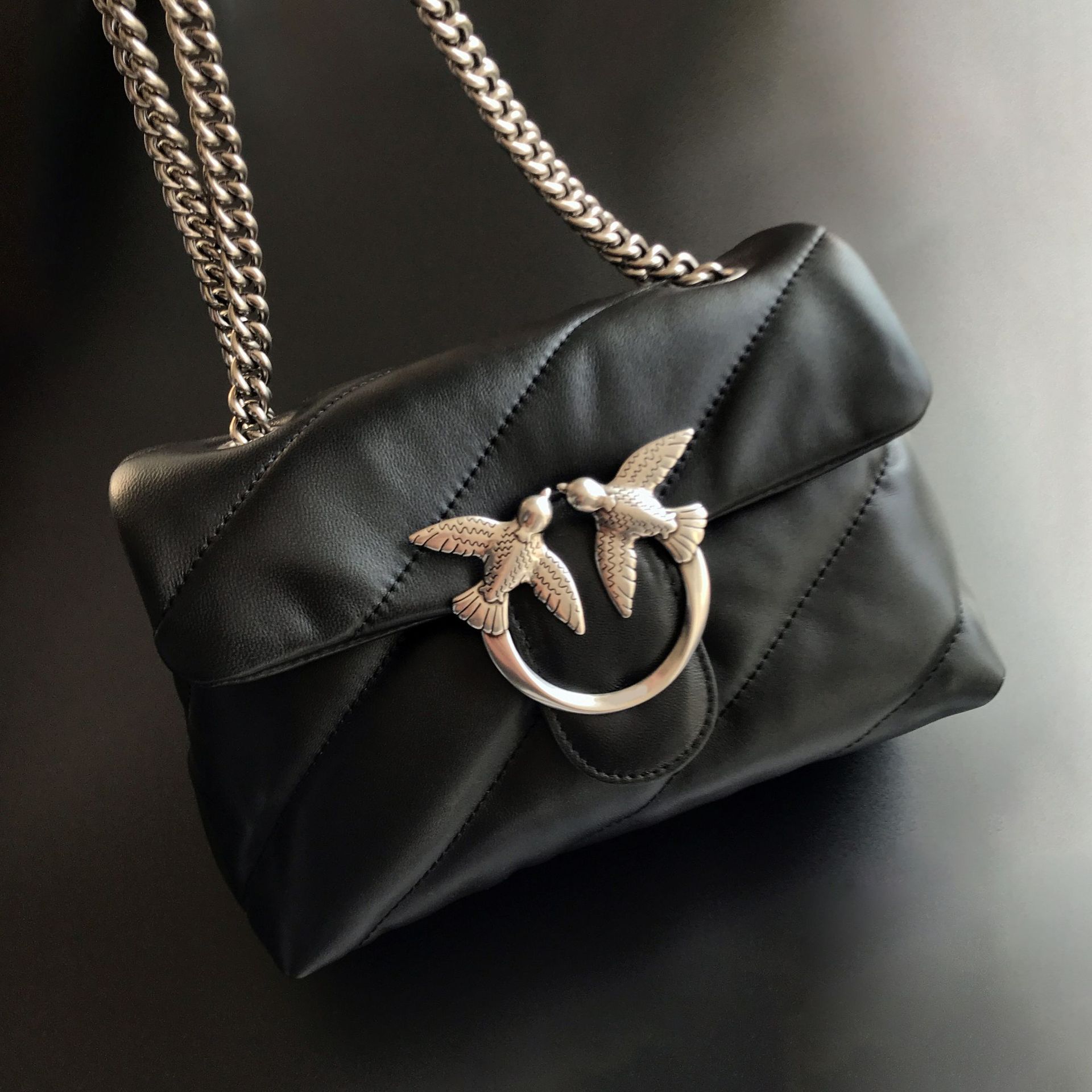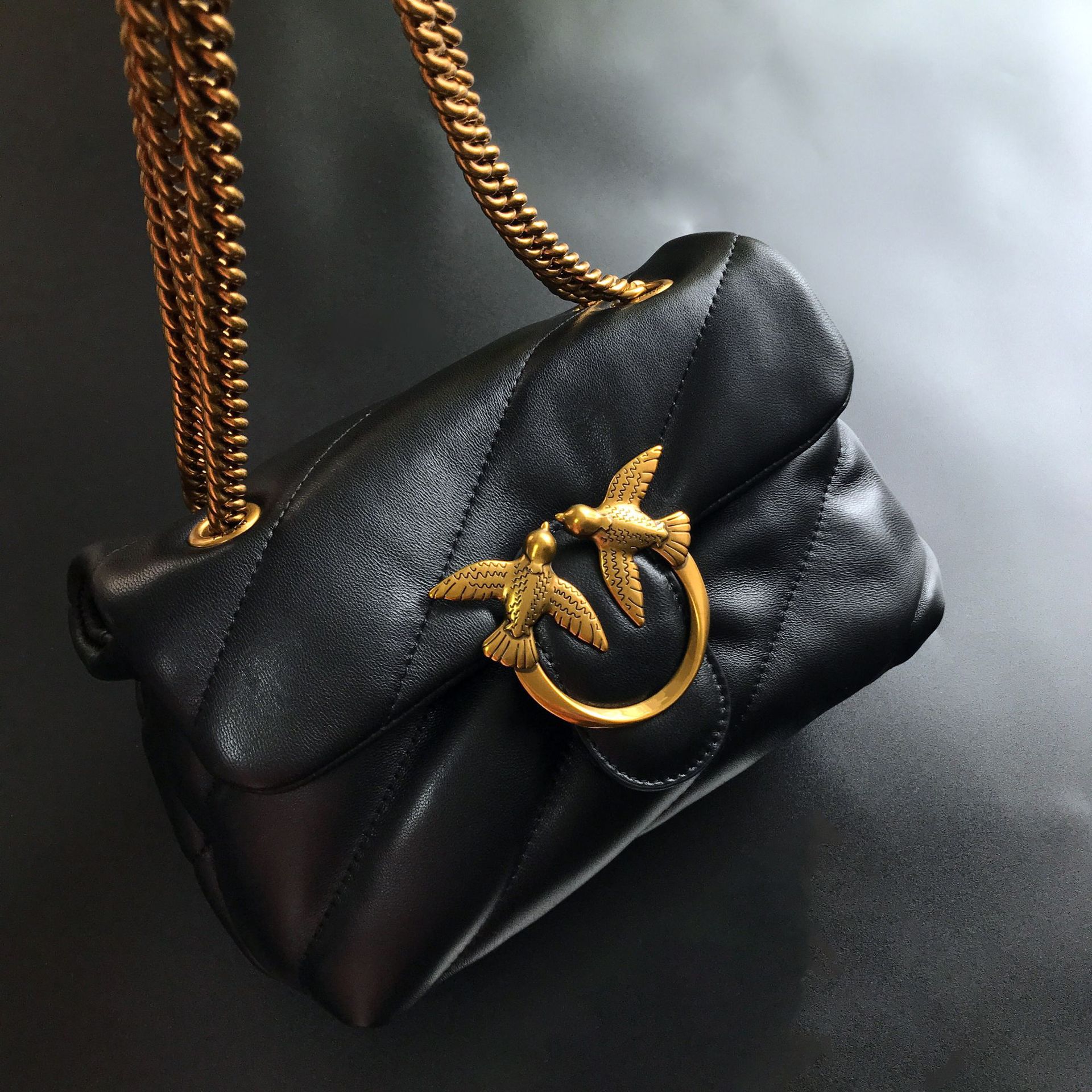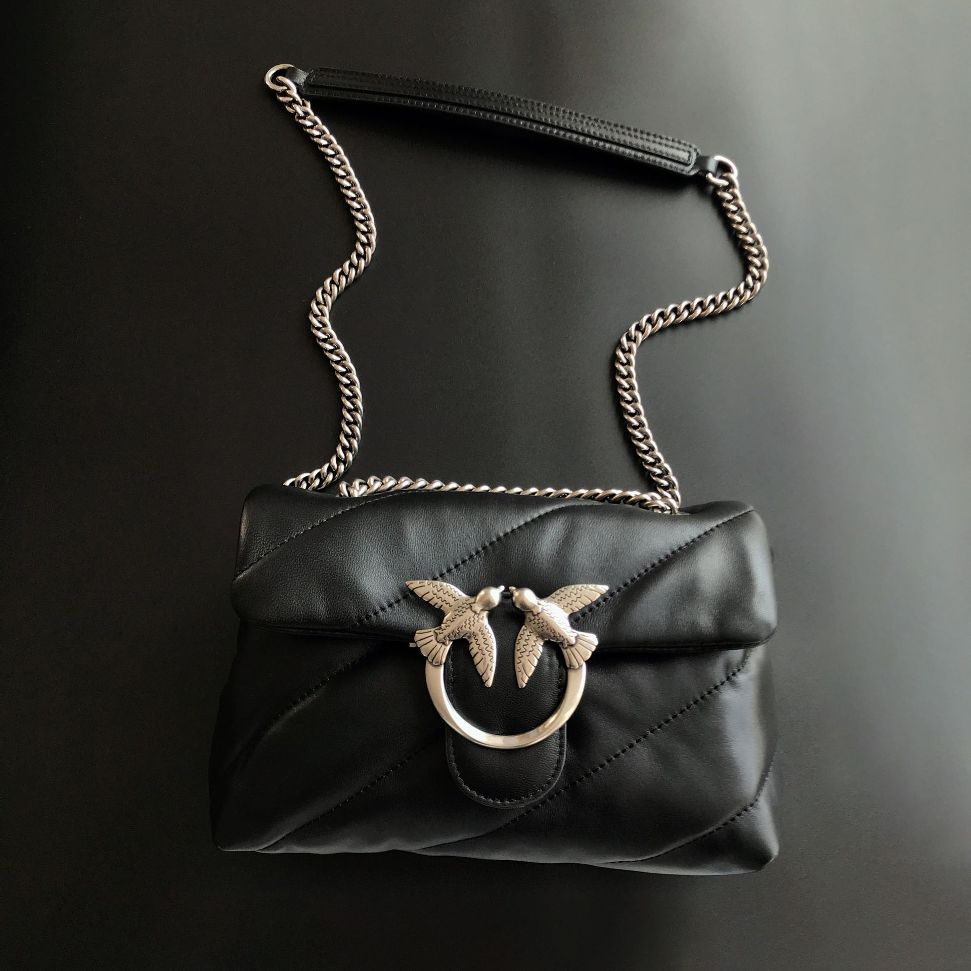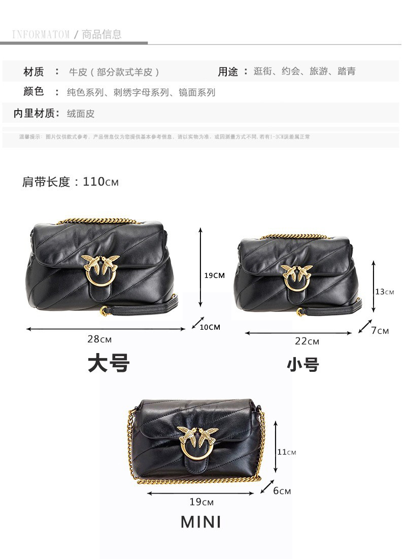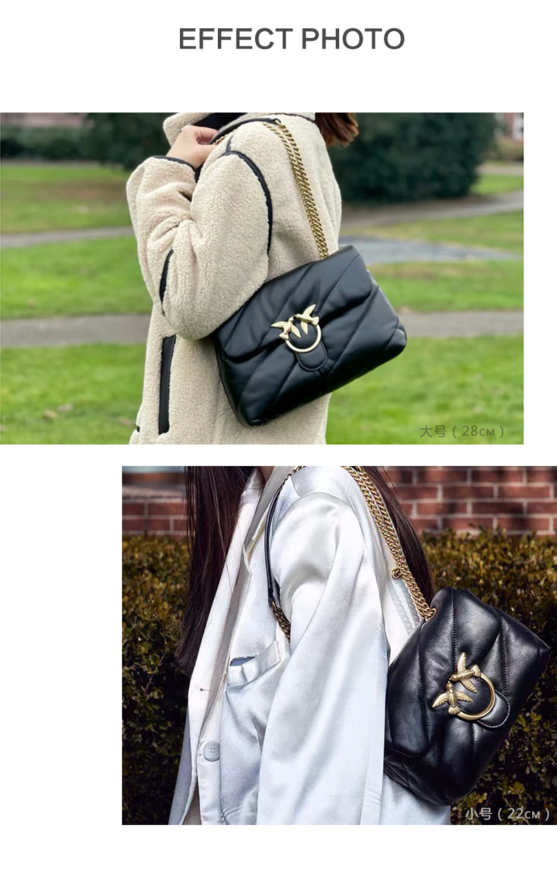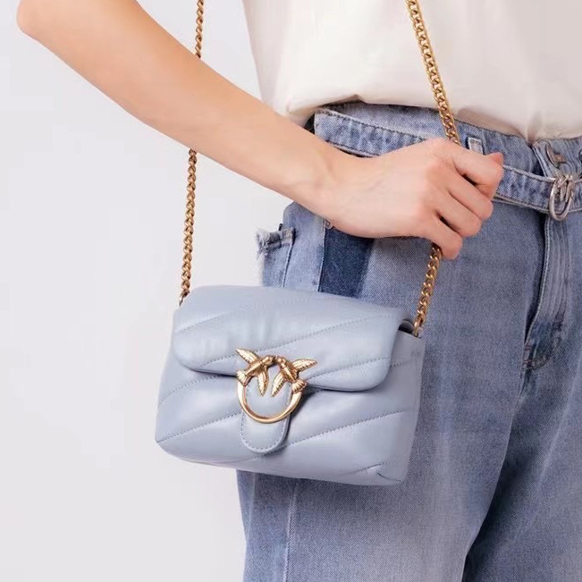 새로운 pinko 같은 스타일의 고품질 양피 퍼프 베개 가방 미니 크로스 바디 체인 퍼프 스왈로우 백 여성용 가방스토어 가기