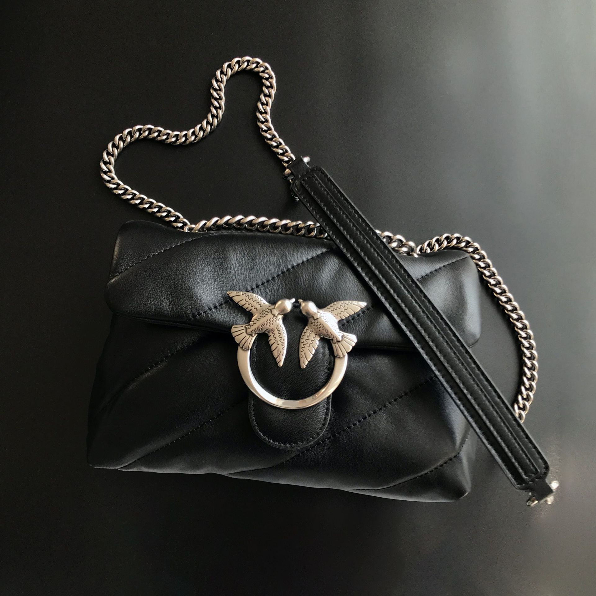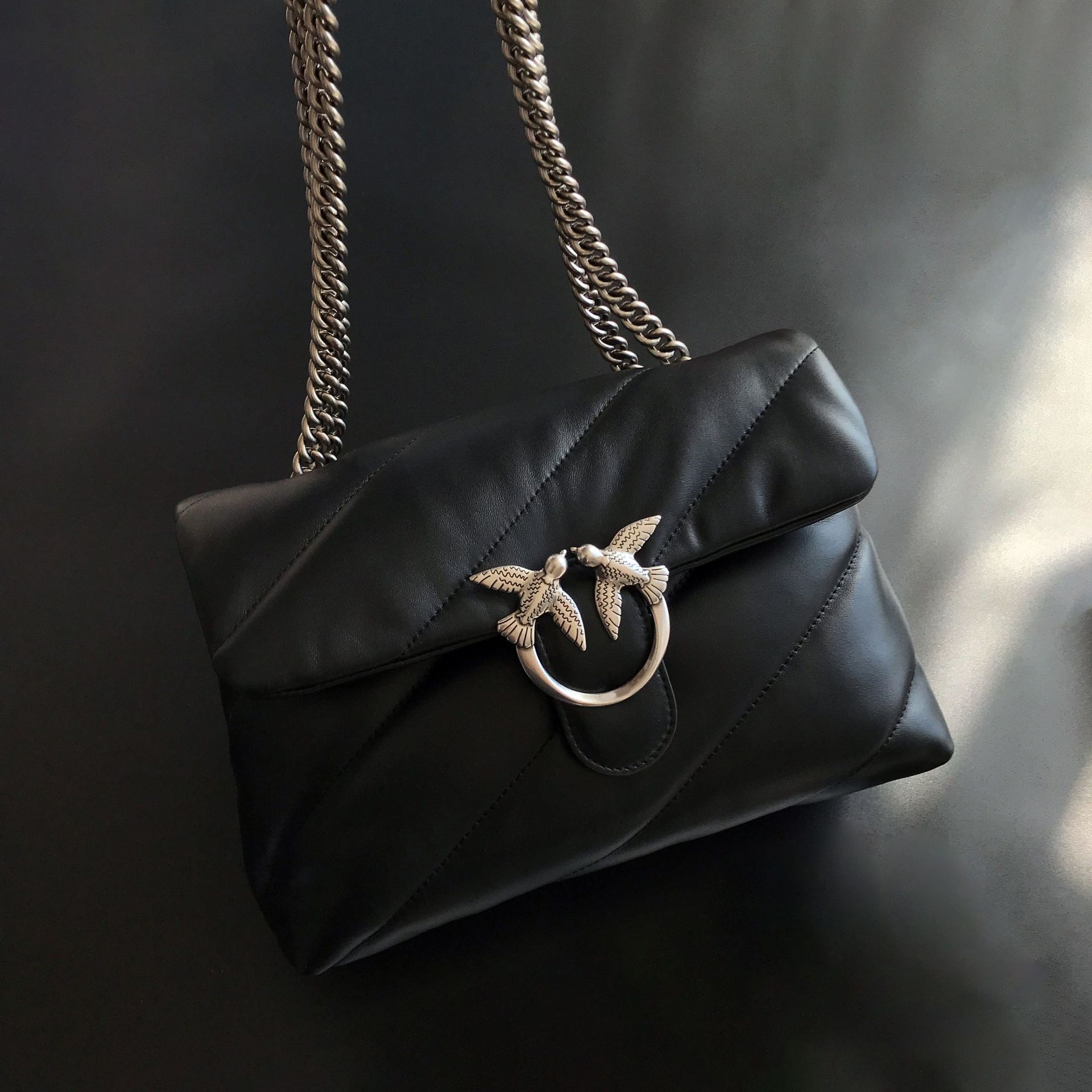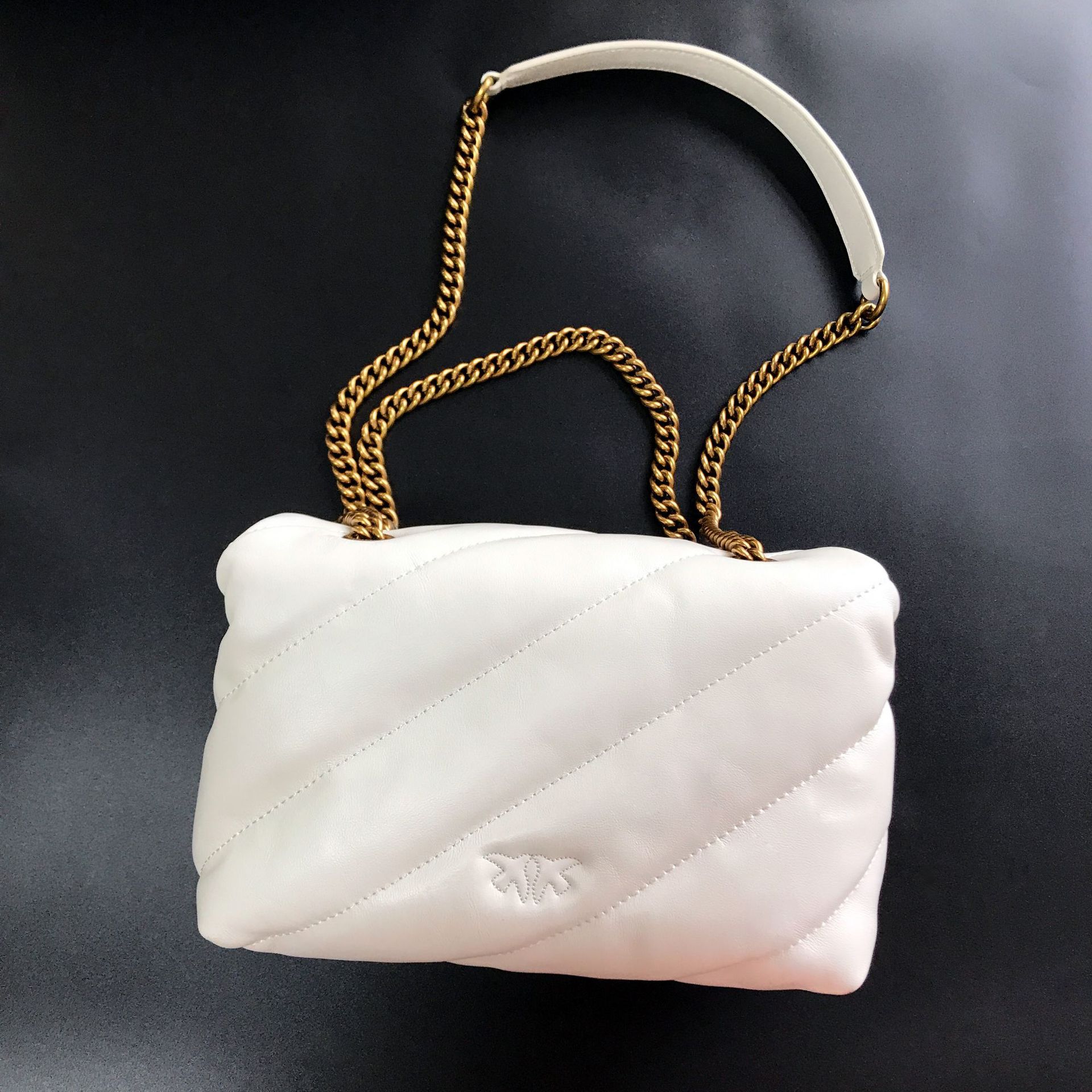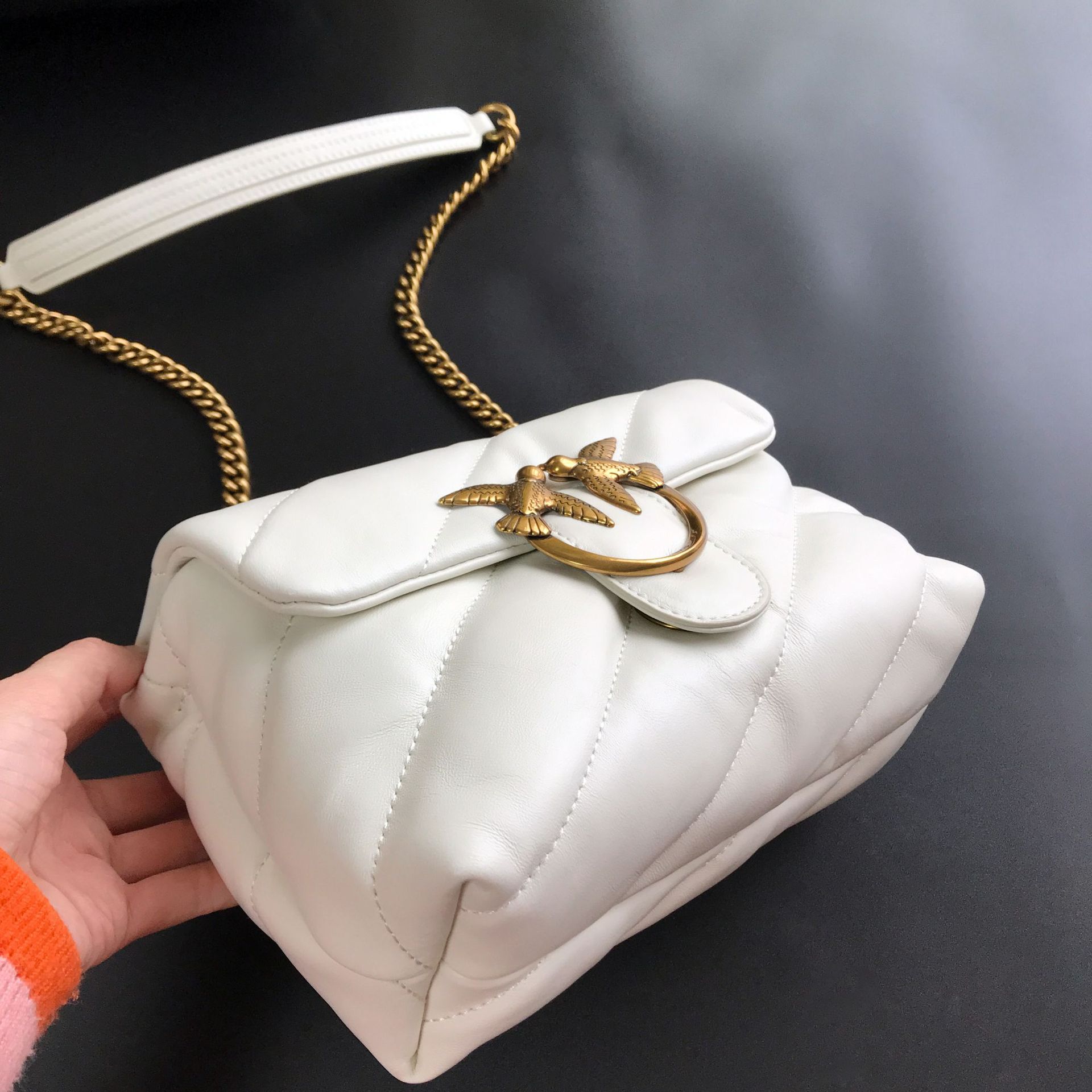 새로운 pinko 같은 스타일의 고품질 양피 퍼프 베개 가방 미니 크로스 바디 체인 퍼프 스왈로우 백 여성용 가방스토어 가기