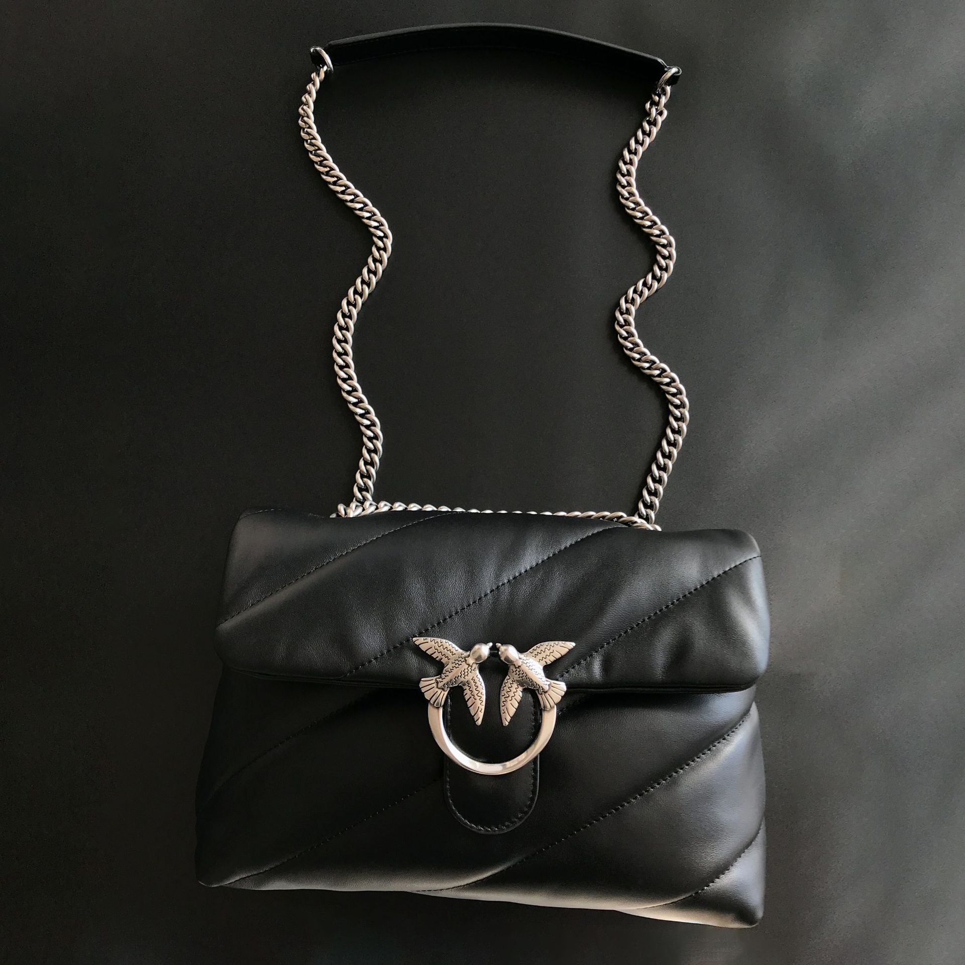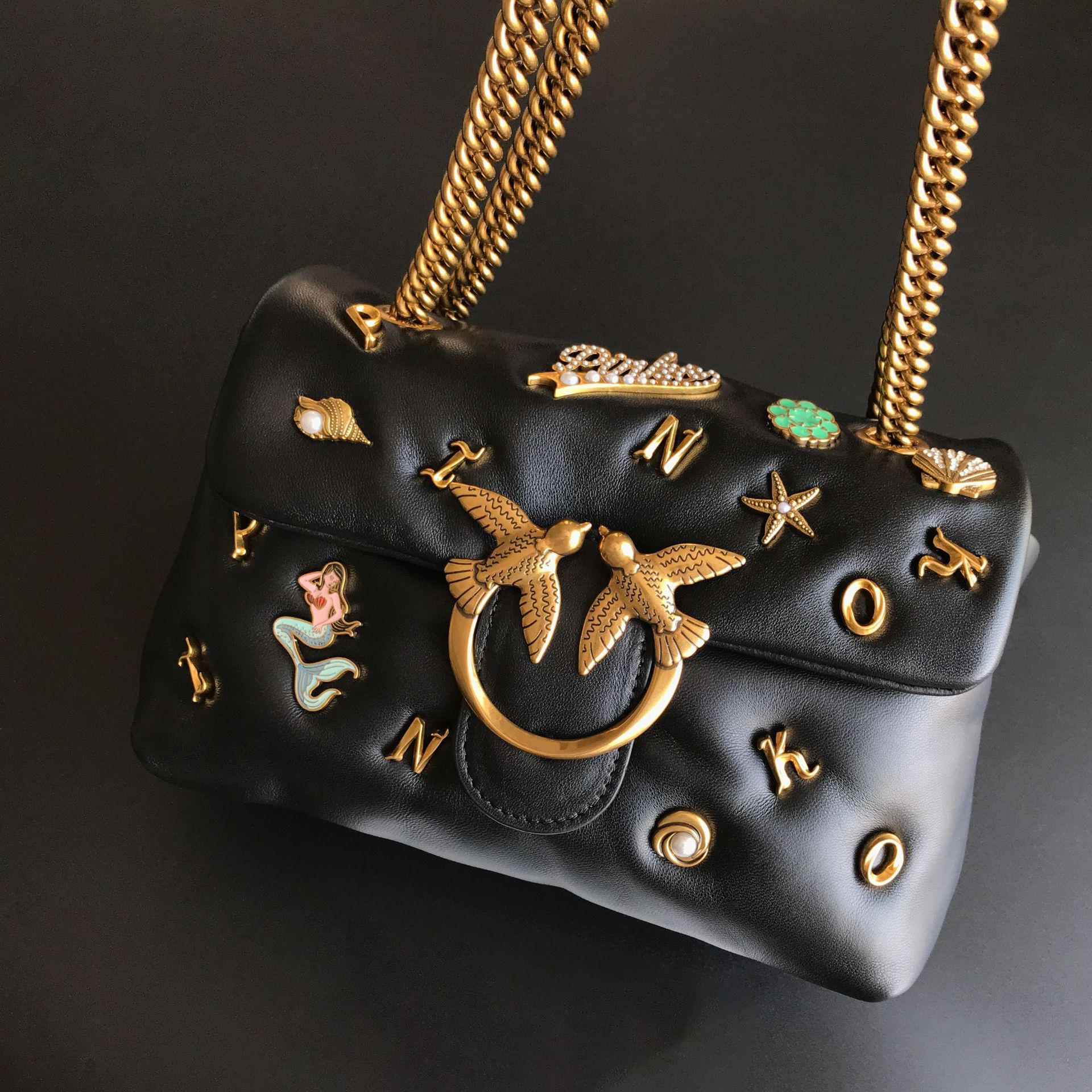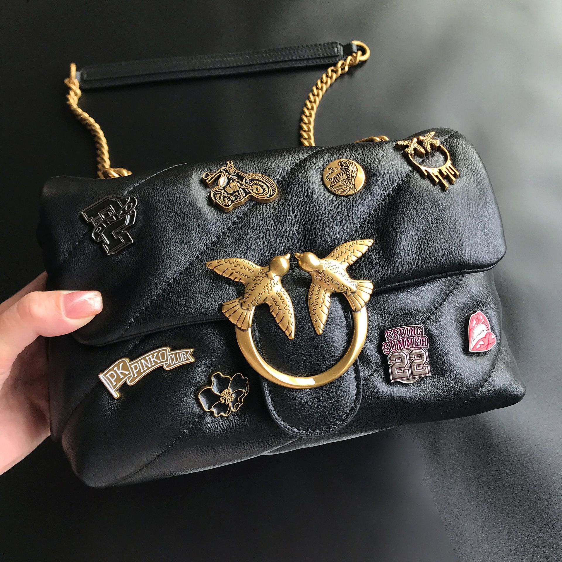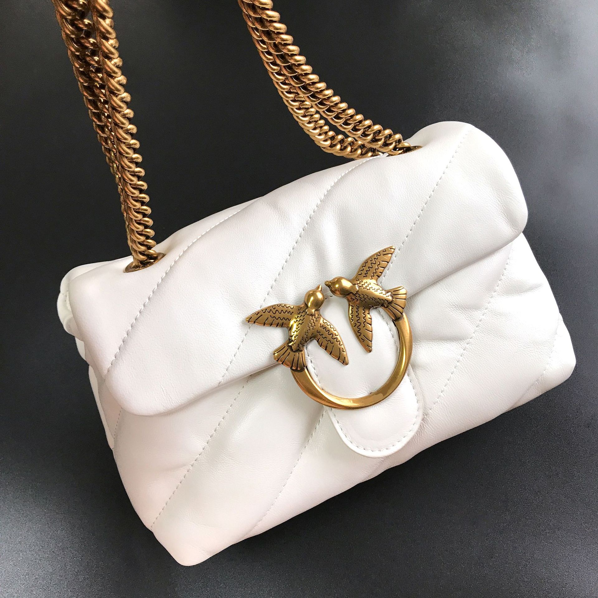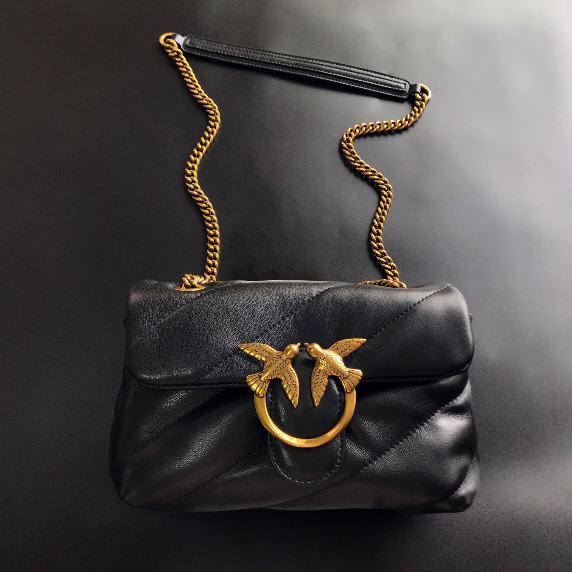 새로운 pinko 같은 스타일의 고품질 양피 퍼프 베개 가방 미니 크로스 바디 체인 퍼프 스왈로우 백 여성용 가방스토어 가기