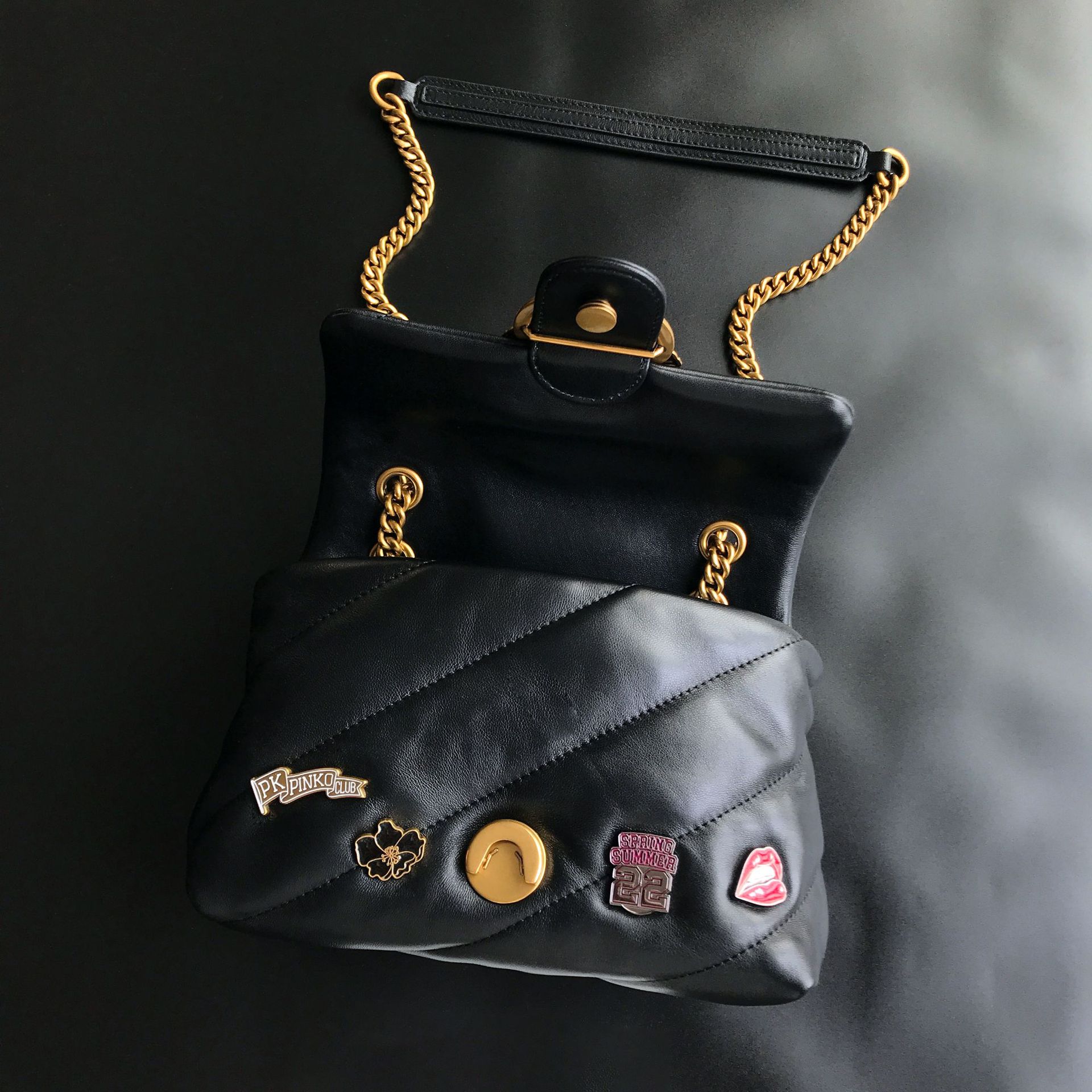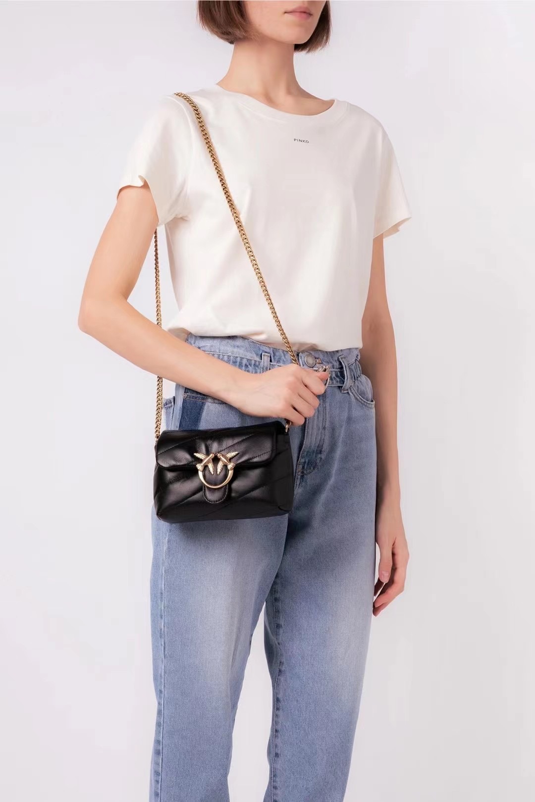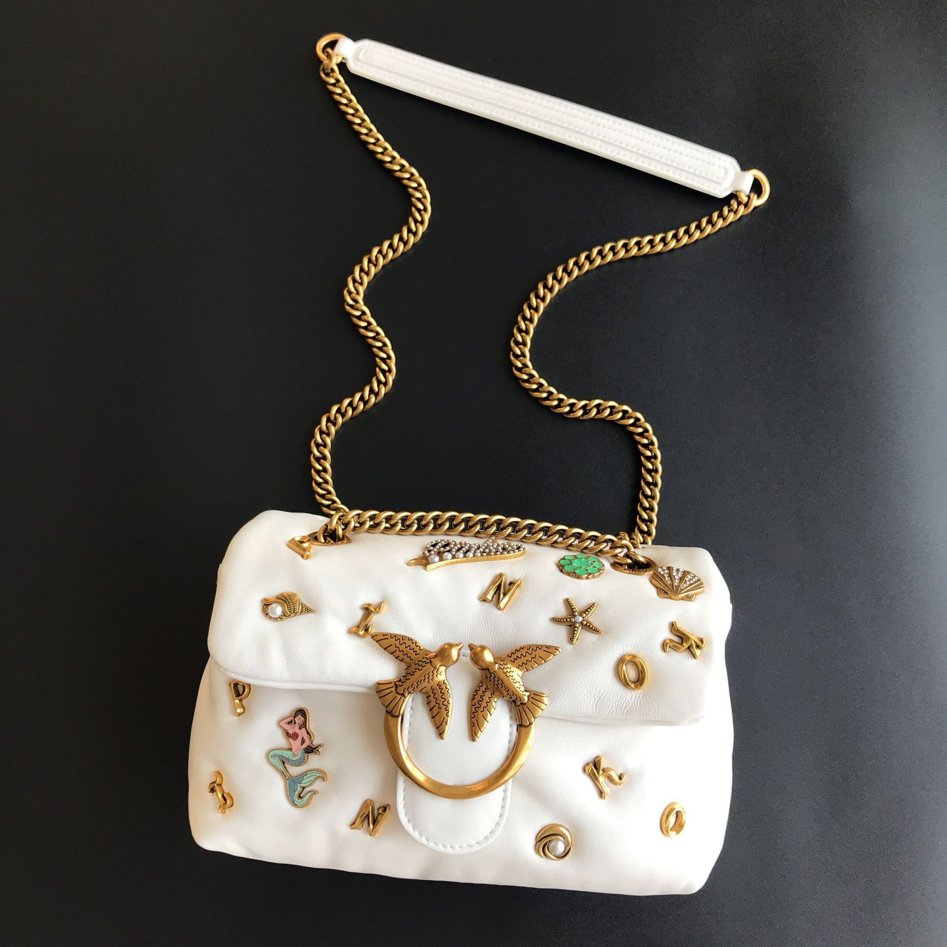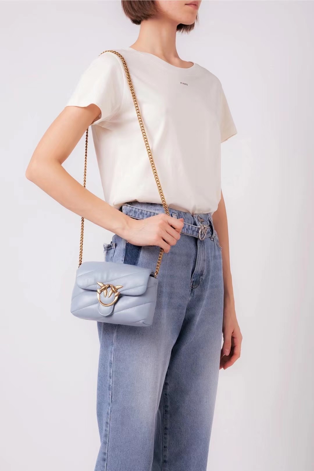 새로운 pinko 같은 스타일의 고품질 양피 퍼프 베개 가방 미니 크로스 바디 체인 퍼프 스왈로우 백 여성용 가방스토어 가기