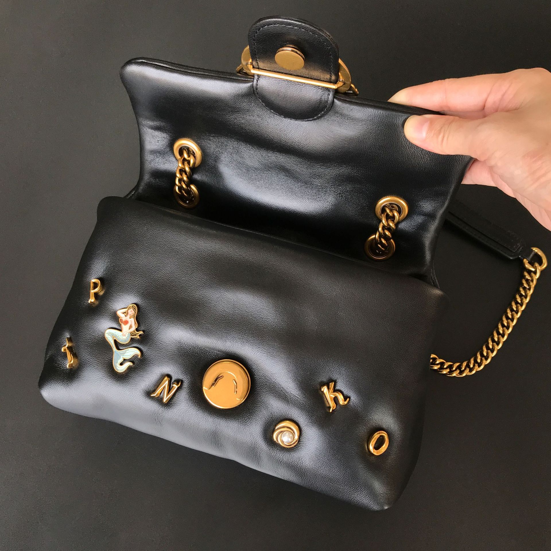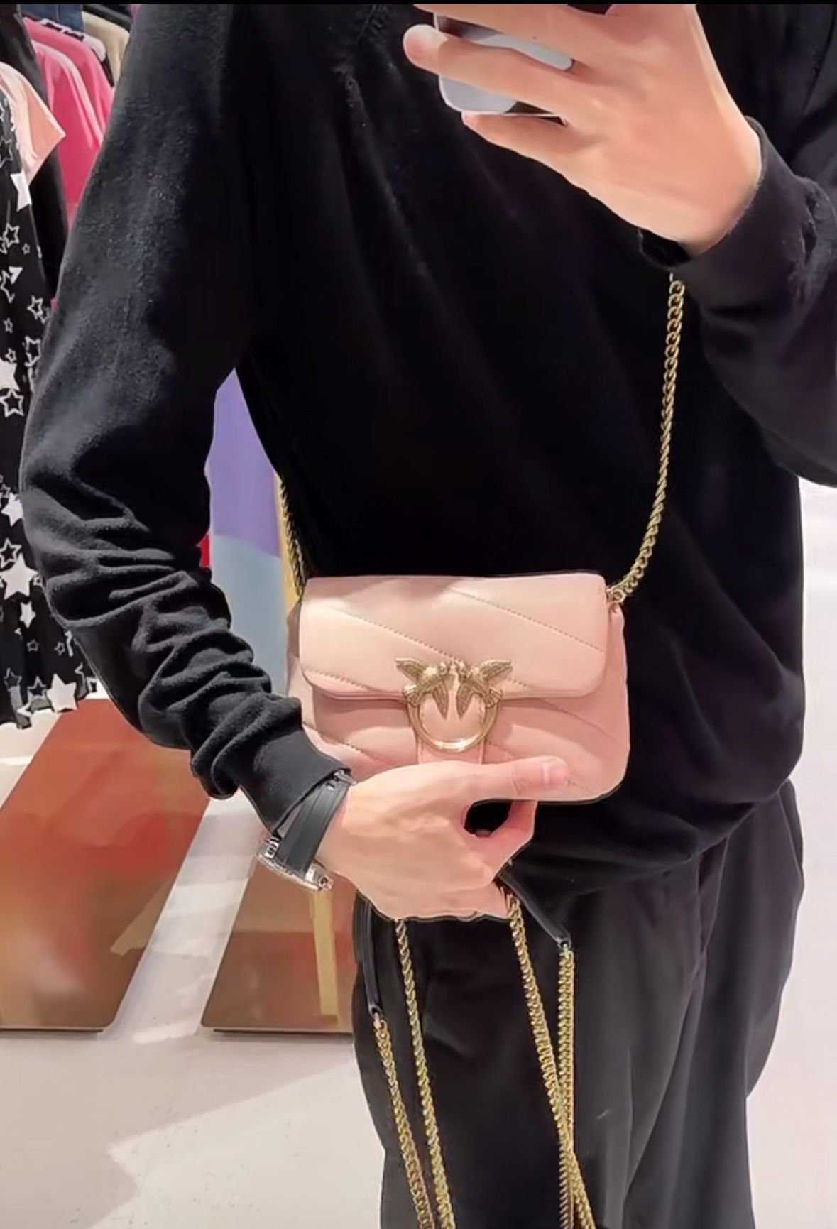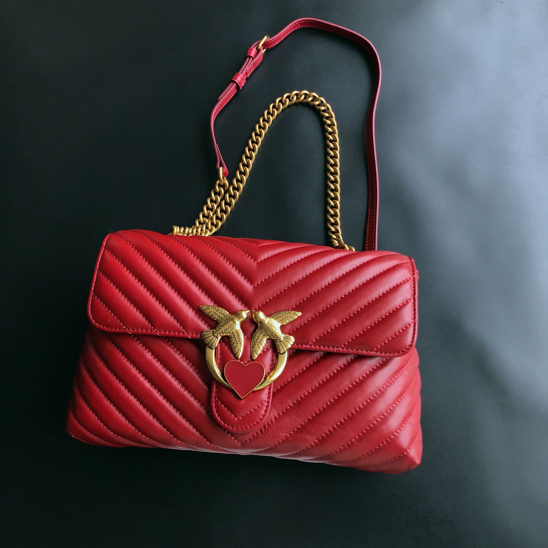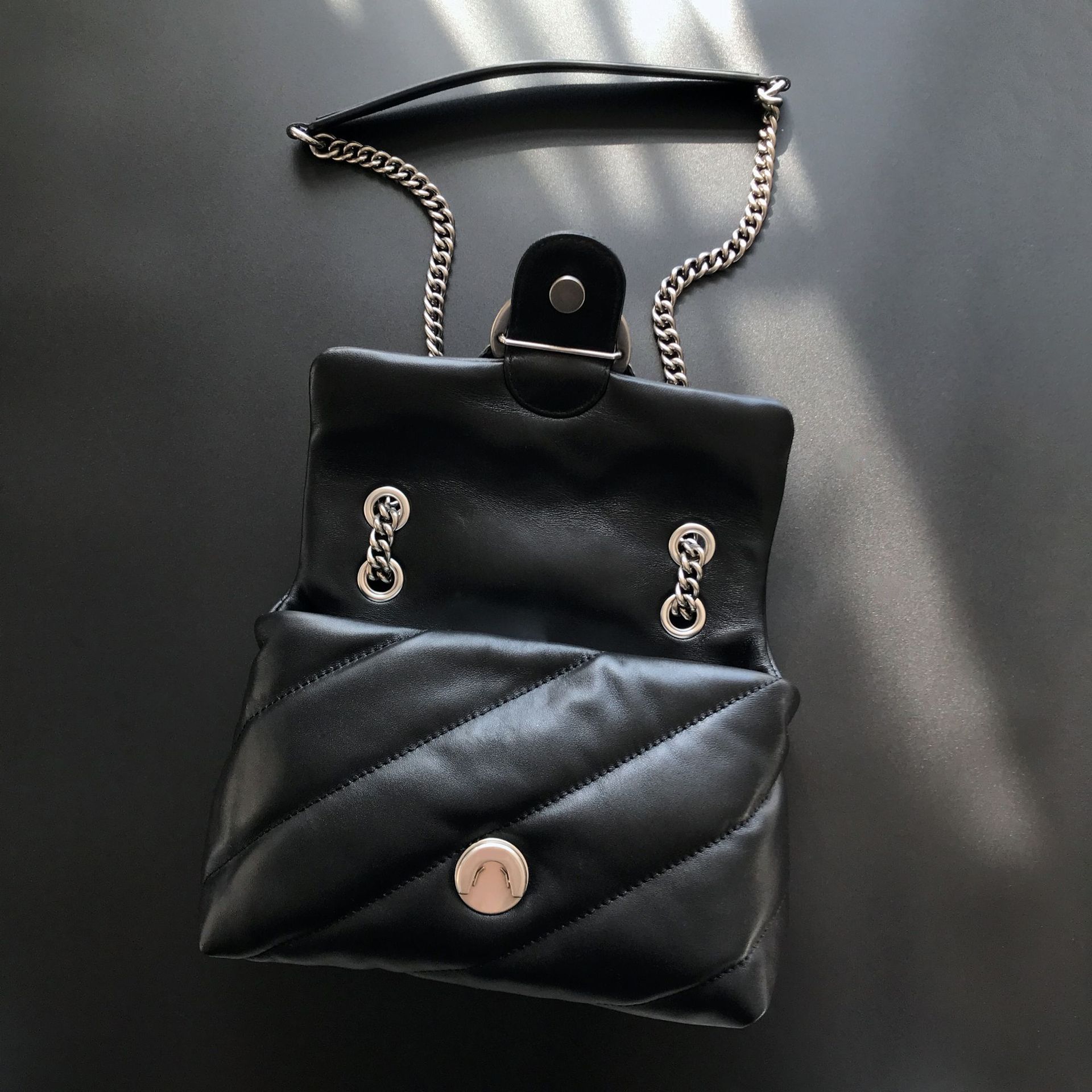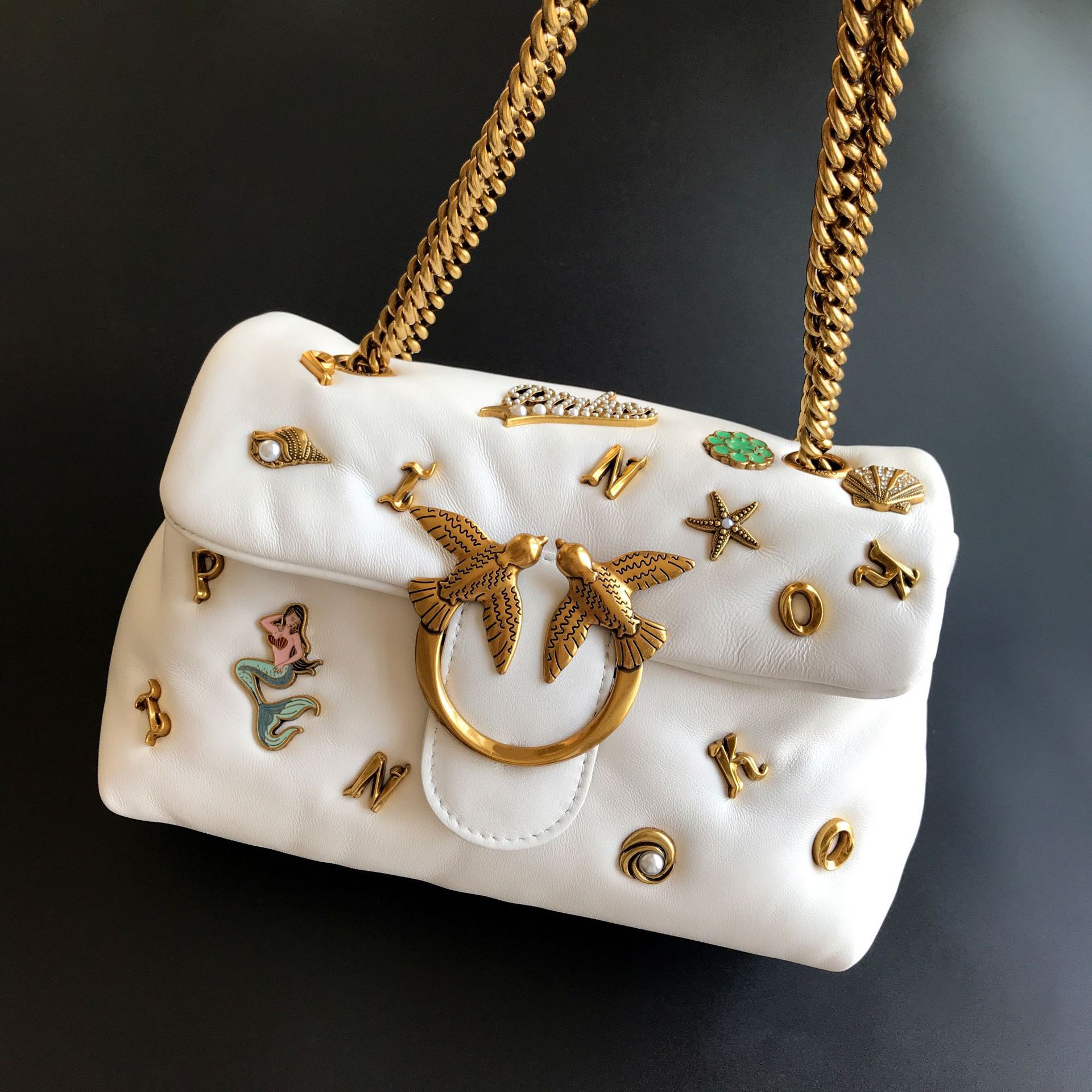 새로운 pinko 같은 스타일의 고품질 양피 퍼프 베개 가방 미니 크로스 바디 체인 퍼프 스왈로우 백 여성용 가방스토어 가기