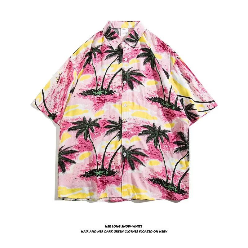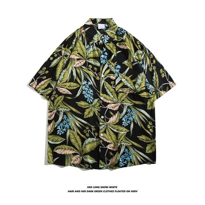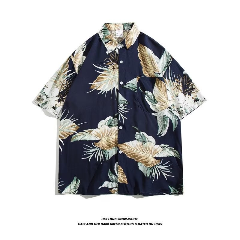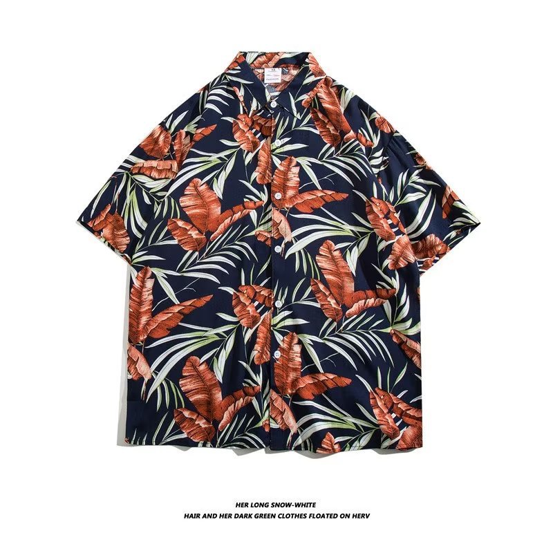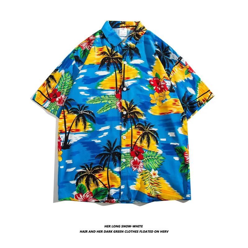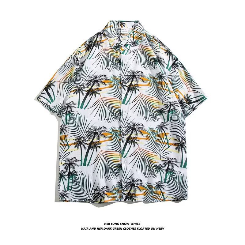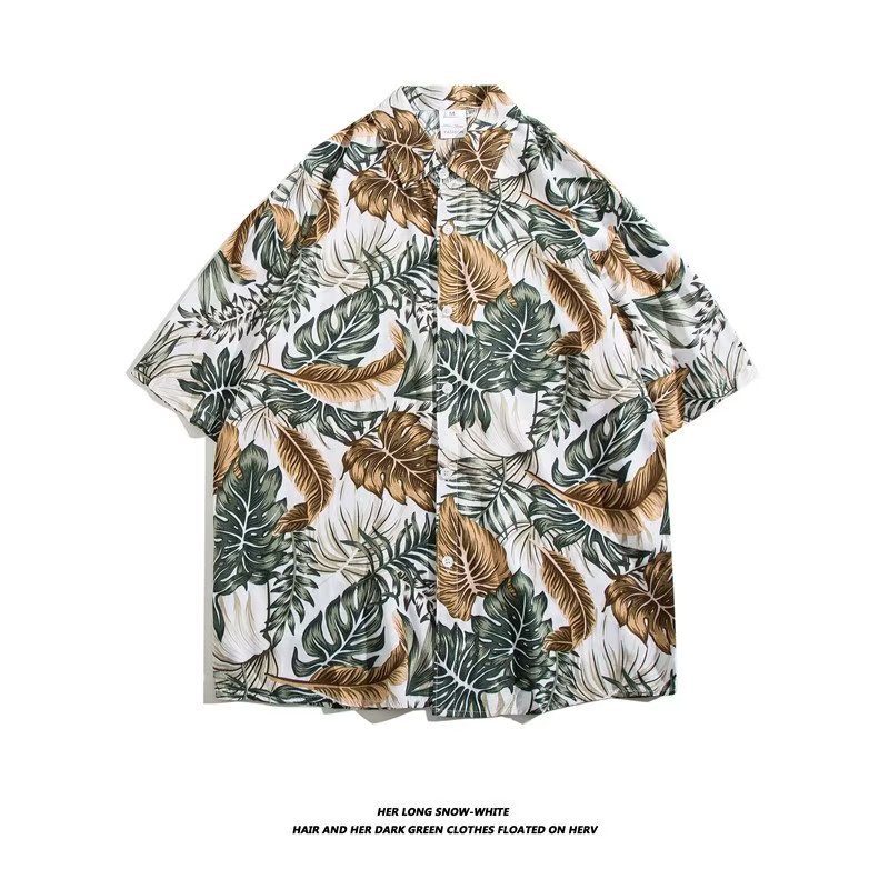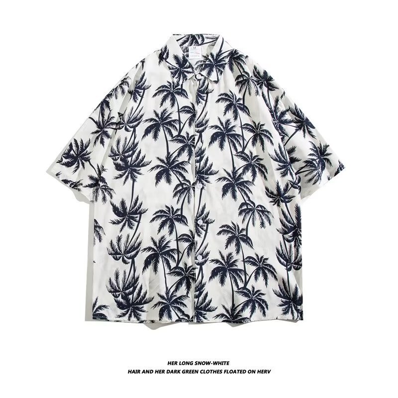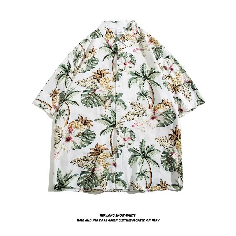 여름 동남 아시아 여행 휴가 면 프린트 셔츠 느슨한 캐주얼 하와이 비치 반팔 셔츠 남성복스토어 가기