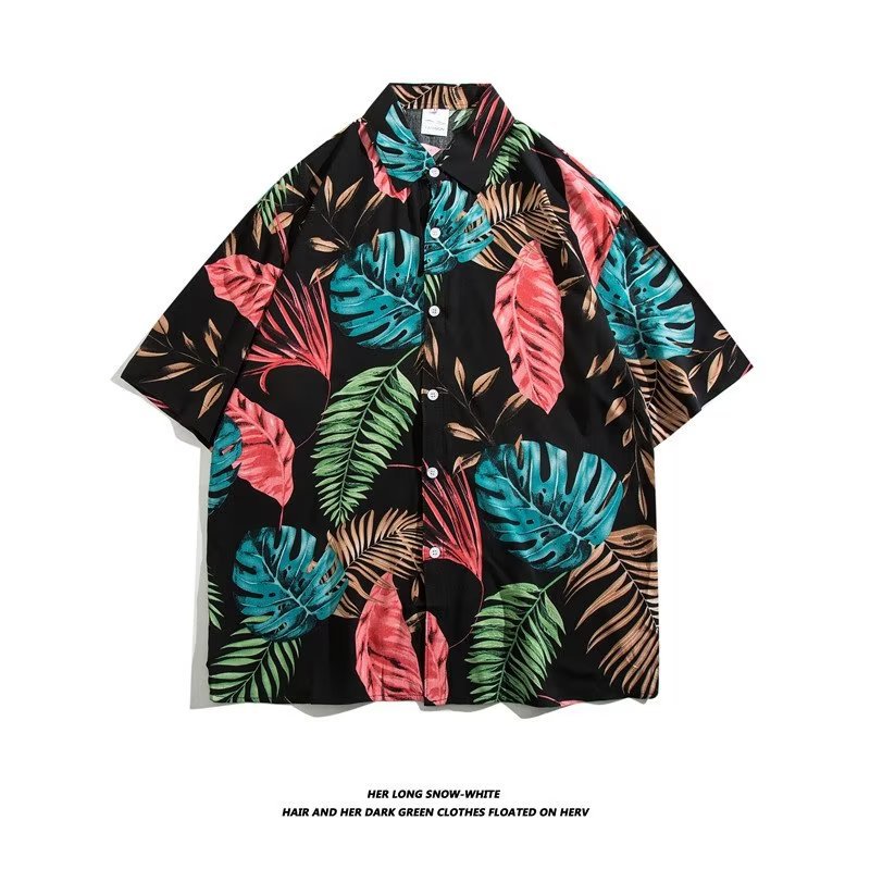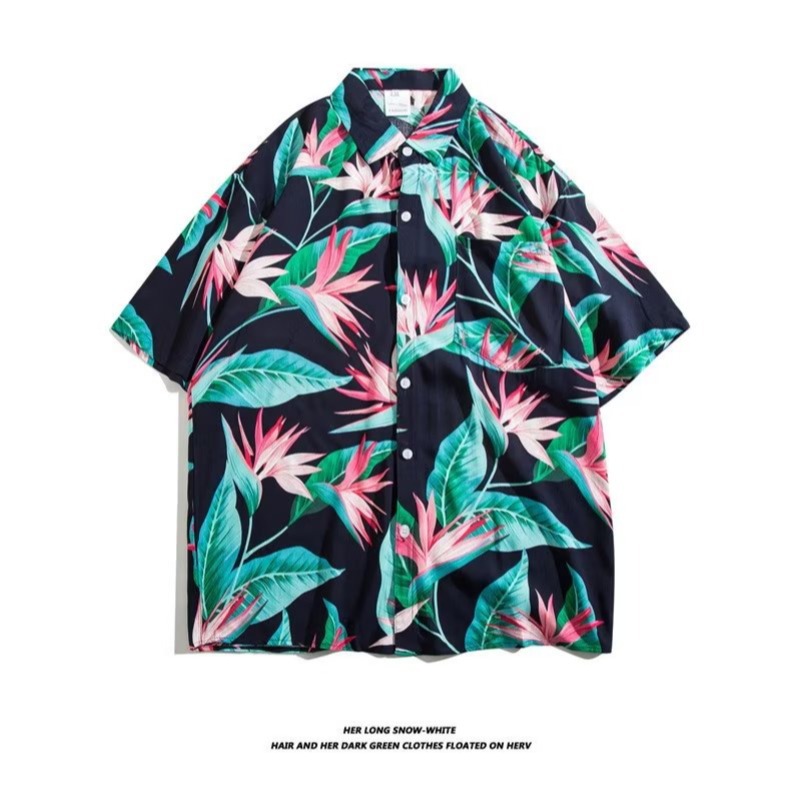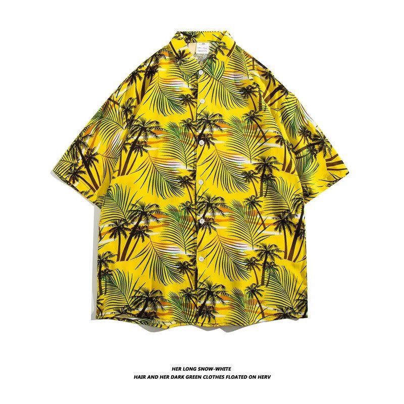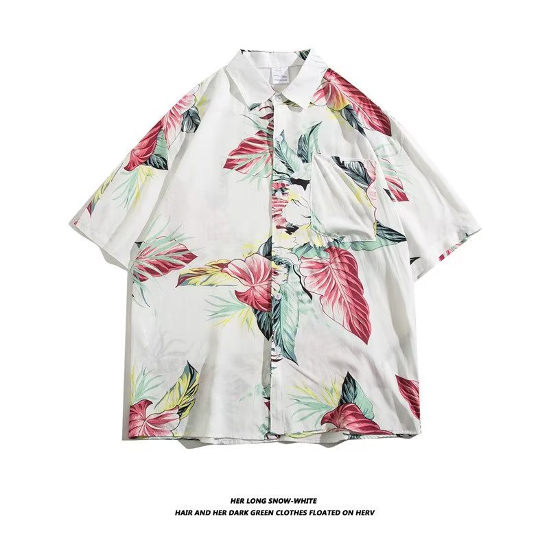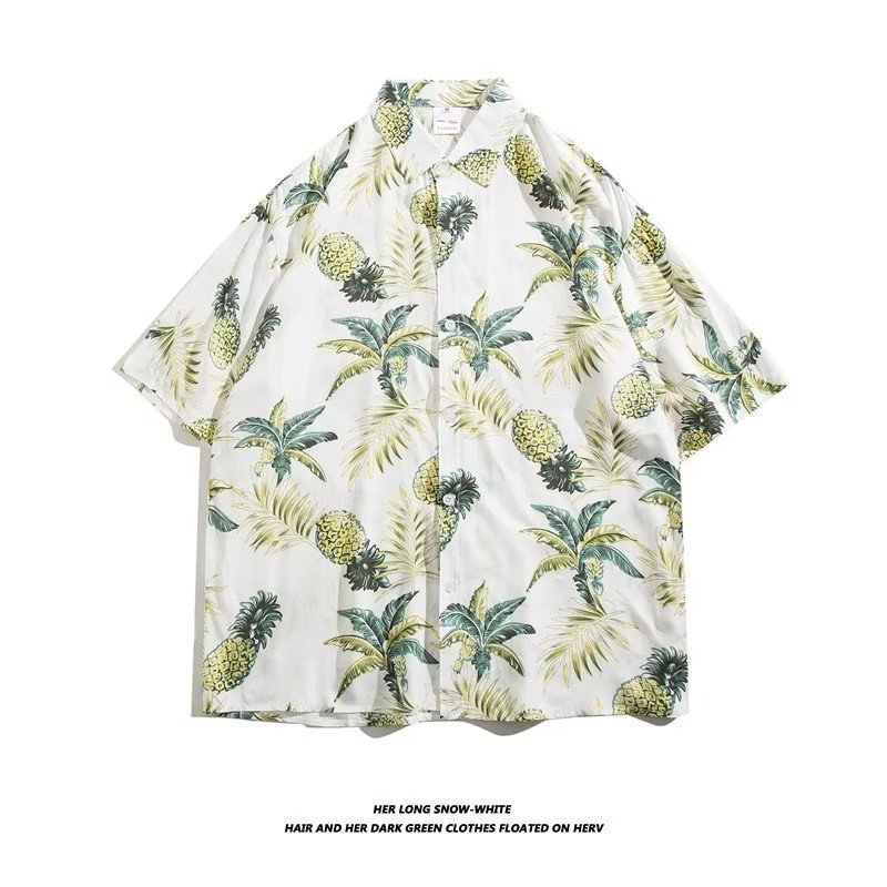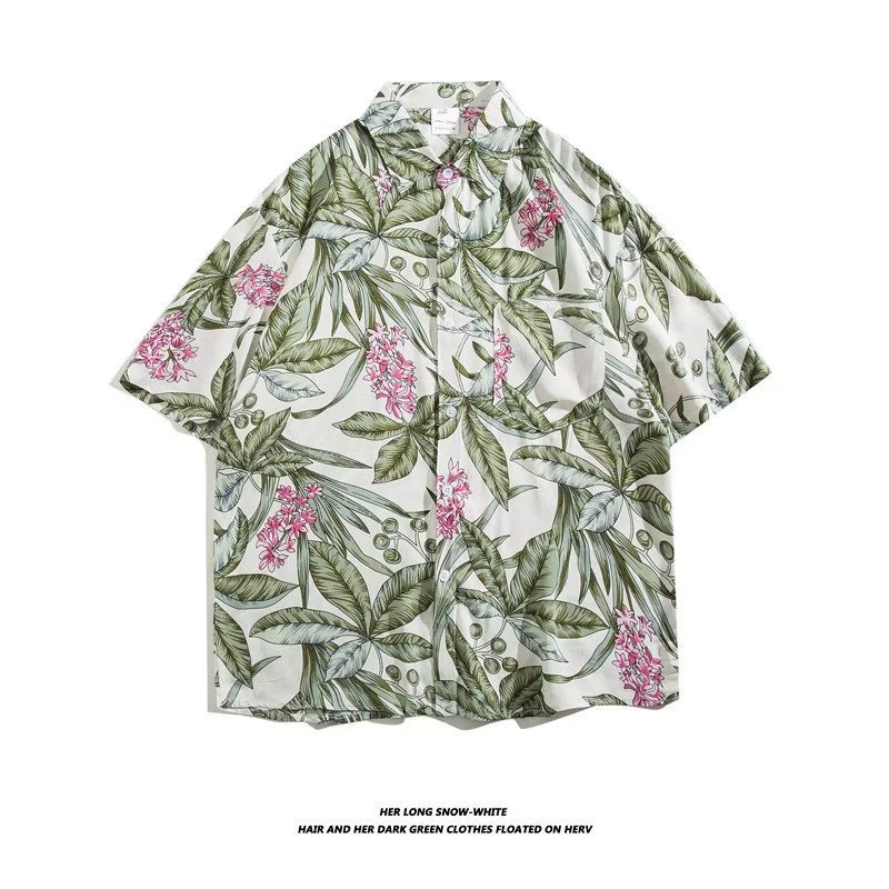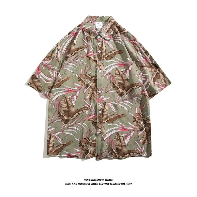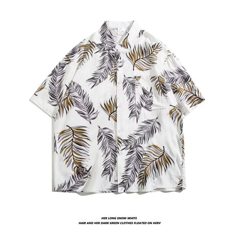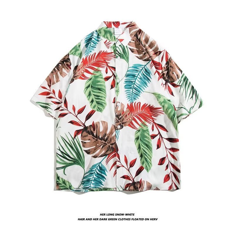 여름 동남 아시아 여행 휴가 면 프린트 셔츠 느슨한 캐주얼 하와이 비치 반팔 셔츠 남성복스토어 가기