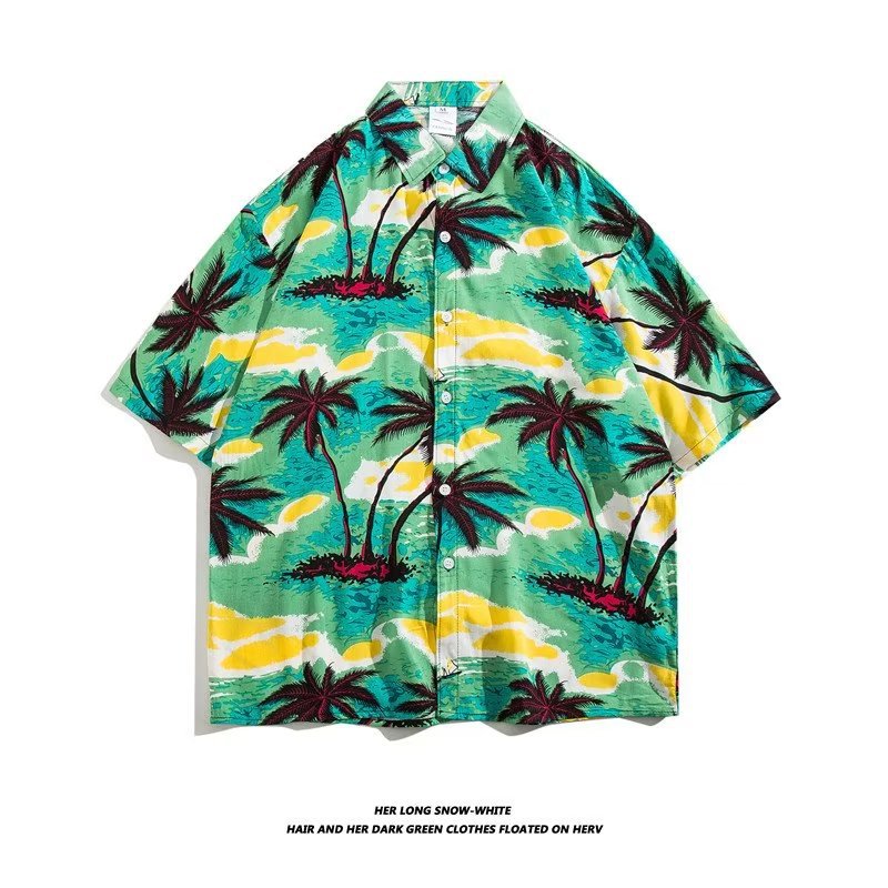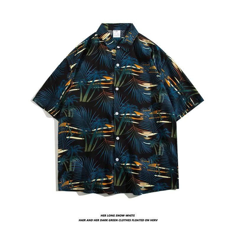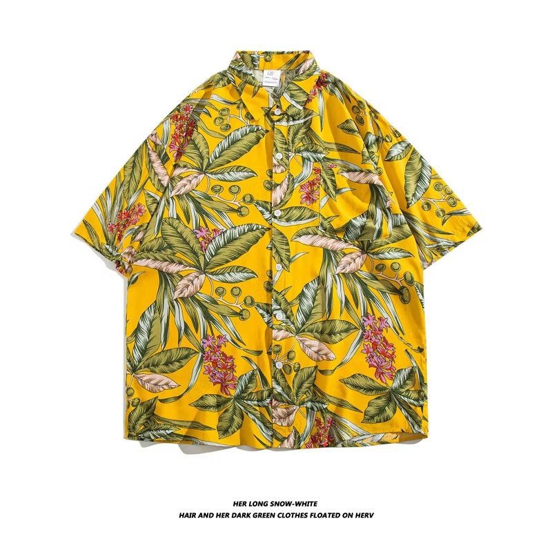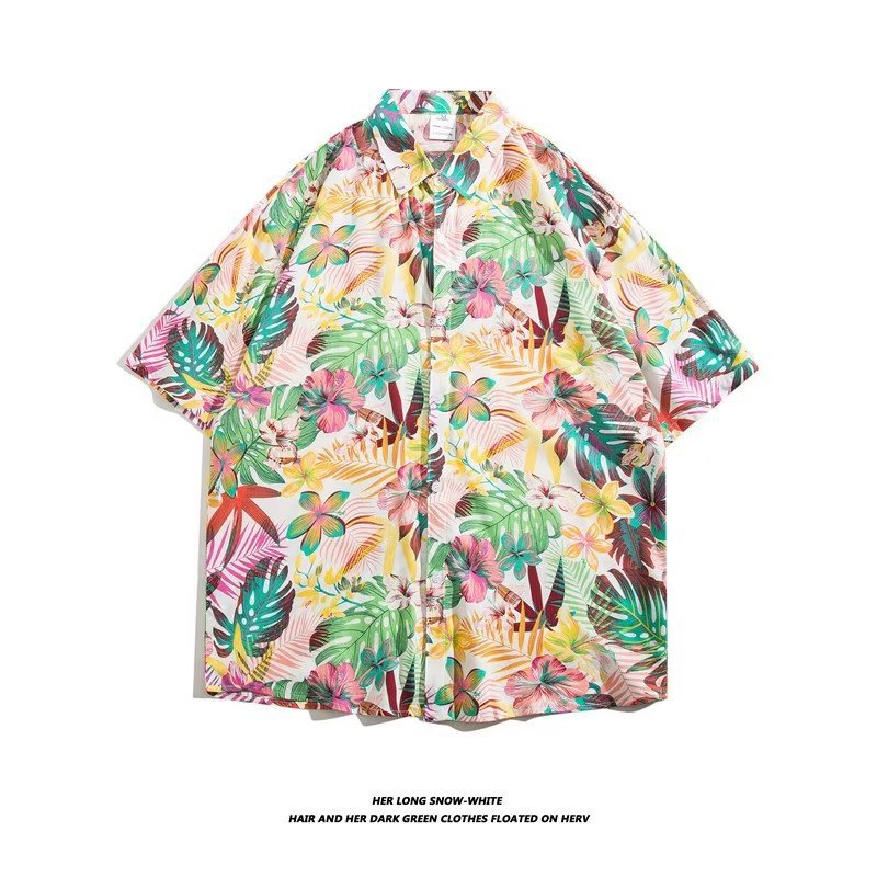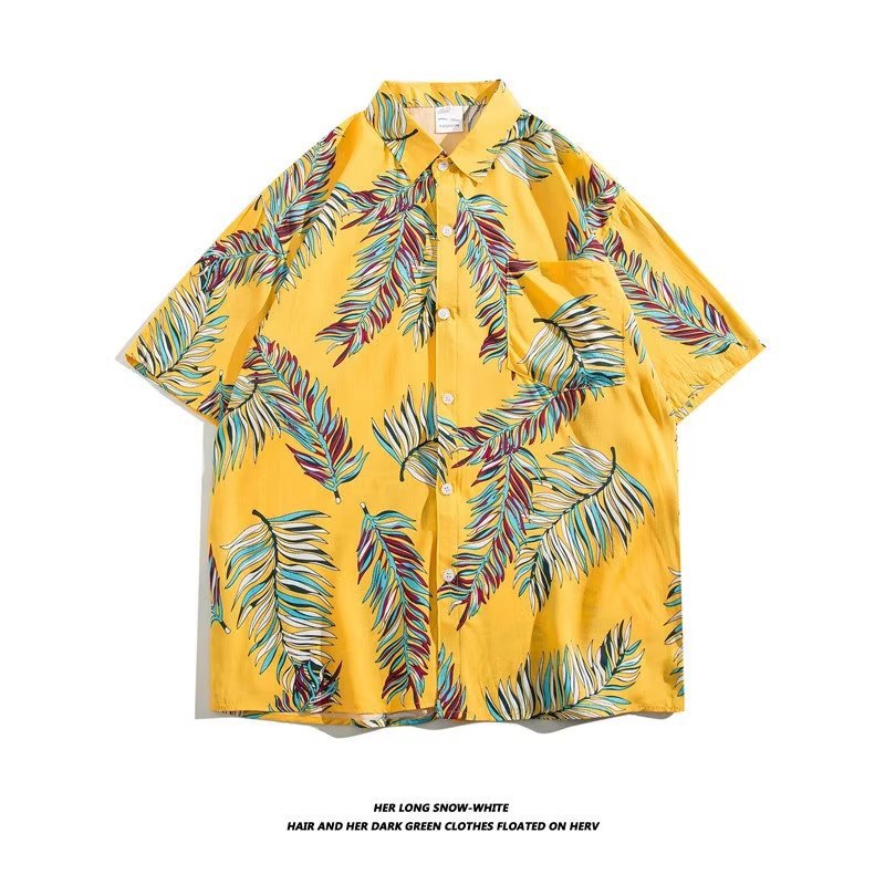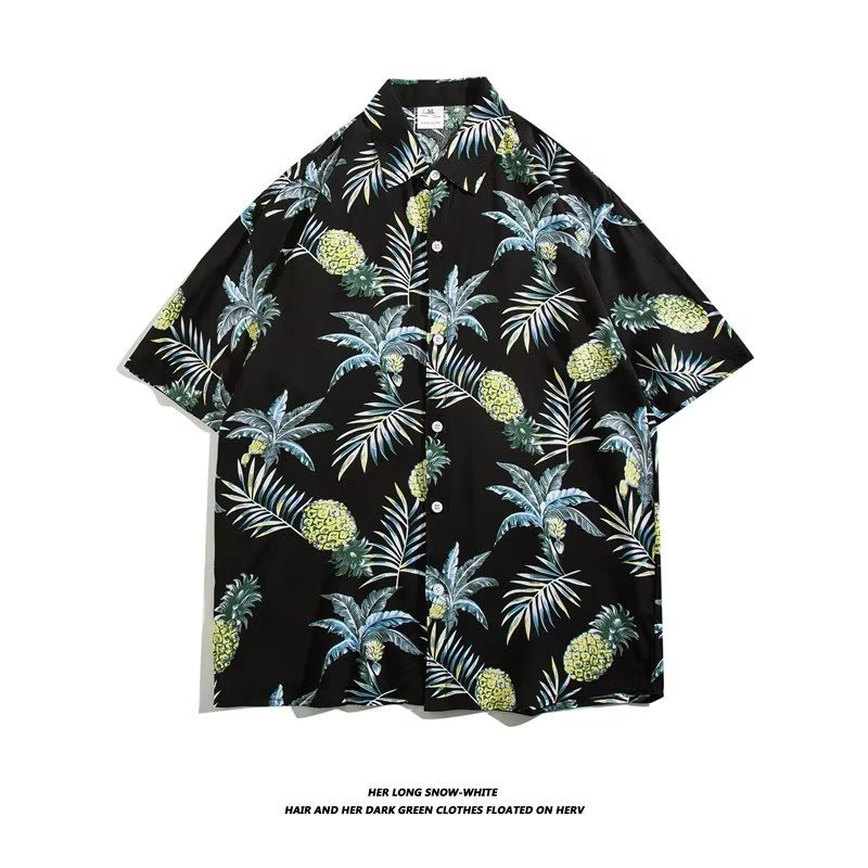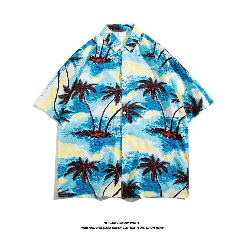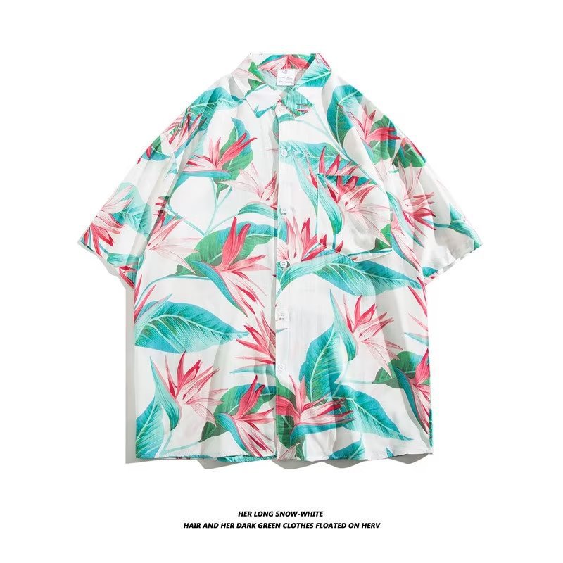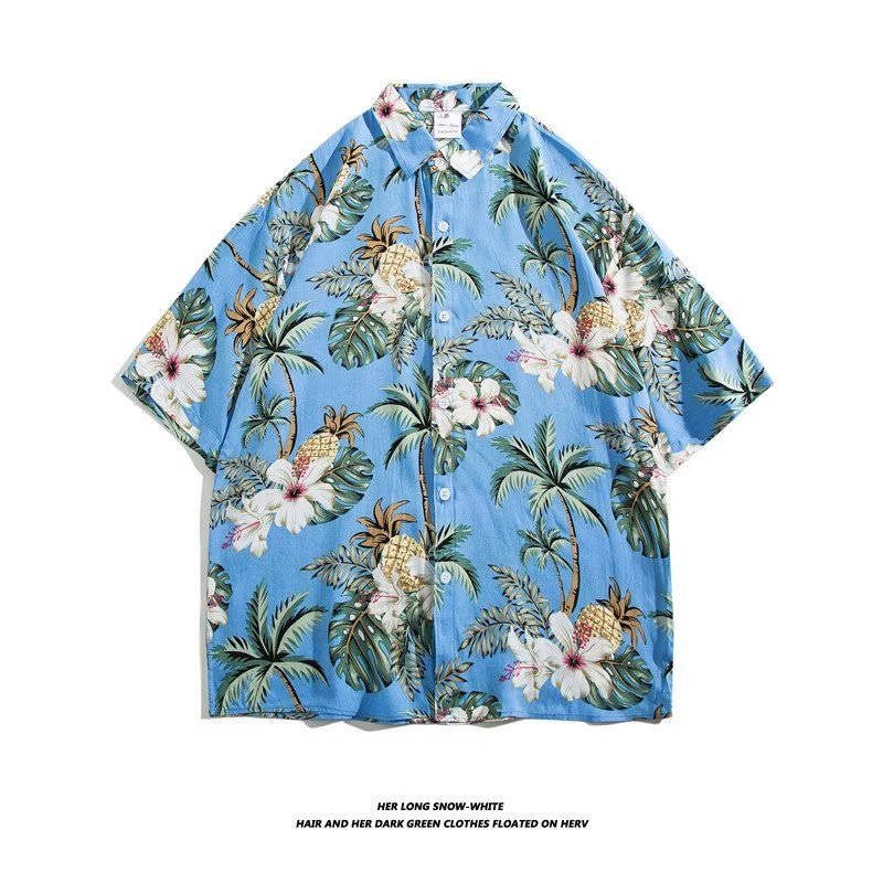 여름 동남 아시아 여행 휴가 면 프린트 셔츠 느슨한 캐주얼 하와이 비치 반팔 셔츠 남성복스토어 가기