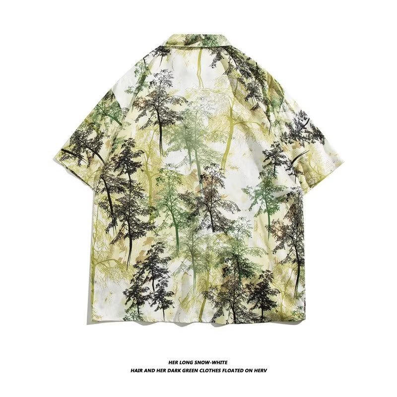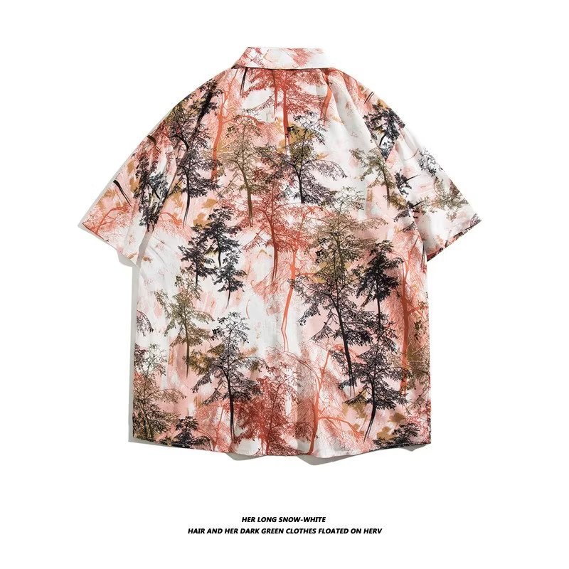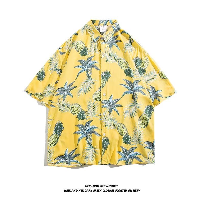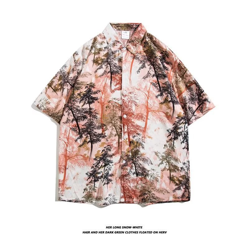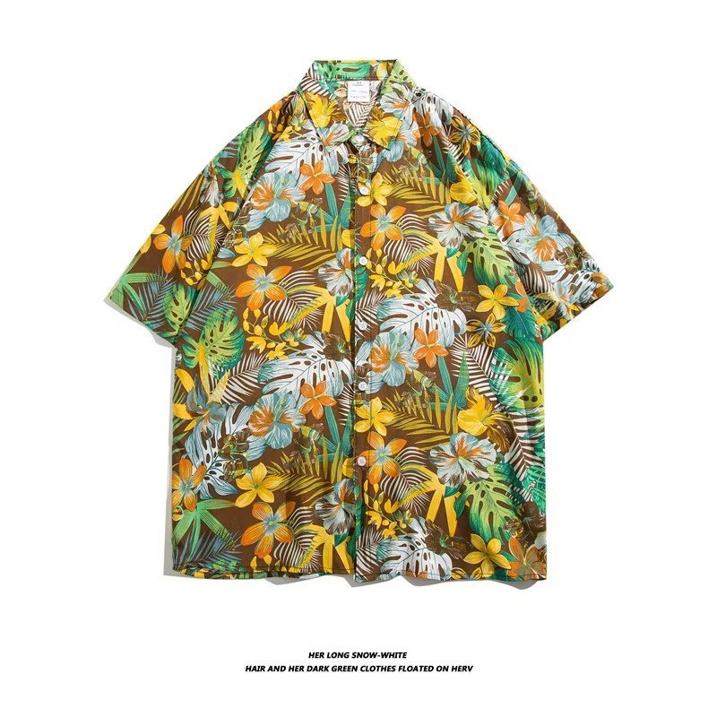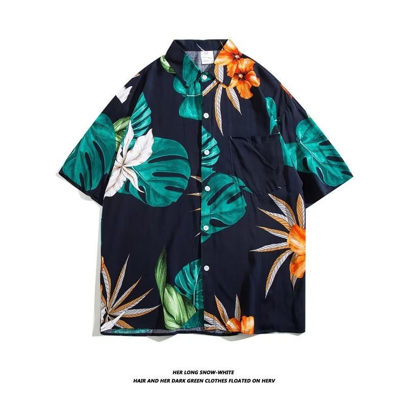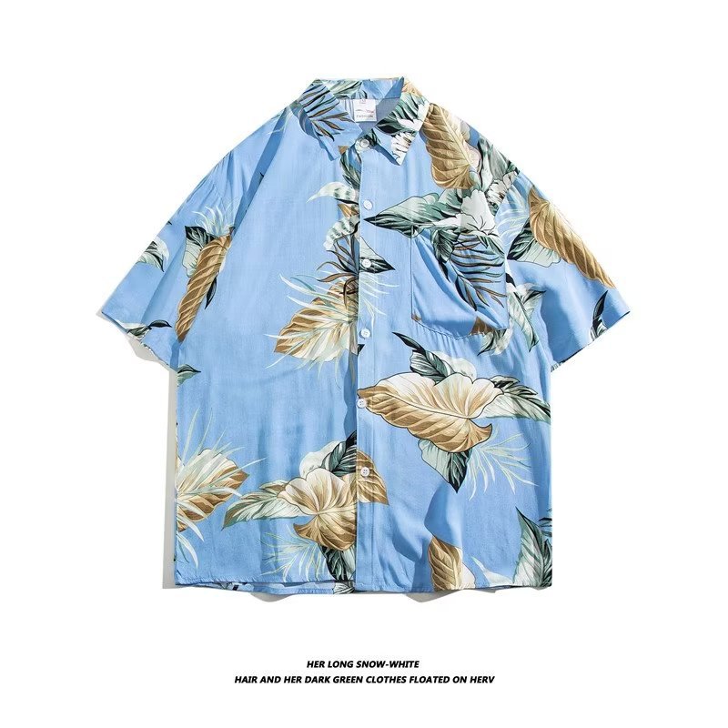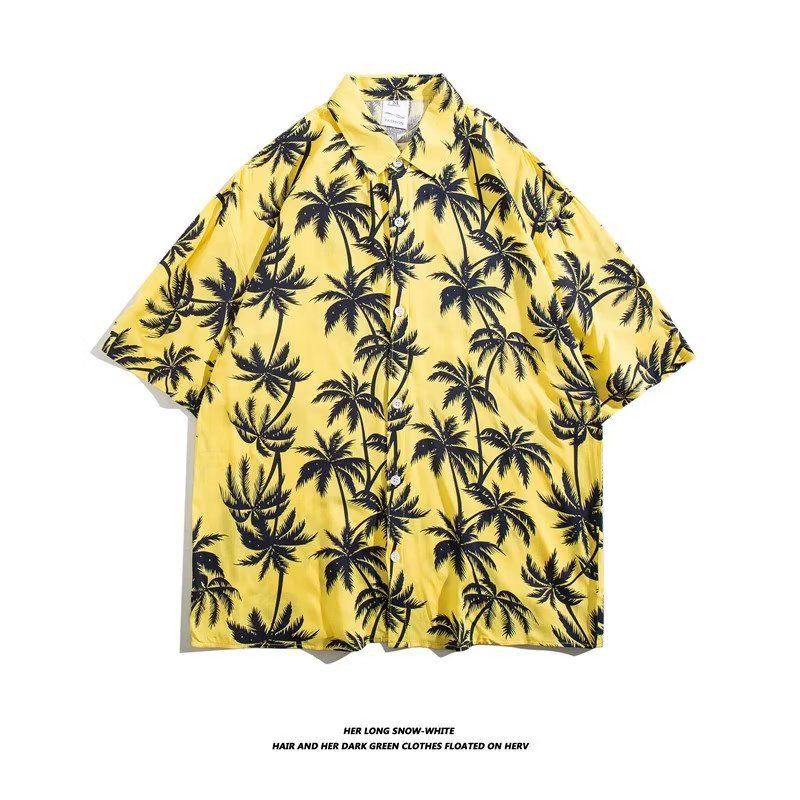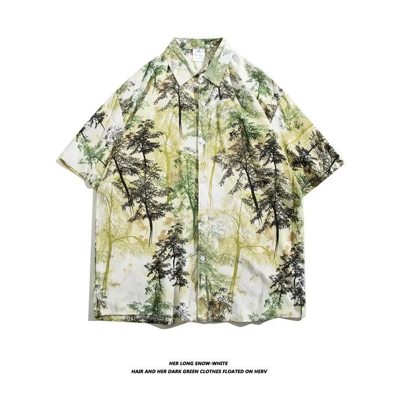 여름 동남 아시아 여행 휴가 면 프린트 셔츠 느슨한 캐주얼 하와이 비치 반팔 셔츠 남성복스토어 가기