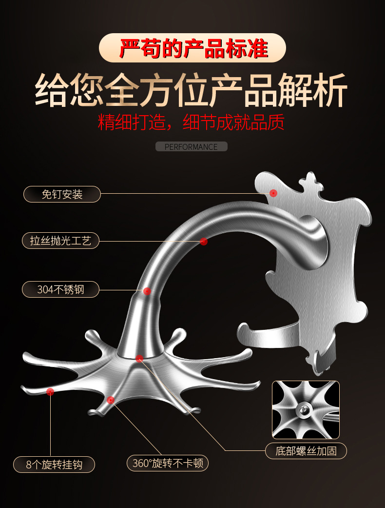• 304 스틸 무펀치 수납걸이 [업그레이드 모델-10후크]