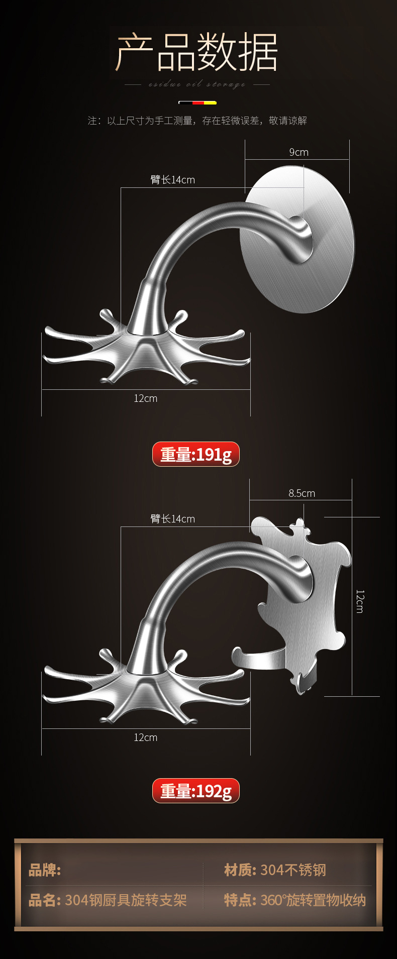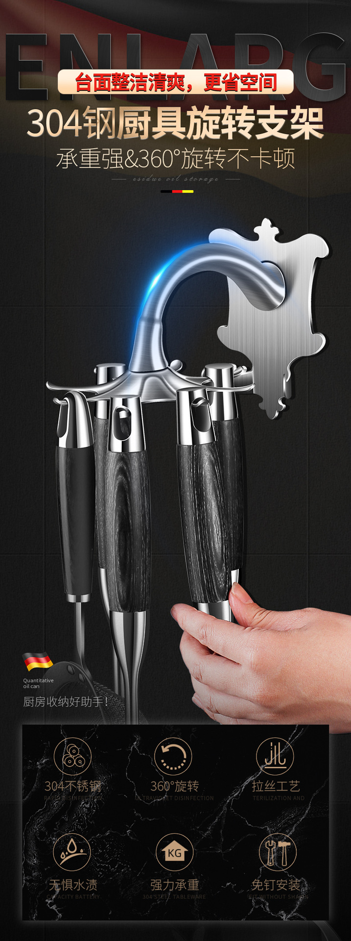 304 스테인레스 스틸 주방 용품 회전 랙 가정용 스포블 스푼 랙 주방 다기능 주방 용품 보관 랙