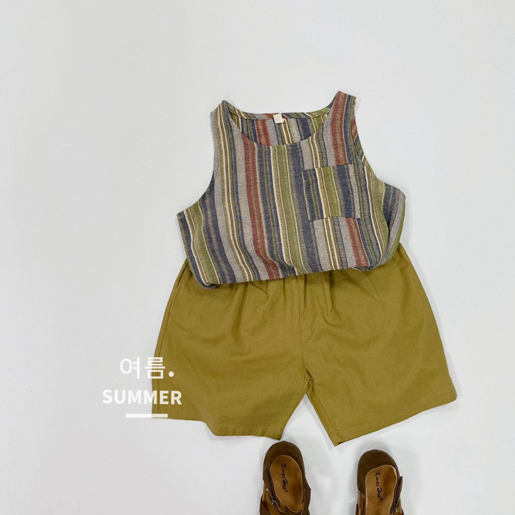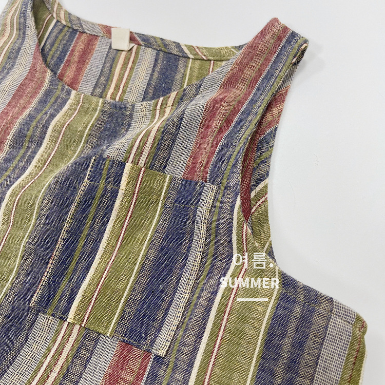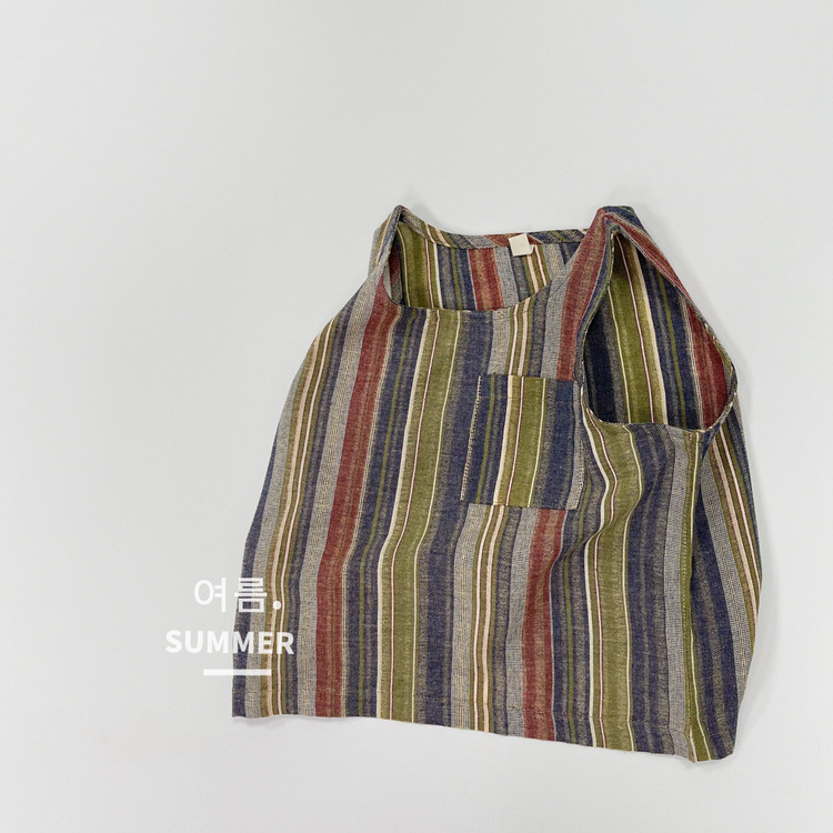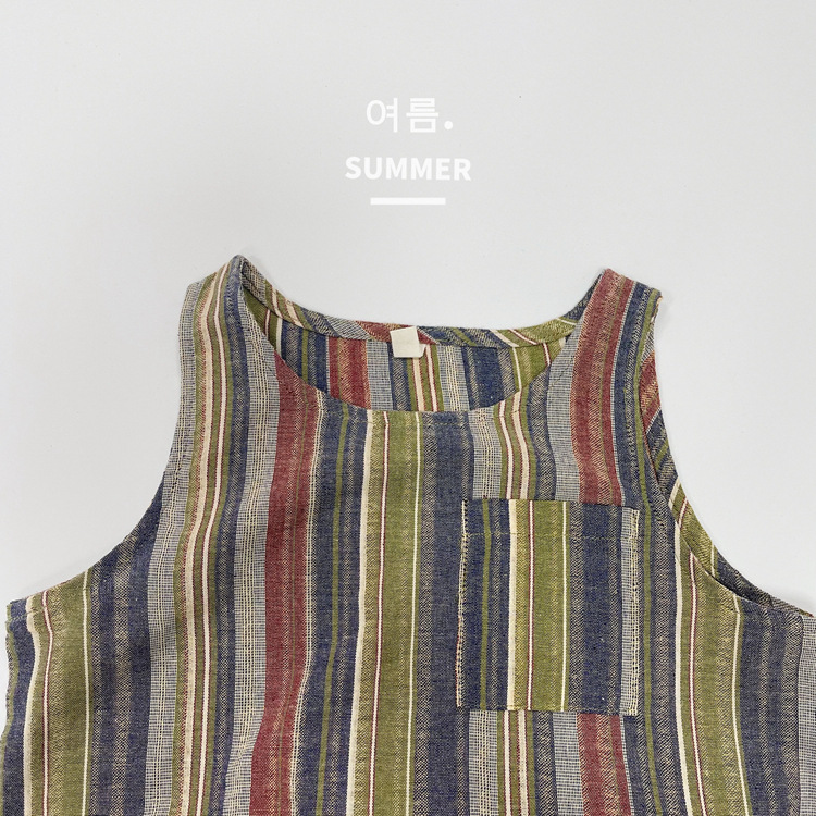 통기성 멋진 한국 스타일 어린이 면 대비 컬러 스트라이프 티셔츠 소녀의 모든 일치 스트라이프 작은 조끼 민소매 탑 트렌디스토어 가기