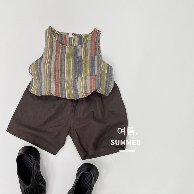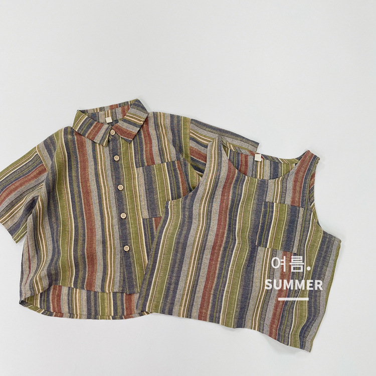 통기성 멋진 한국 스타일 어린이 면 대비 컬러 스트라이프 티셔츠 소녀의 모든 일치 스트라이프 작은 조끼 민소매 탑 트렌디