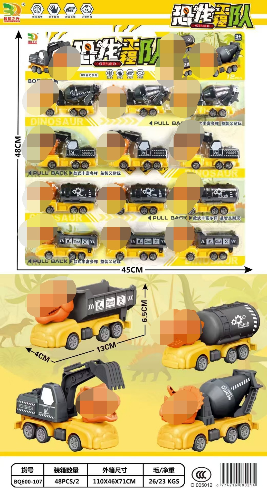 2위안 도매가, 다채로운 색상의 후렉션카, 장난감 공룡 자동차, 슬라이딩 자동차, 다양한 종류의 엔지니어링 자동차, 교육용이고 내구성이 뛰어난 장난감스토어 가기