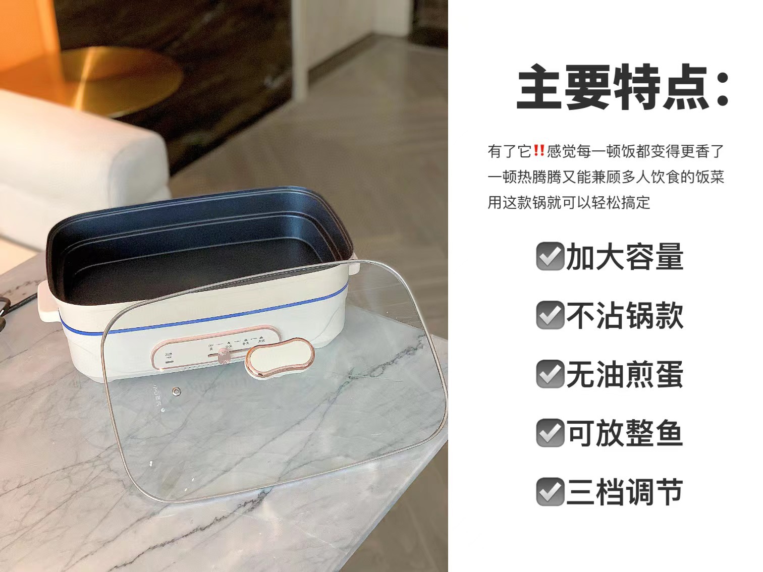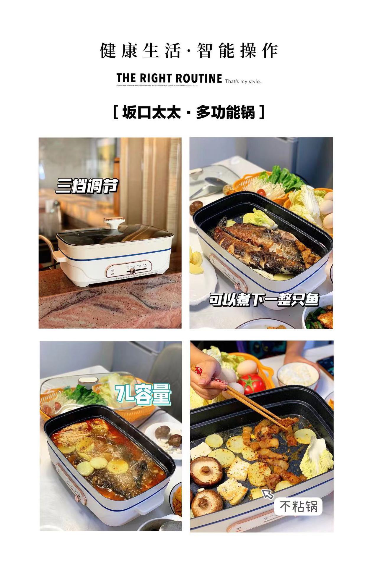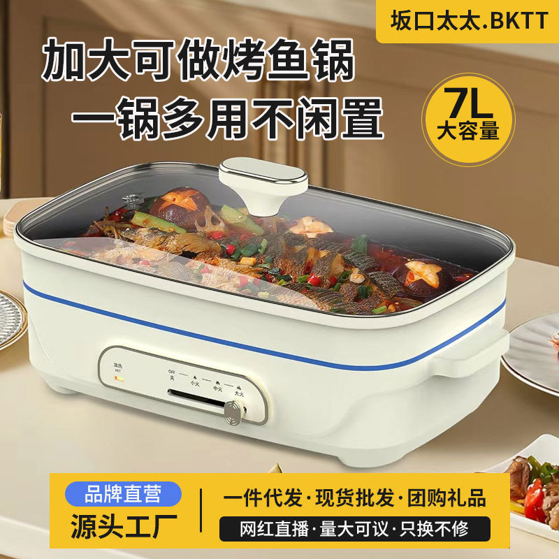 새 아내 사카구치 인터넷 연예인 다기능 요리 냄비 7L 전기 냄비 구이 생선 냄비 가정용 대용량 전기 요리 냄비스토어 가기