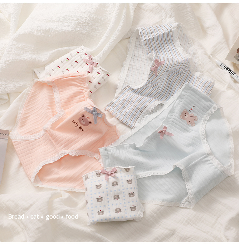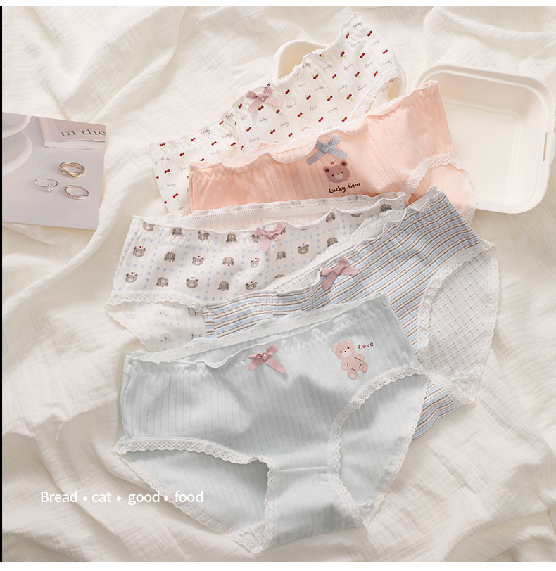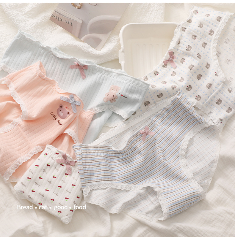 간단한 귀여운 만화 여자의 속옷 편안한 통기성 속옷 면 가랑이 가방 엉덩이 여자의 팬티 달콤한 소녀