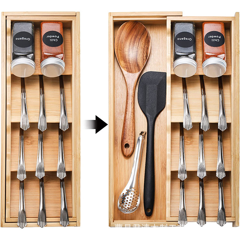 대나무 부엌 서랍 주최자 숟가락에 적합한 확장 가능한 나무 칼 상자 조정 가능한 포크 식기
