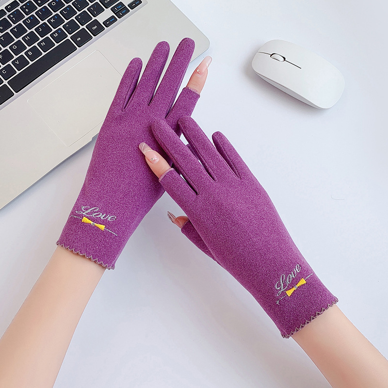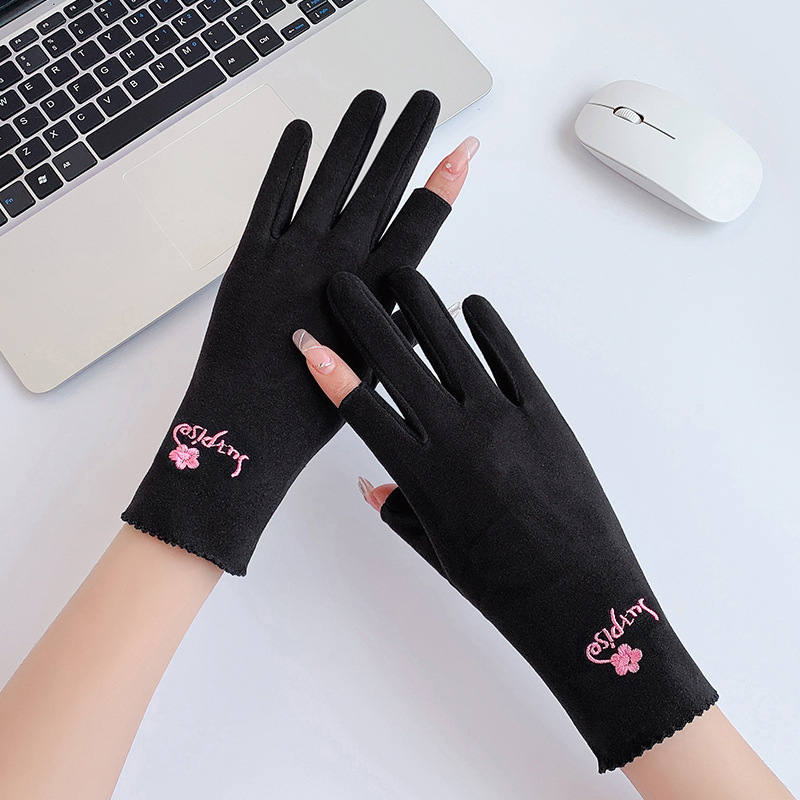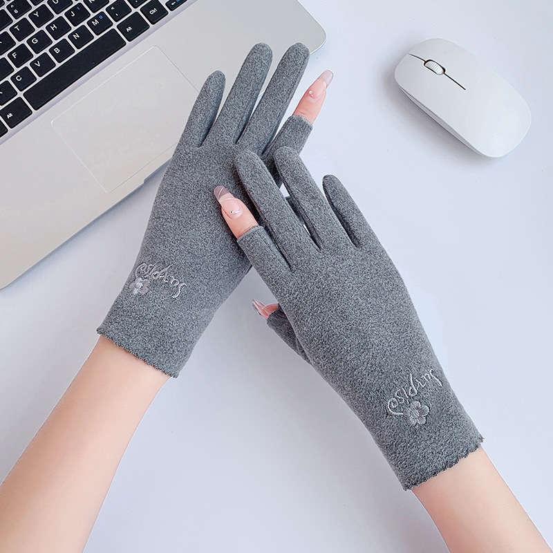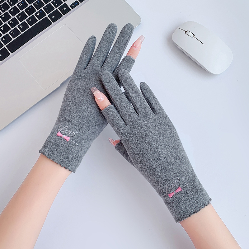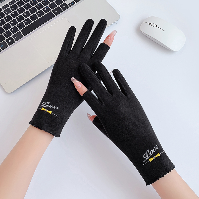 장갑 여자의 가을과 겨울 누출 두 손가락 방풍 따뜻한 사이클링 운전 얇은 탄성 터치 스크린 쓰기 반 손가락 봄과 가을