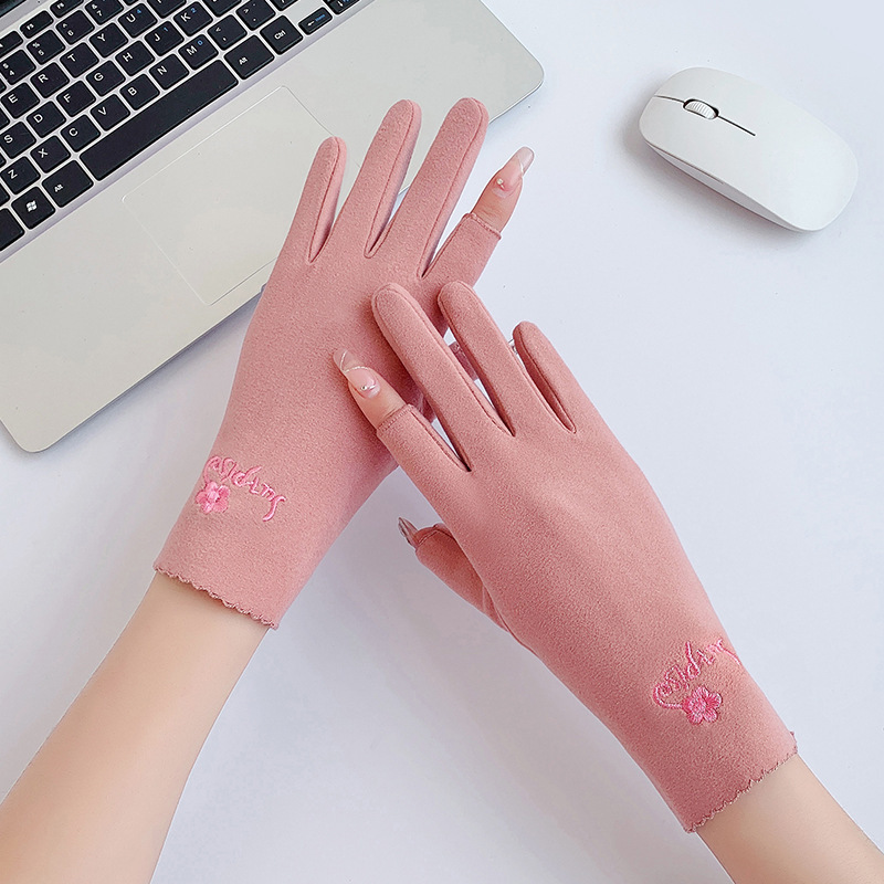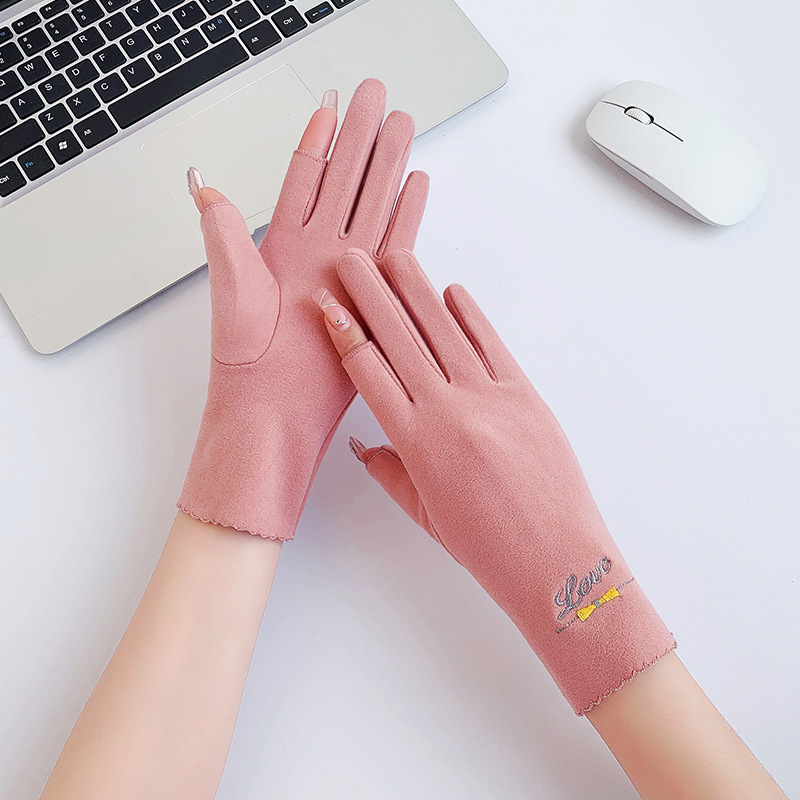 장갑 여자의 가을과 겨울 누출 두 손가락 방풍 따뜻한 사이클링 운전 얇은 탄성 터치 스크린 쓰기 반 손가락 봄과 가을스토어 가기
