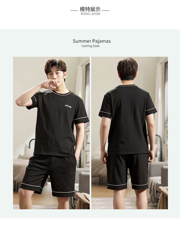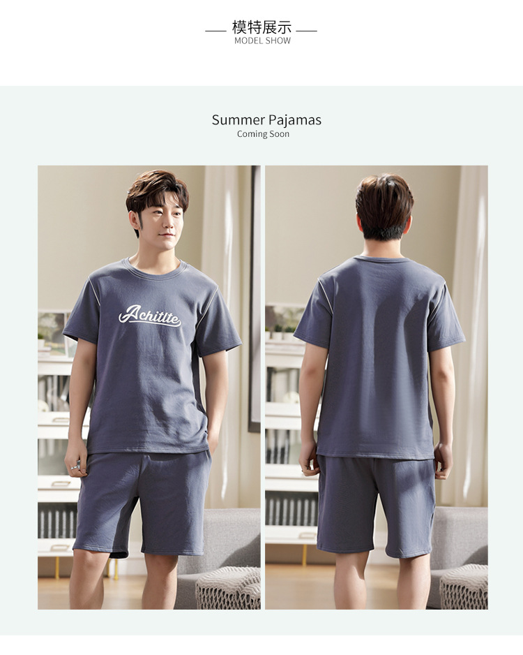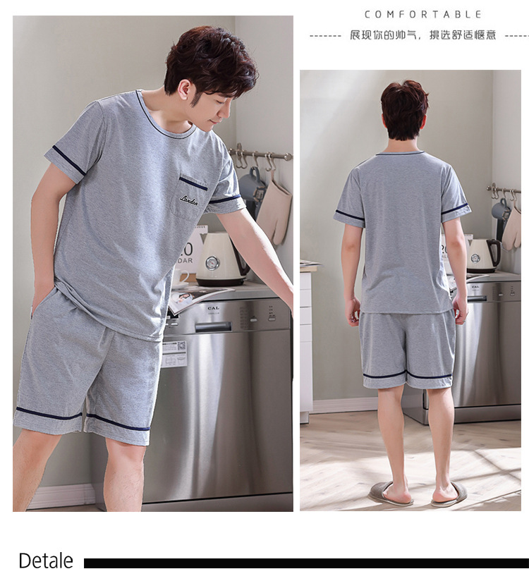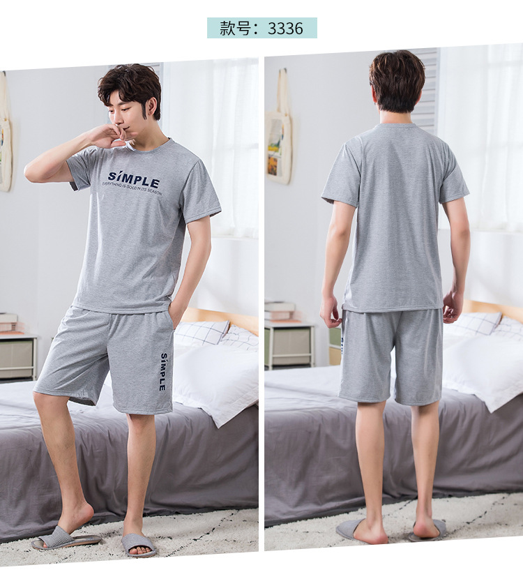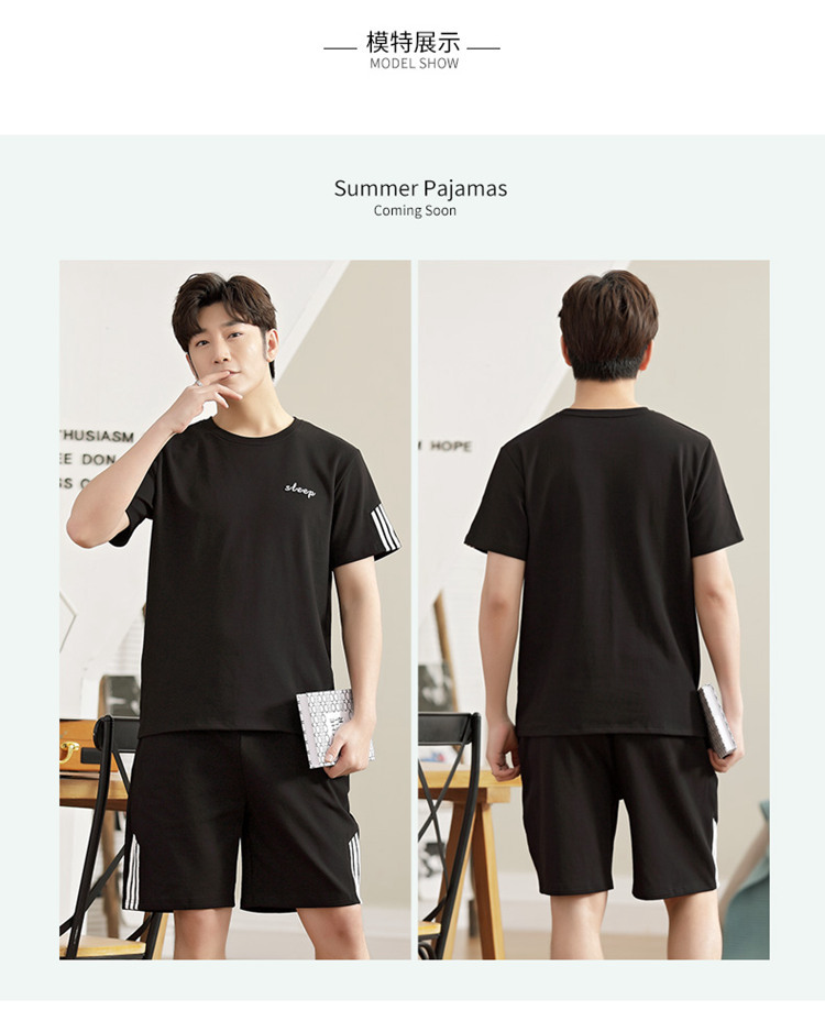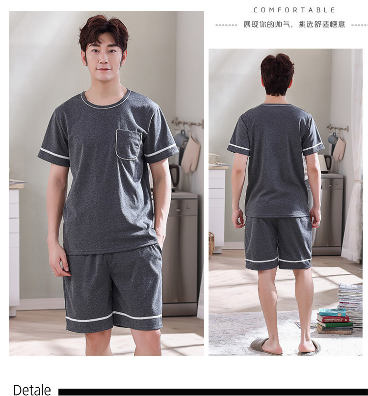 남자의 잠옷 여름 간단한 반팔 반바지 홈웨어 여름 얇은 캐주얼 아웃웨어 플러스 사이즈 투피스 세트