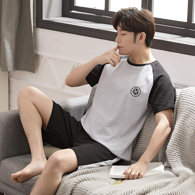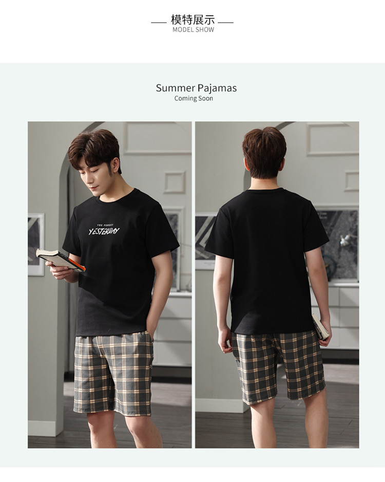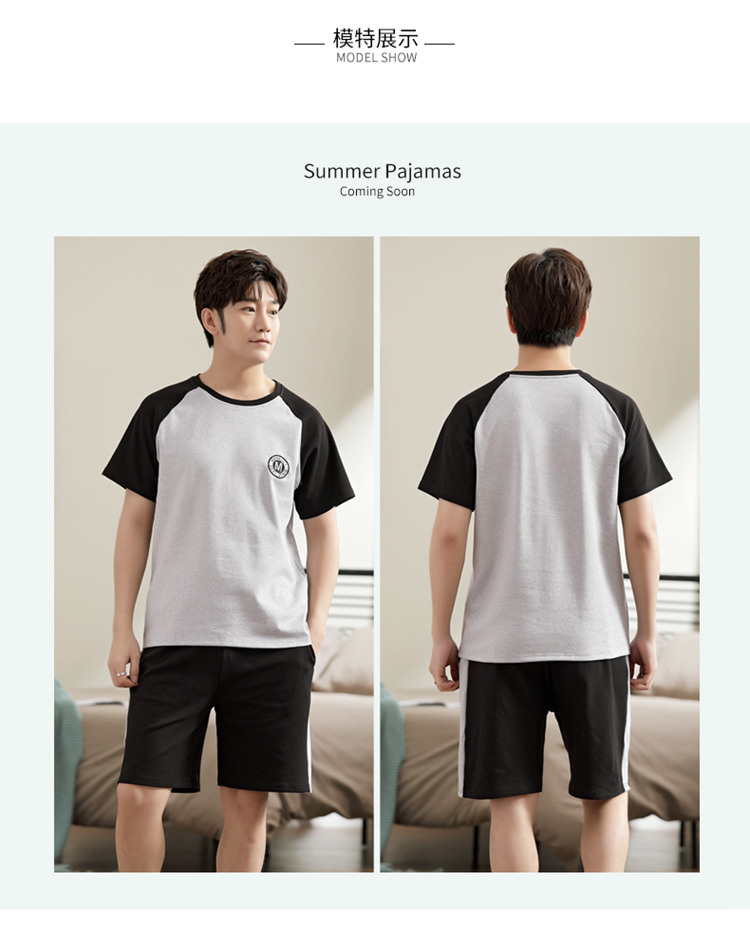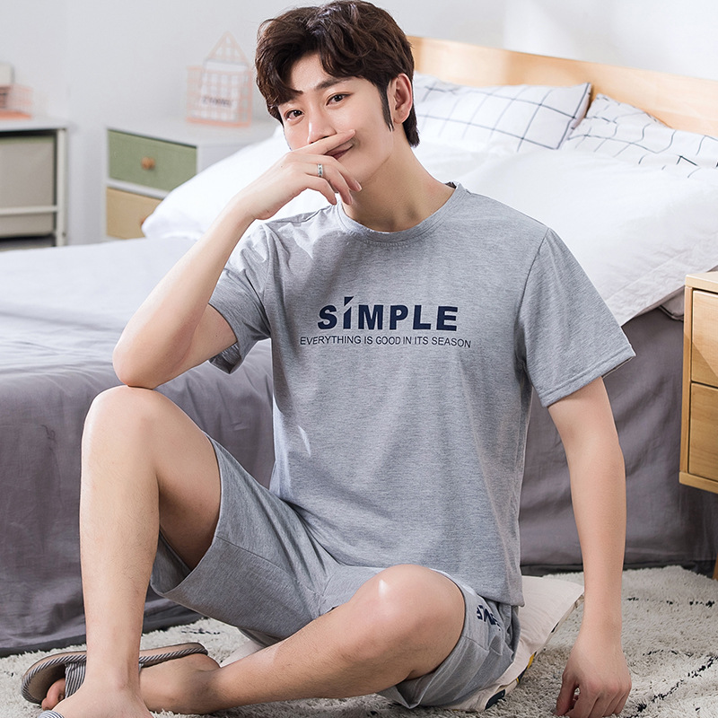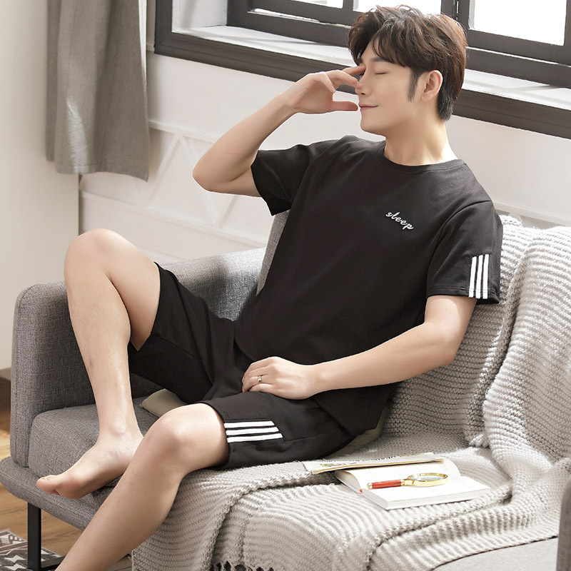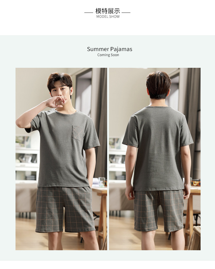 남자의 잠옷 여름 간단한 반팔 반바지 홈웨어 여름 얇은 캐주얼 아웃웨어 플러스 사이즈 투피스 세트