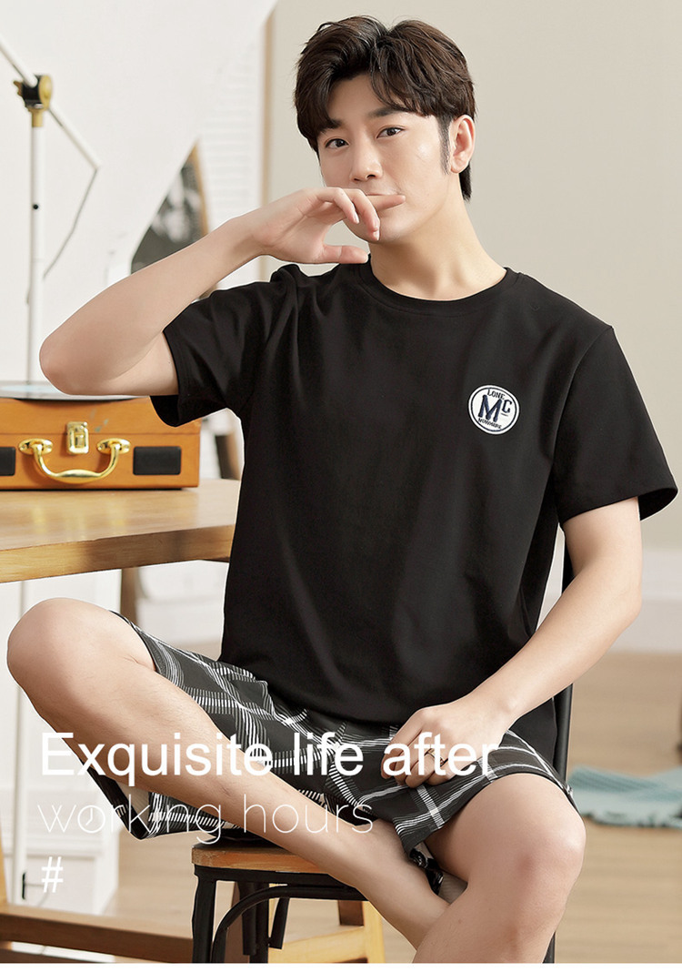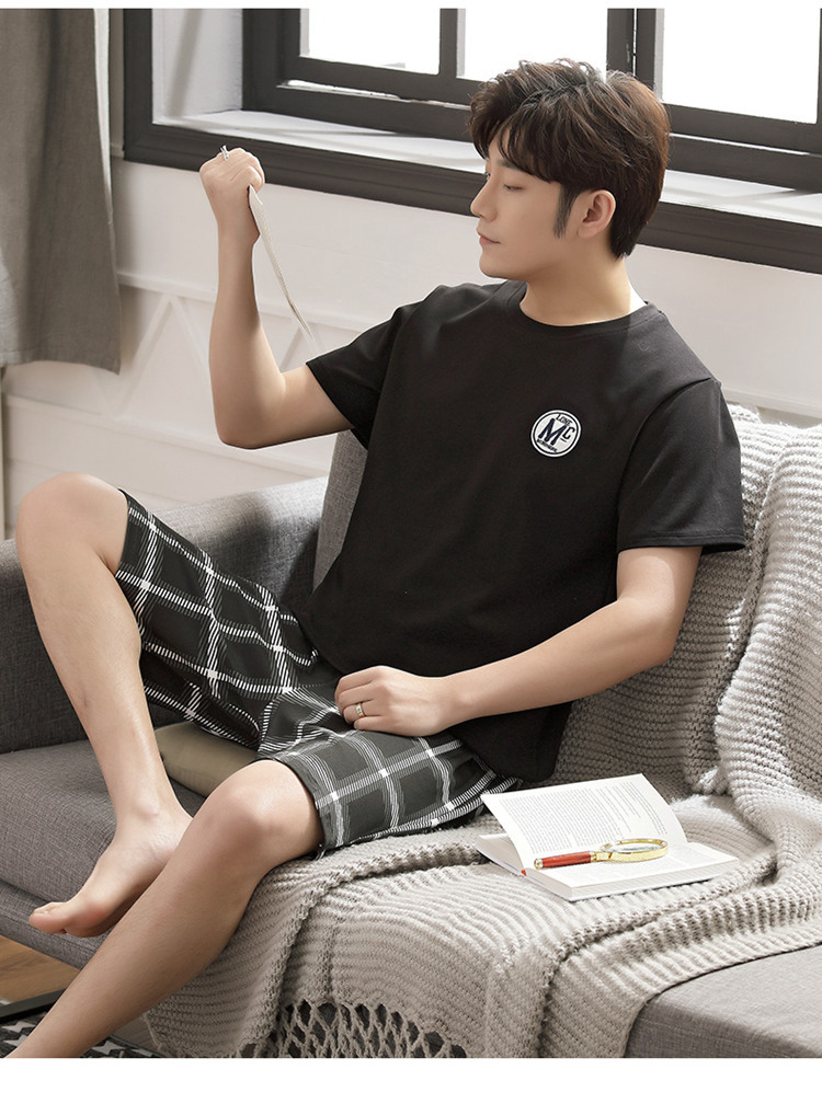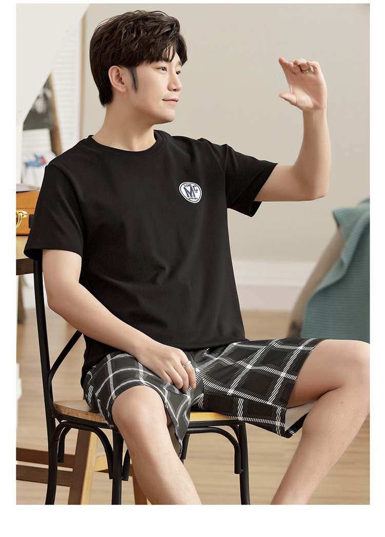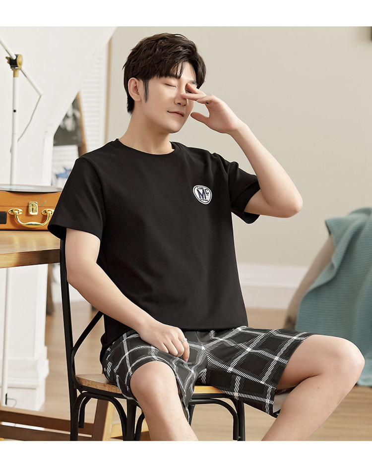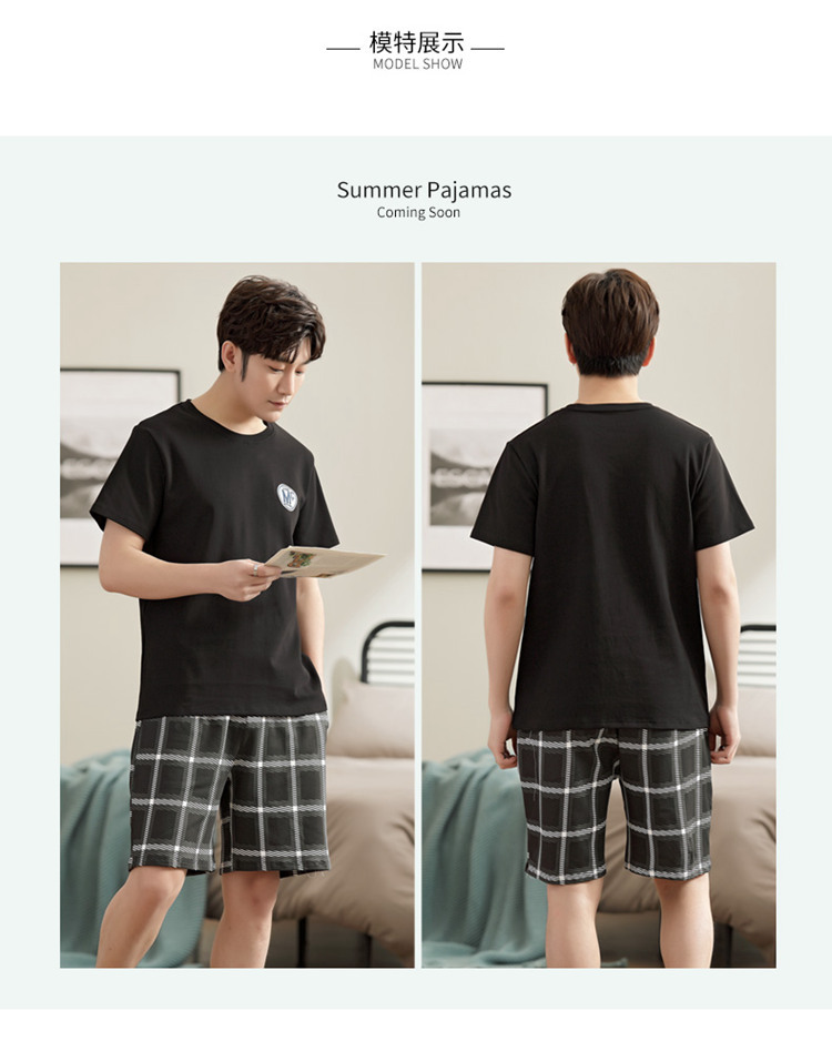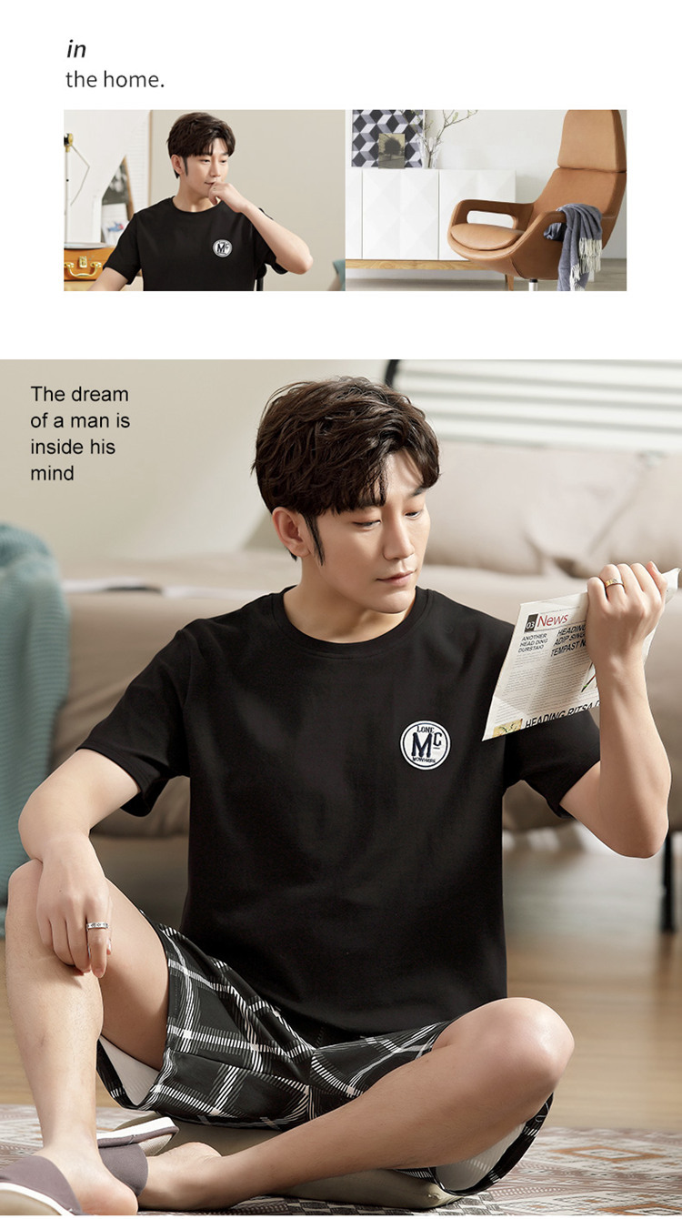 남자의 잠옷 여름 간단한 반팔 반바지 홈웨어 여름 얇은 캐주얼 아웃웨어 플러스 사이즈 투피스 세트