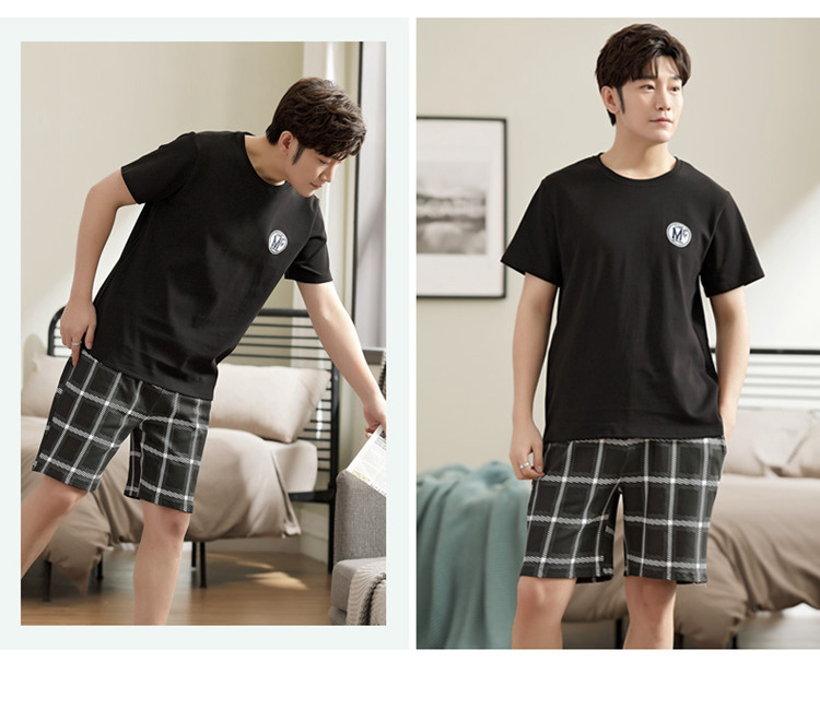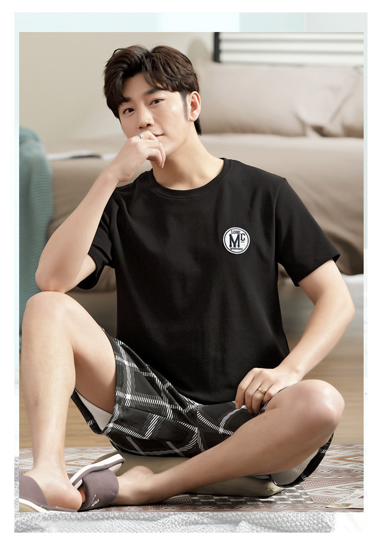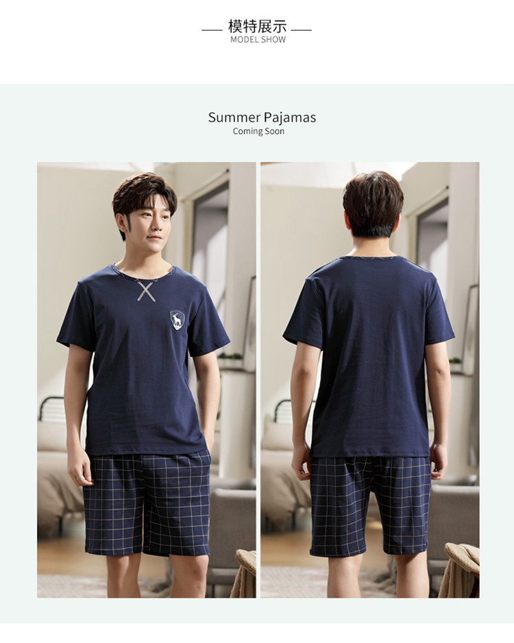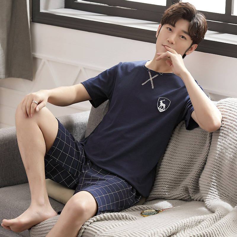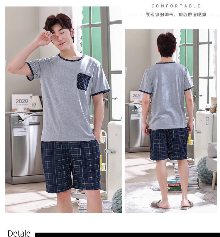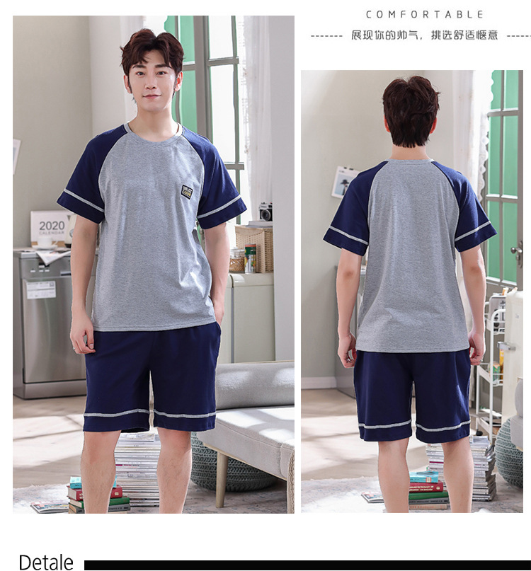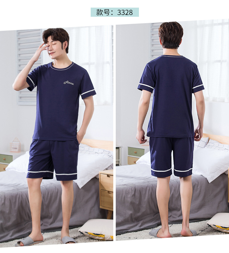 남자의 잠옷 여름 간단한 반팔 반바지 홈웨어 여름 얇은 캐주얼 아웃웨어 플러스 사이즈 투피스 세트스토어 가기