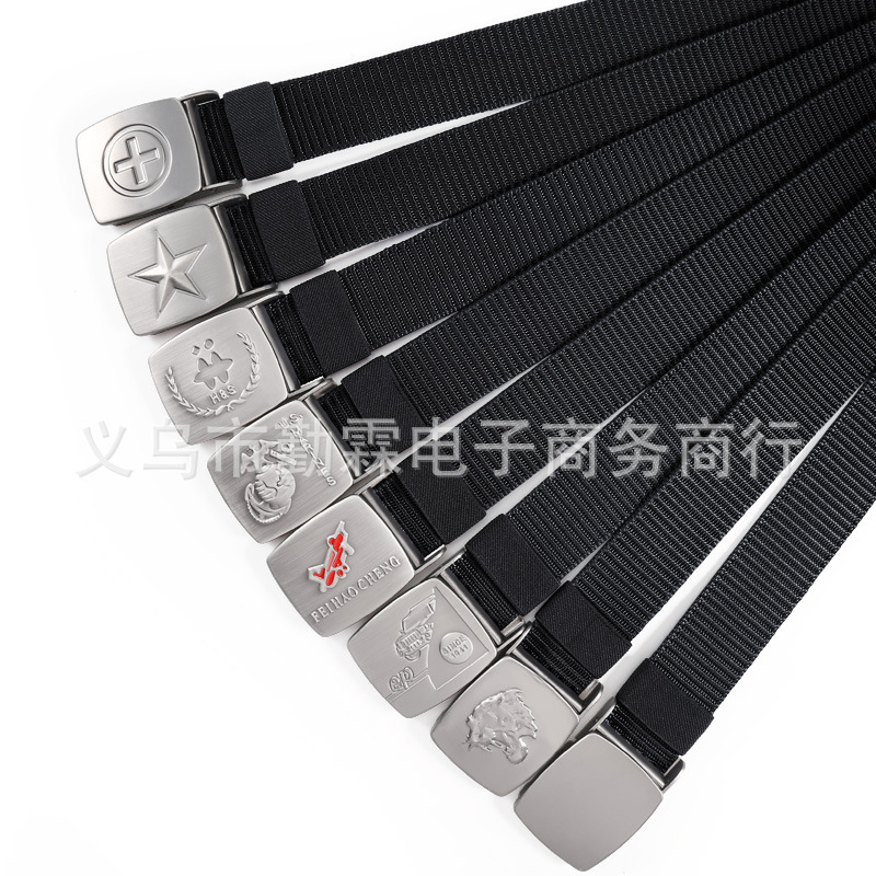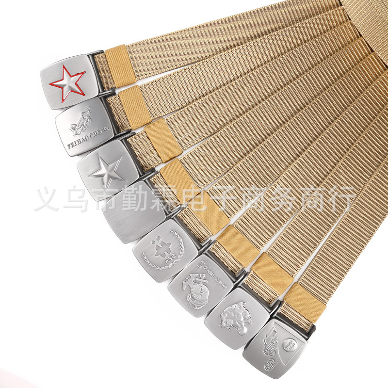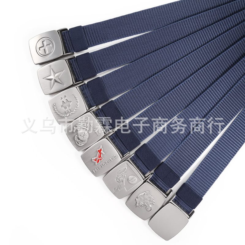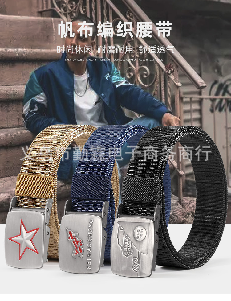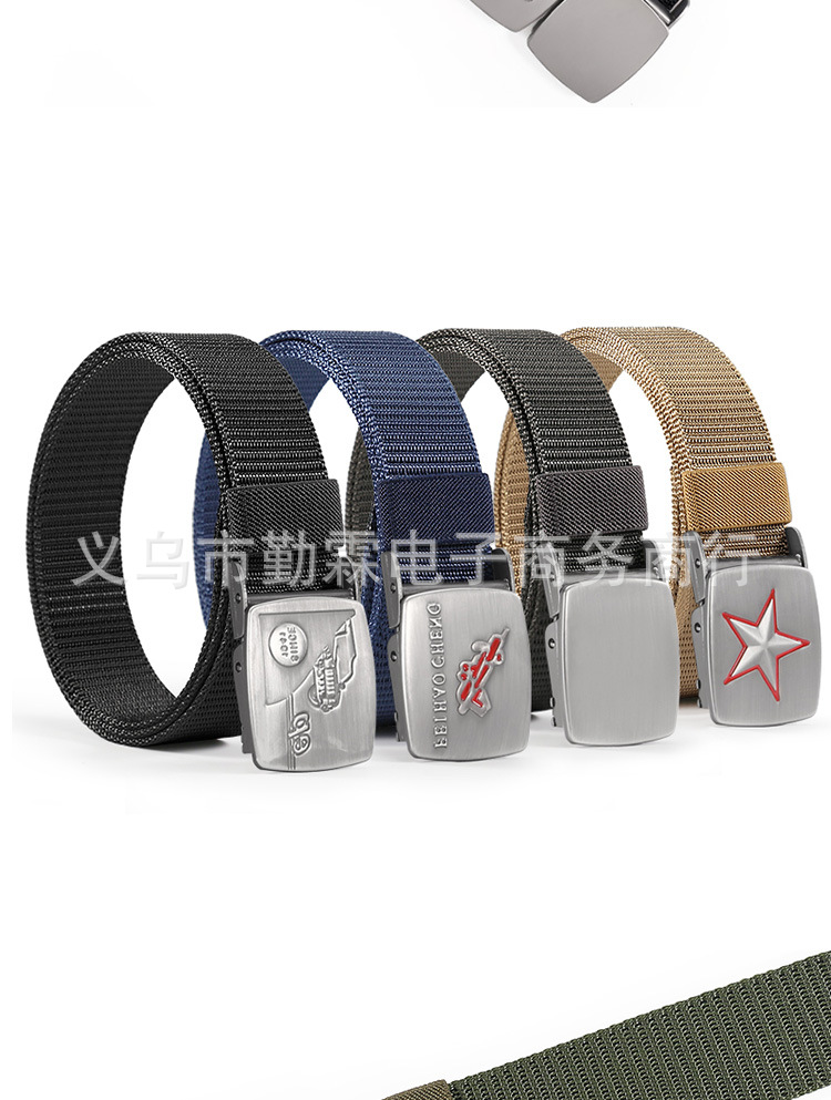 남성용 벨트 모조 나일론 통기성 캔버스 벨트 압력 버클 짠 벨트 캐주얼 모든 매치 확고한 작업복 벨트