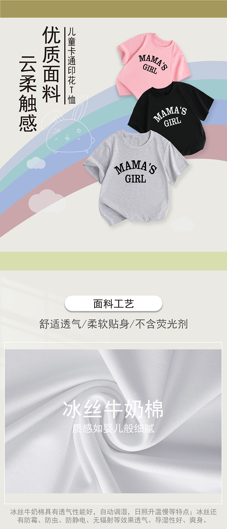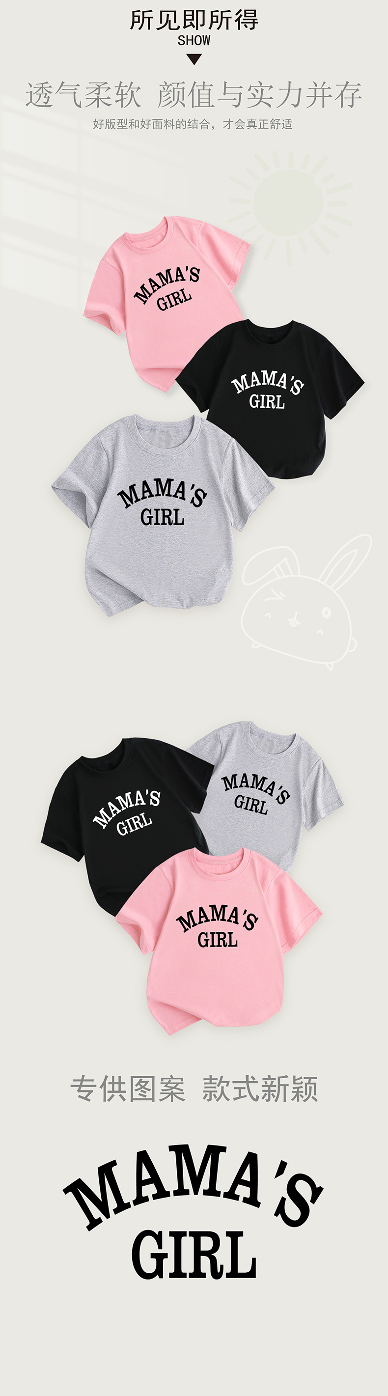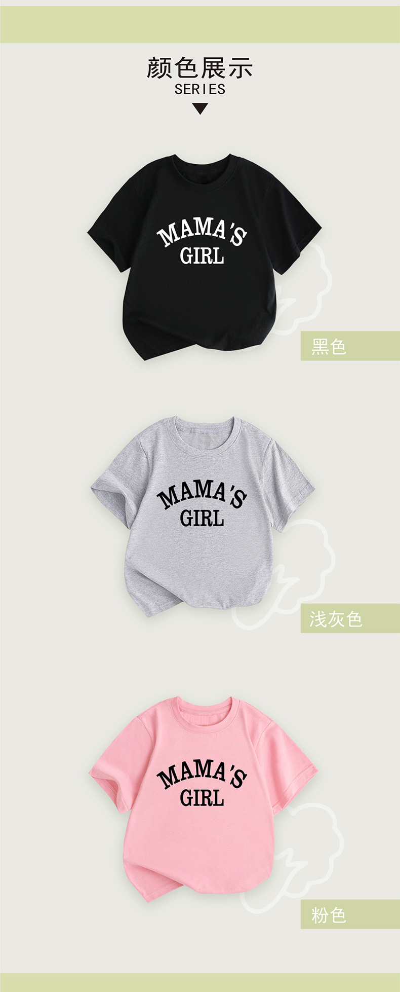크로스 보더 유럽과 미국 여자 반팔 티셔츠 "MAMA'S GIRL" 편지 인쇄 여름 캐주얼 라운드 넥 아동 티셔츠