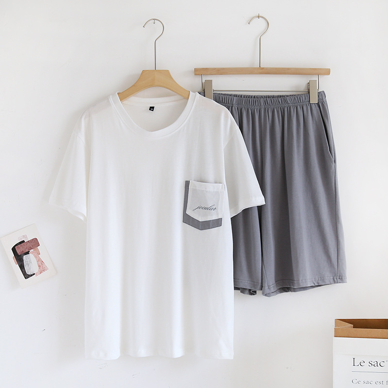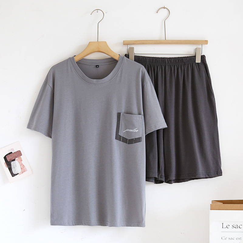 잠옷 남자의 여름 순면 풀오버 반팔 반바지 세트 니트 얇은 캐주얼 아웃웨어 가정 의류스토어 가기