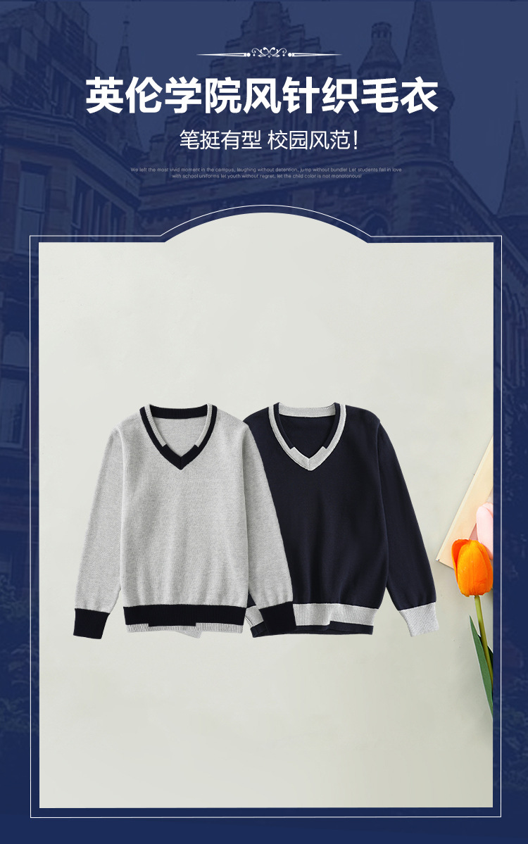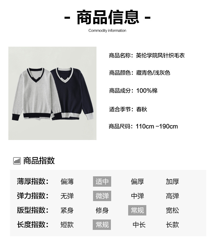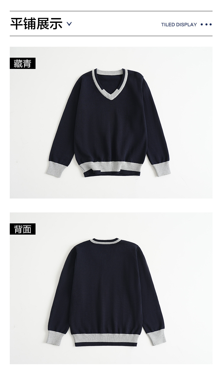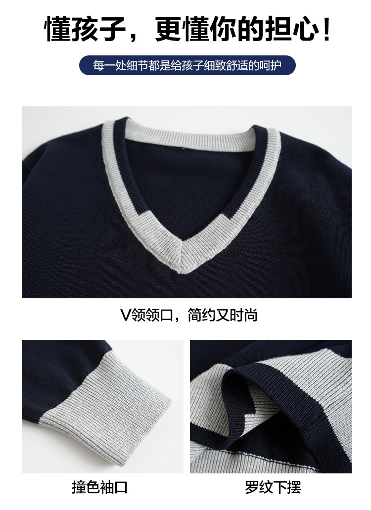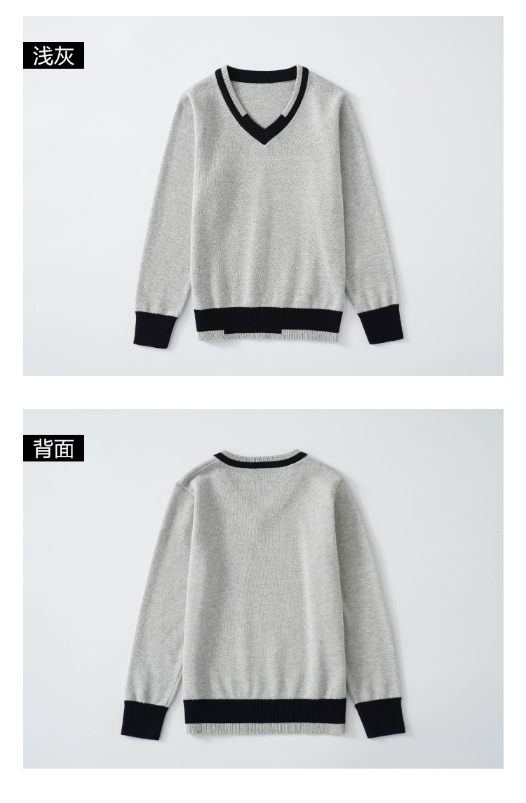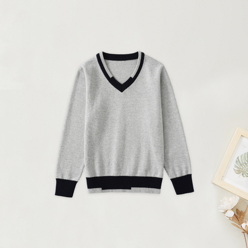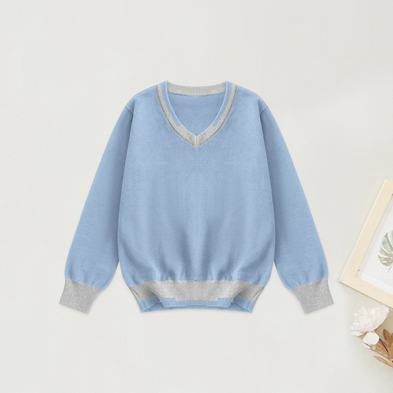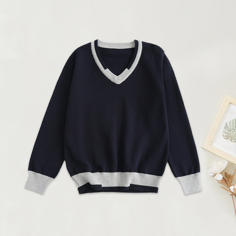 어린이 로우 칼라 대학 스타일 스웨터 큰 어린이 면 스웨터 여아 니트 스웨터 남아 V-넥 대비 컬러 코트 베이스 셔츠