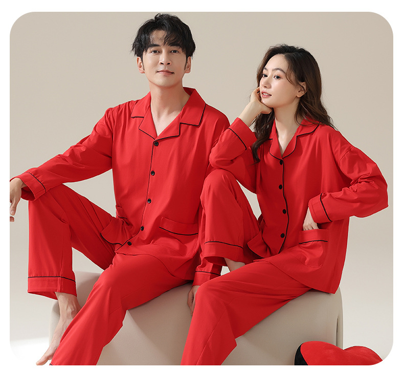 [초부드러움] 봄과 가을 항균 면 커플 잠옷 긴팔 얇은 남녀 홈웨어 가을 신상 세트