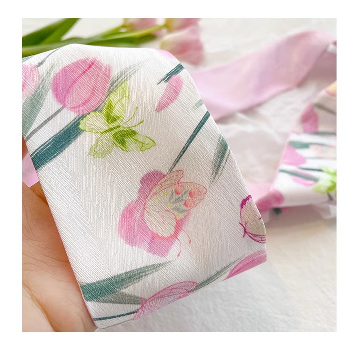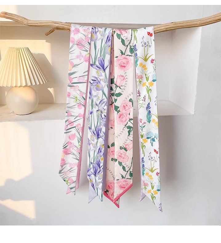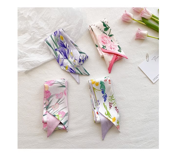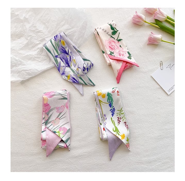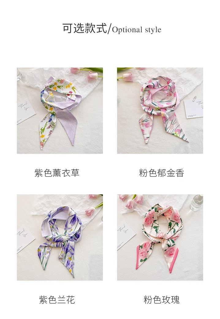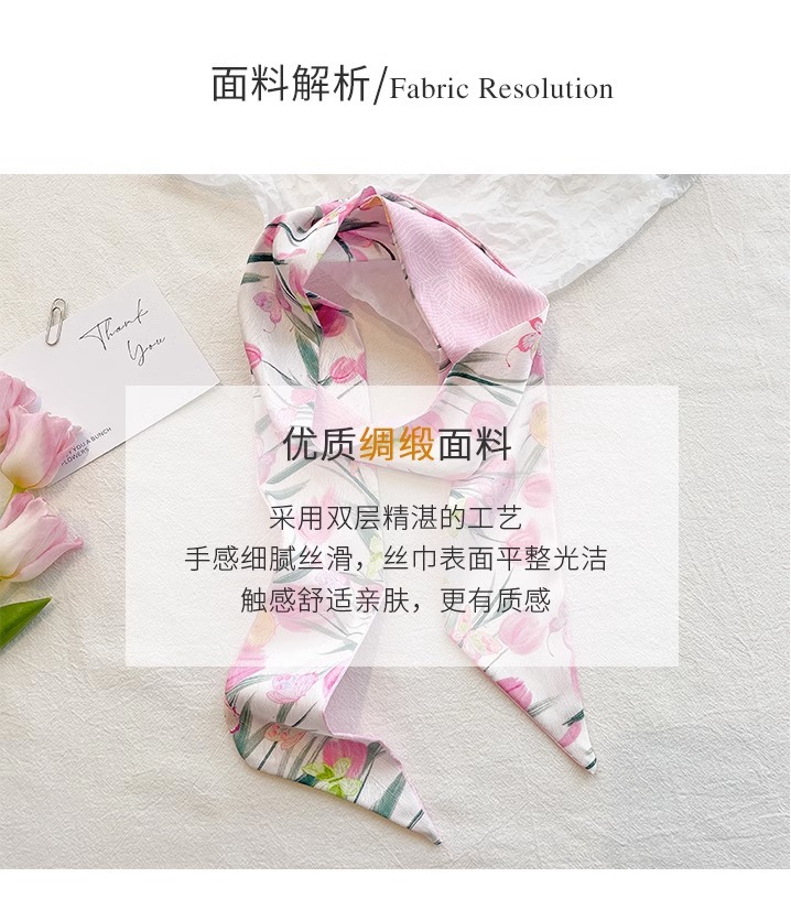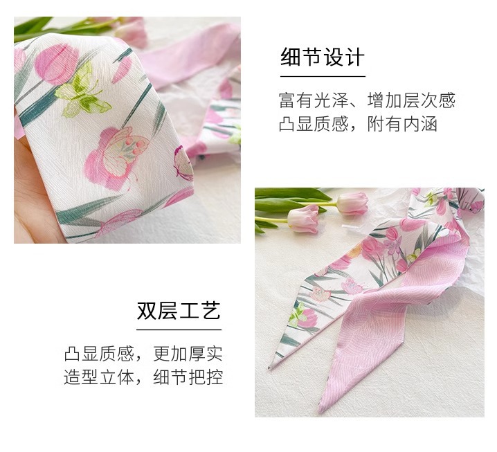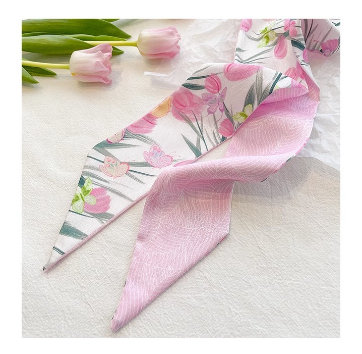 작은 파파 장미 핑크 긴 양면 작은 실크 스카프 여자 머리 끈 머리 리본 장식 스카프를 보내
