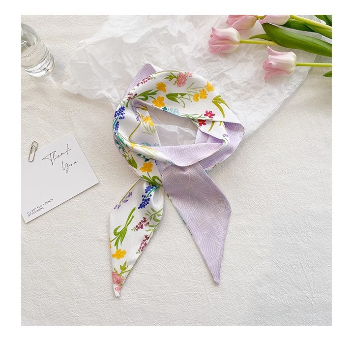 • 보라색 꽃 무늬 * 작은 실크 스카프
