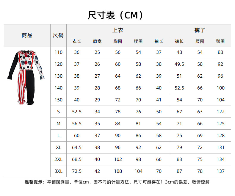 유럽과 미국 할로윈 서커스 광대 의상 다양한 광대 cos 의상 재미있는 무대 의상